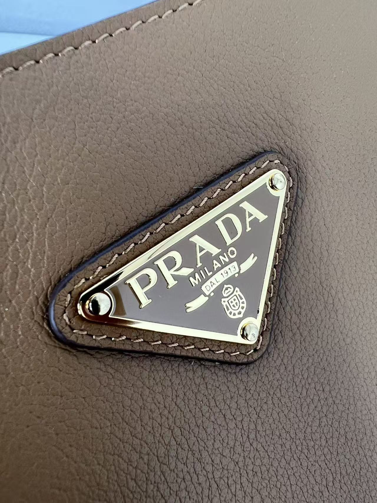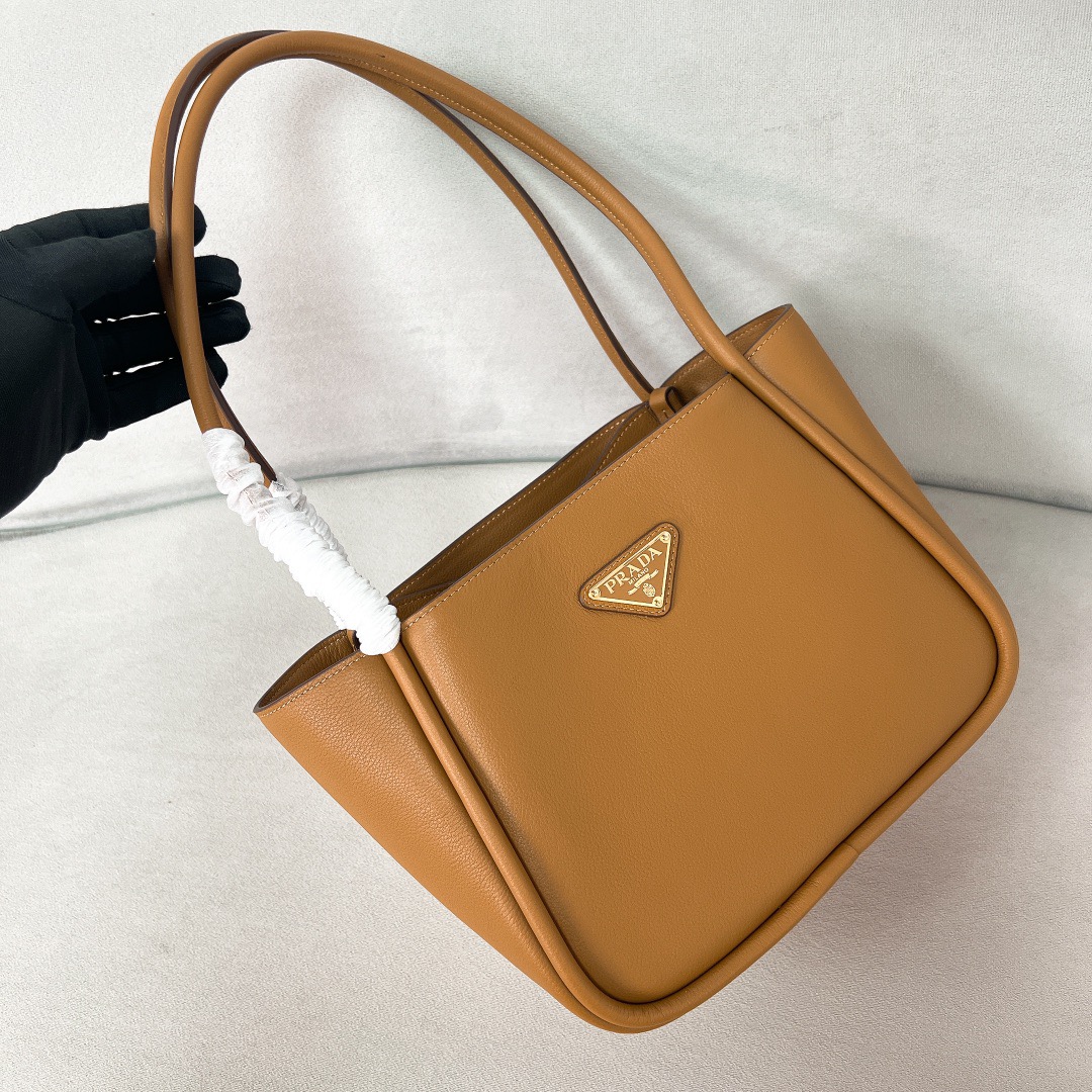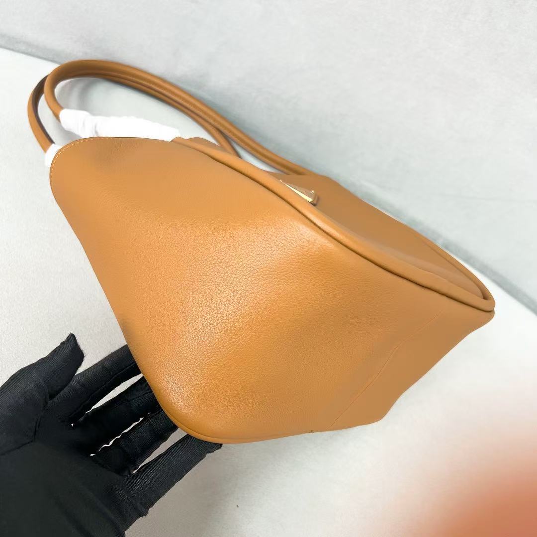 PRADA Enamel metal triangular logo magnetic closed single-shoulder handbag mini Women\'s Camel color