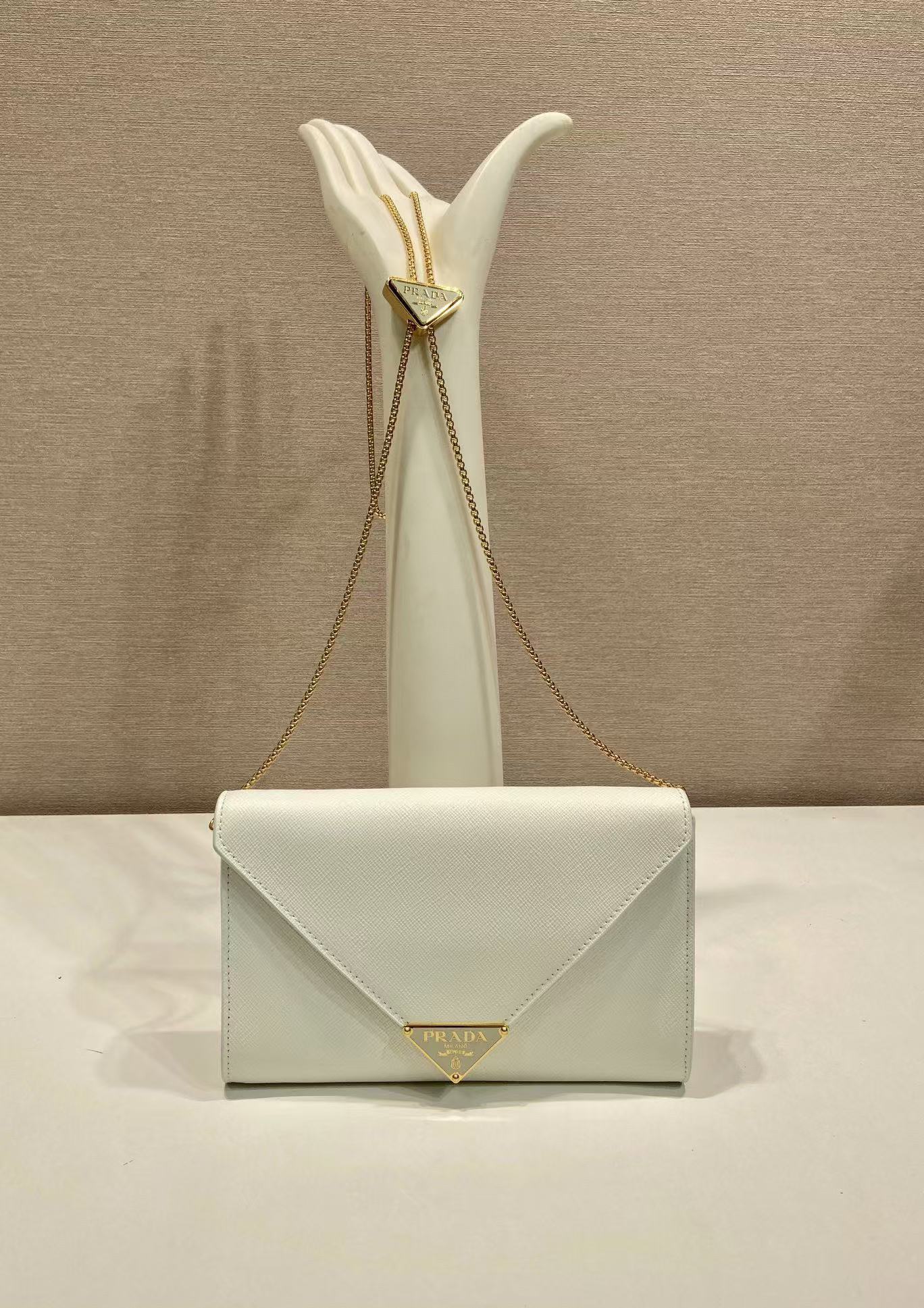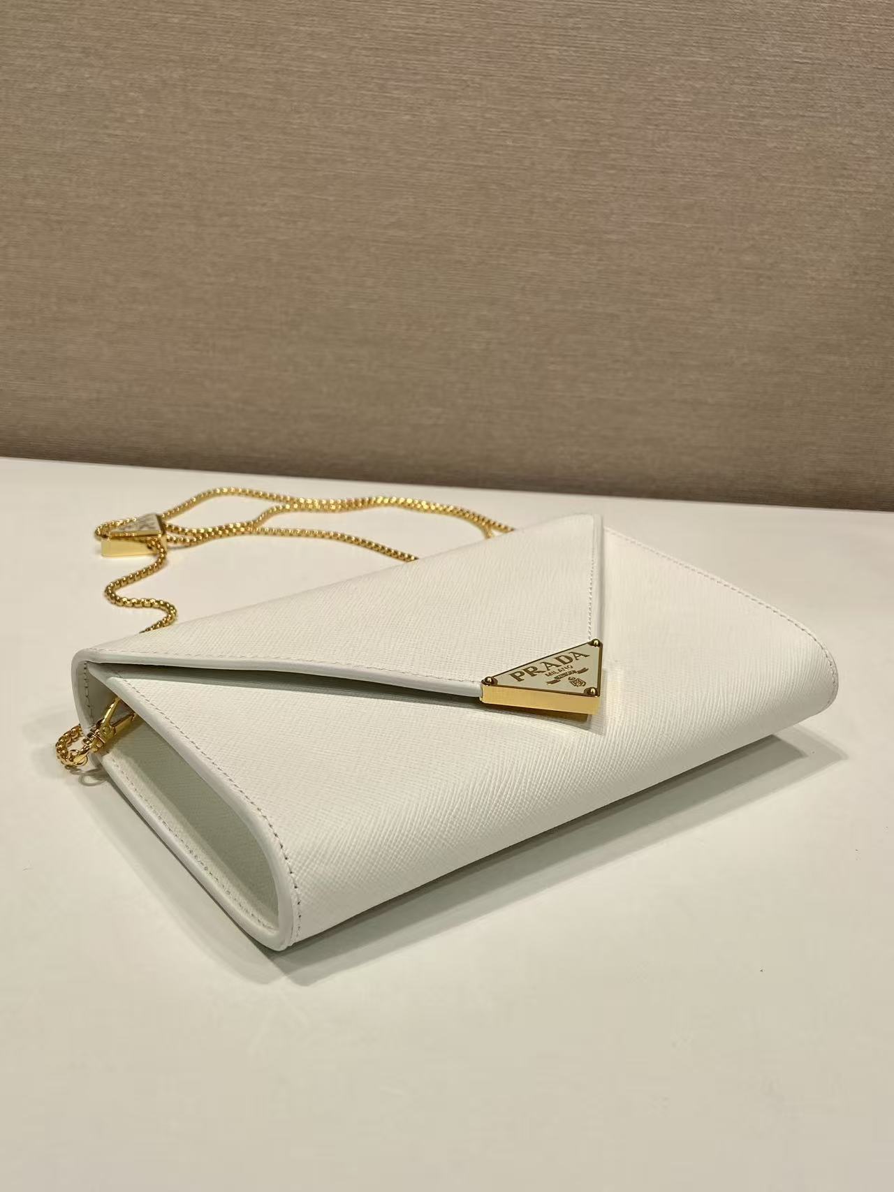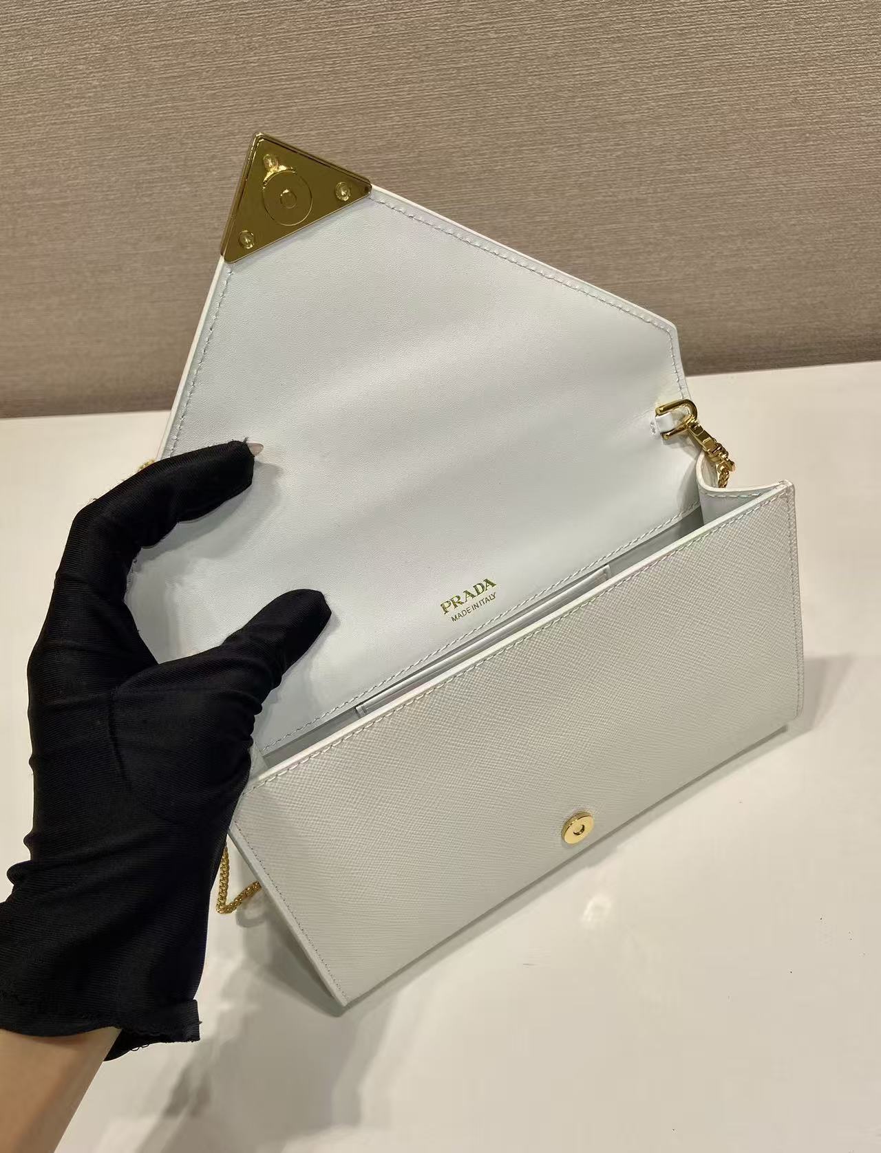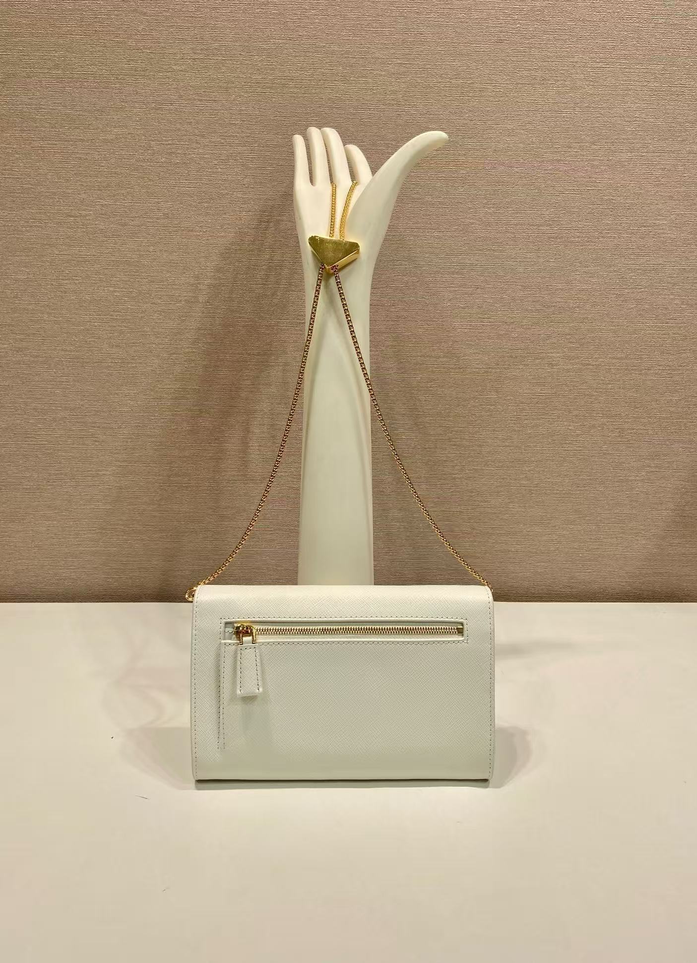 PRADA Saffiano metal triangular logo single-shoulder crossbody wallet for women in white