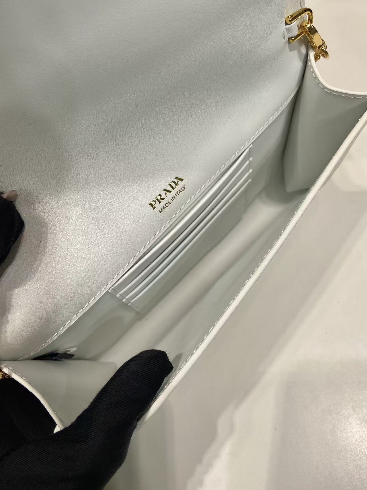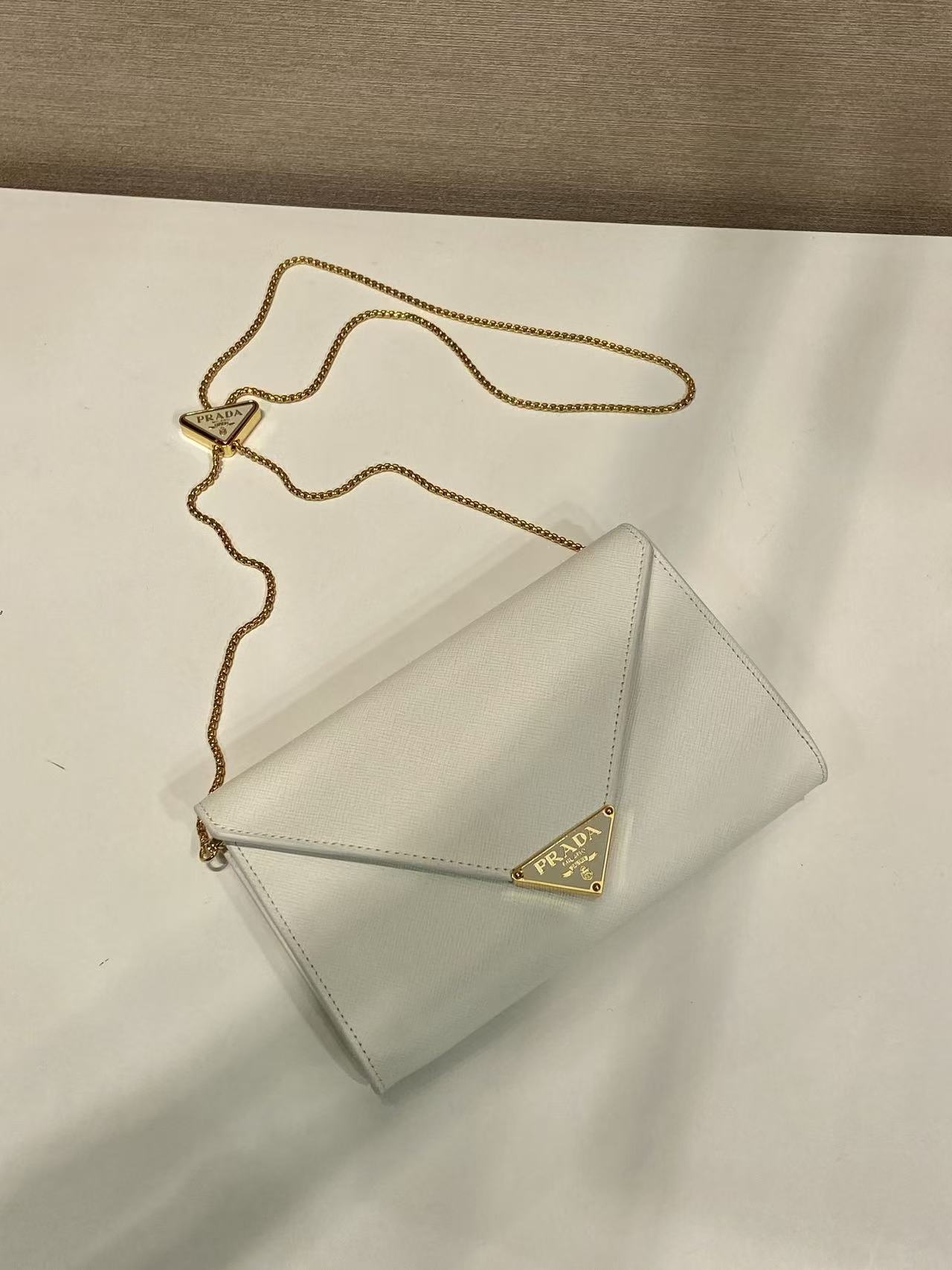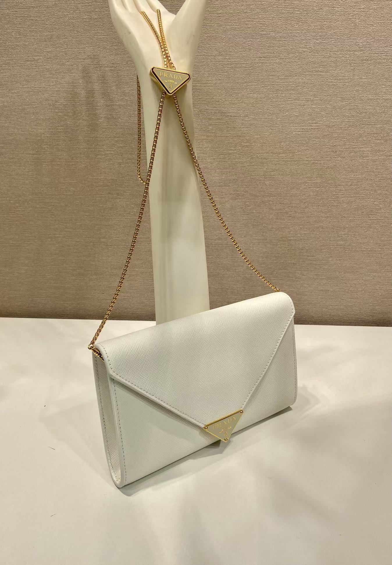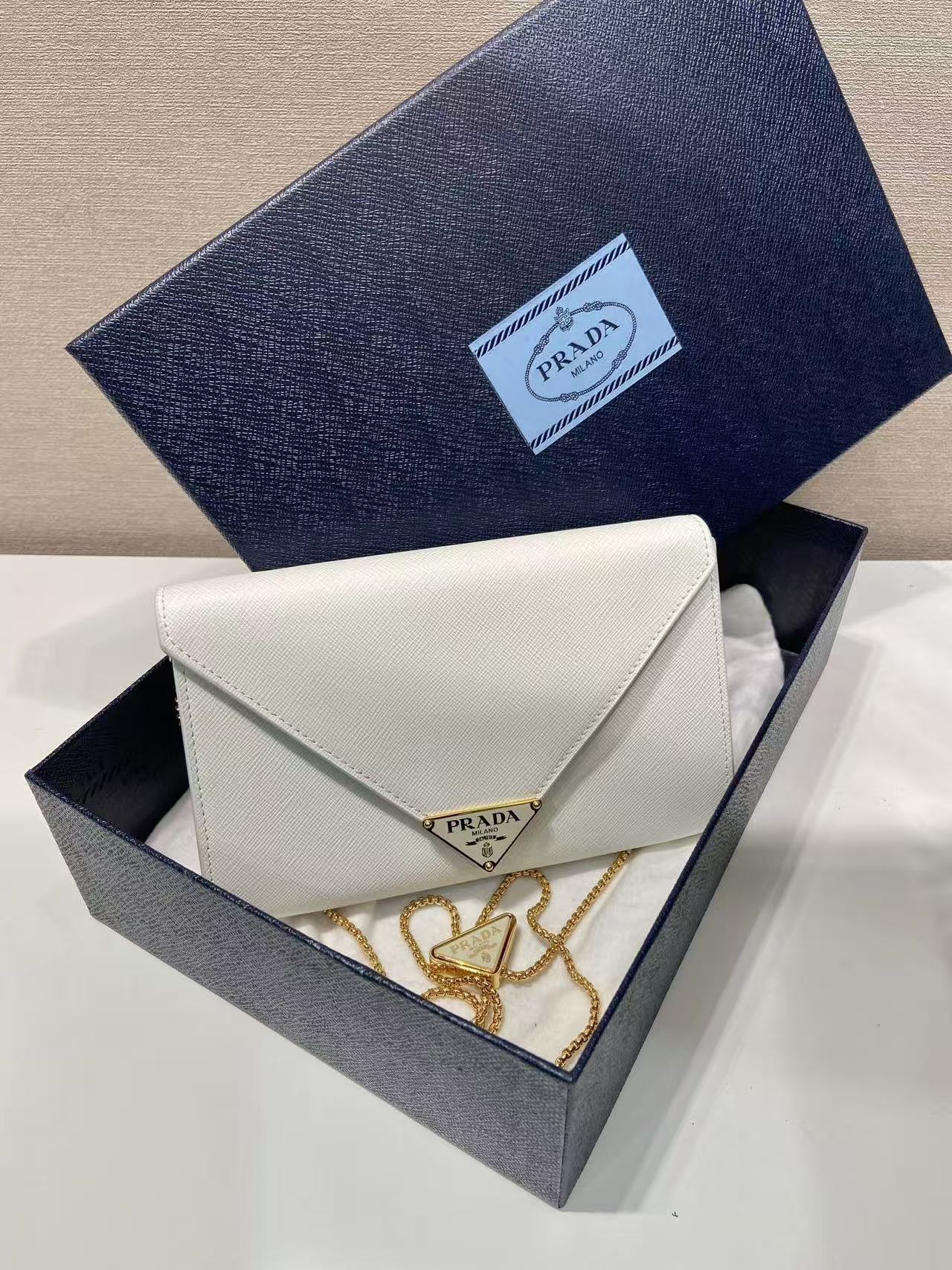 PRADA Saffiano metal triangular logo single-shoulder crossbody wallet for women in white