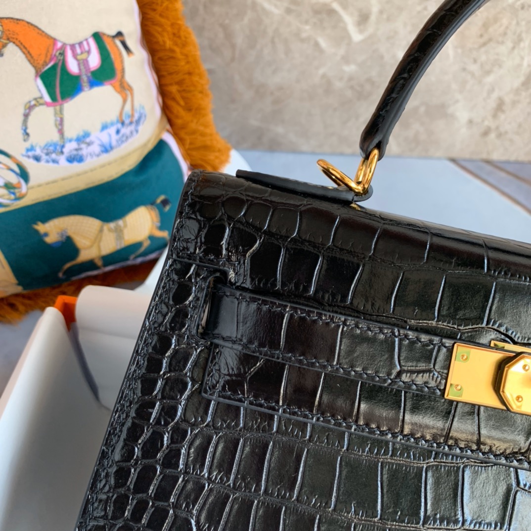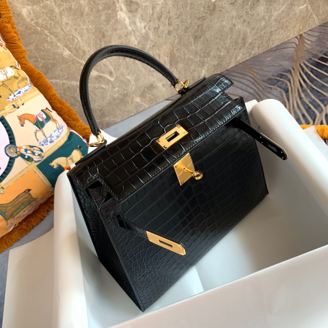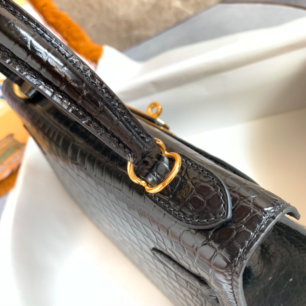 HERMES Kelly 25 Gold buckle Kelly Bag single-shoulder handbag 25 Women\'s style 89 Noir Black