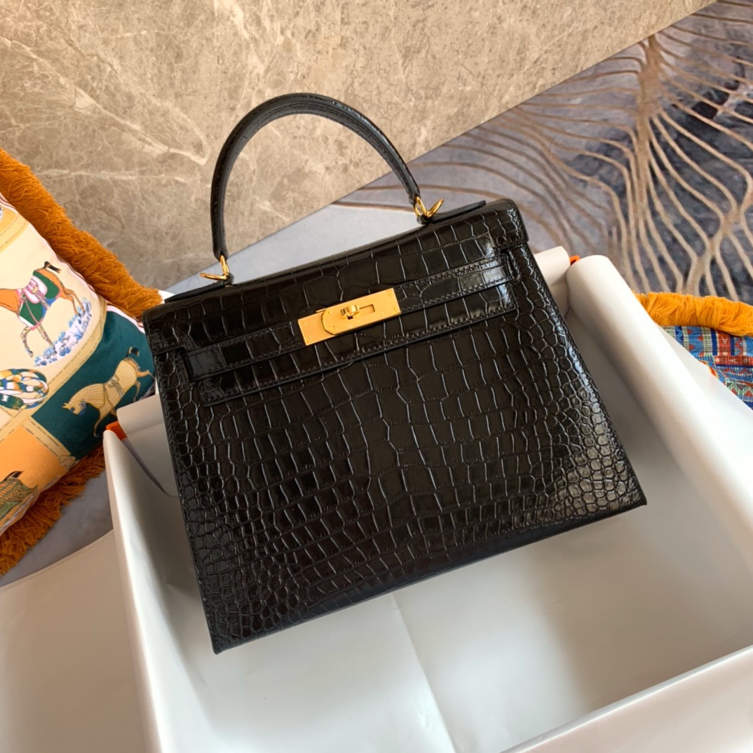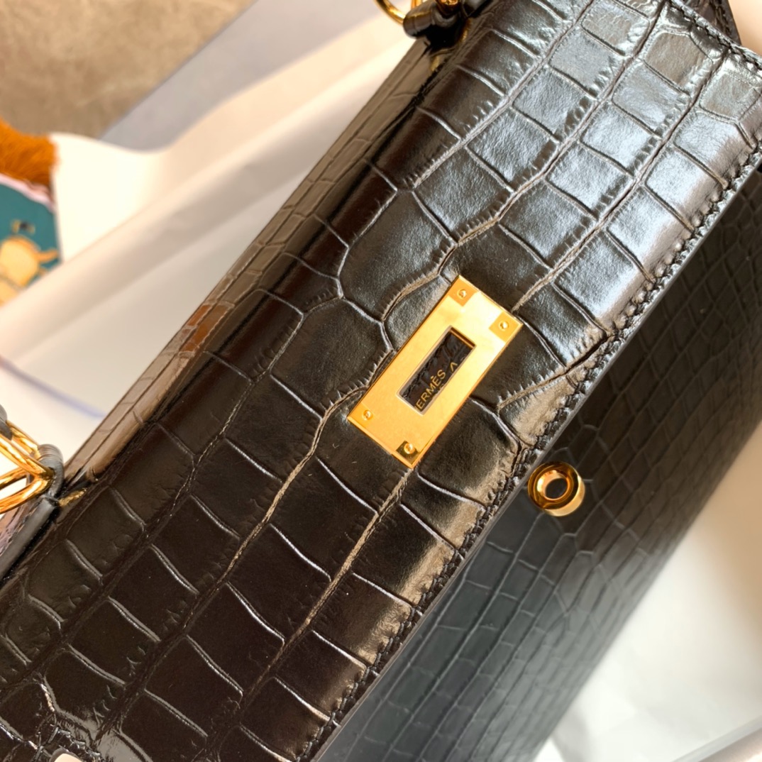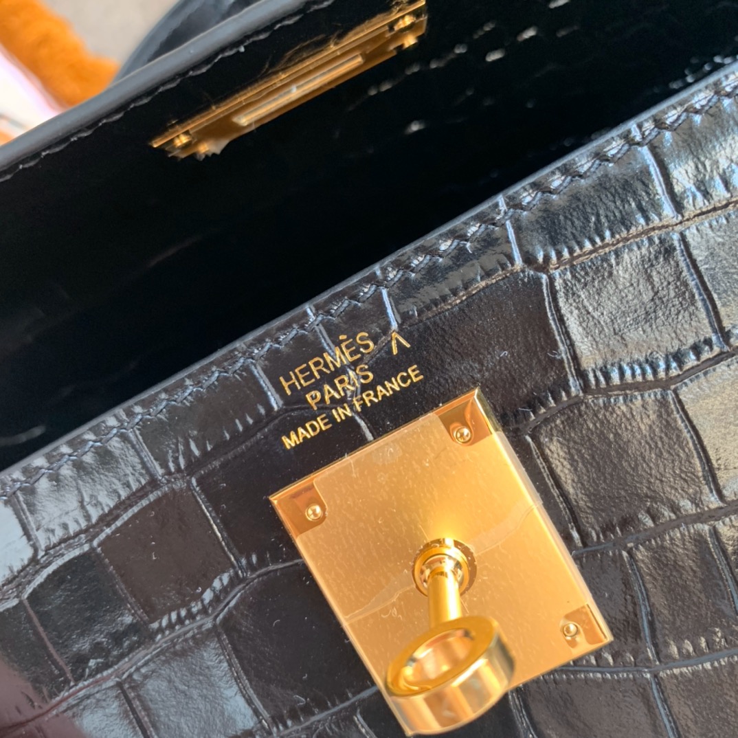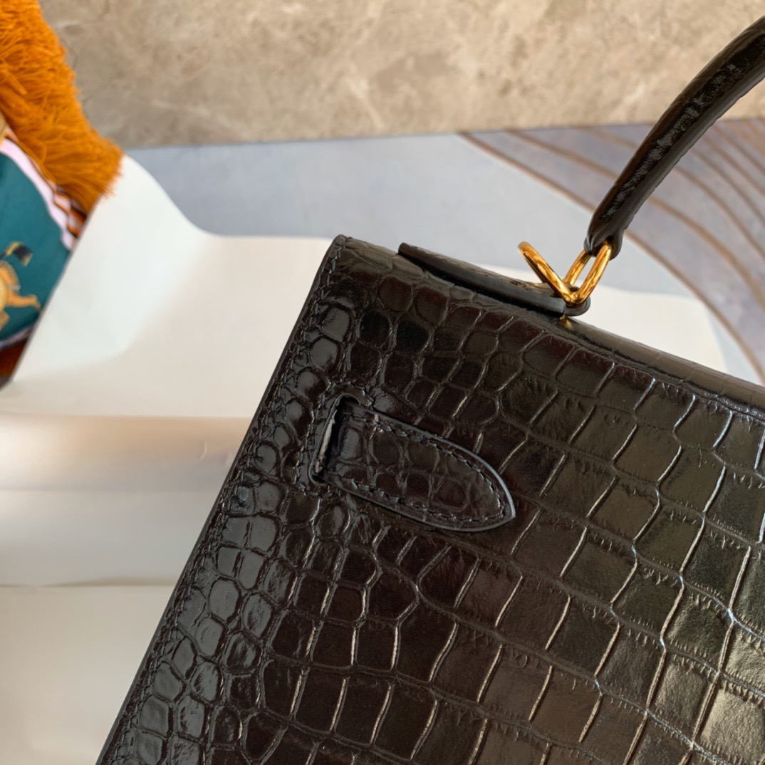 HERMES Kelly 25 Gold buckle Kelly Bag single-shoulder handbag 25 Women\'s style 89 Noir Black