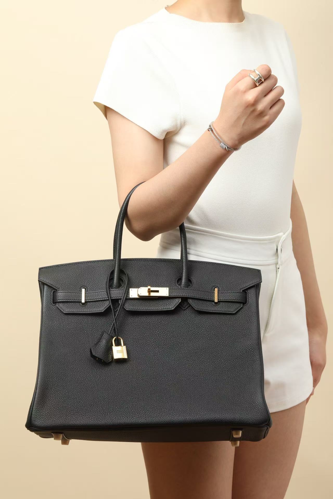 HERMES Birkin 30 Gold buckle platinum handbag 30 Women\'s Edition 89 Noir Black