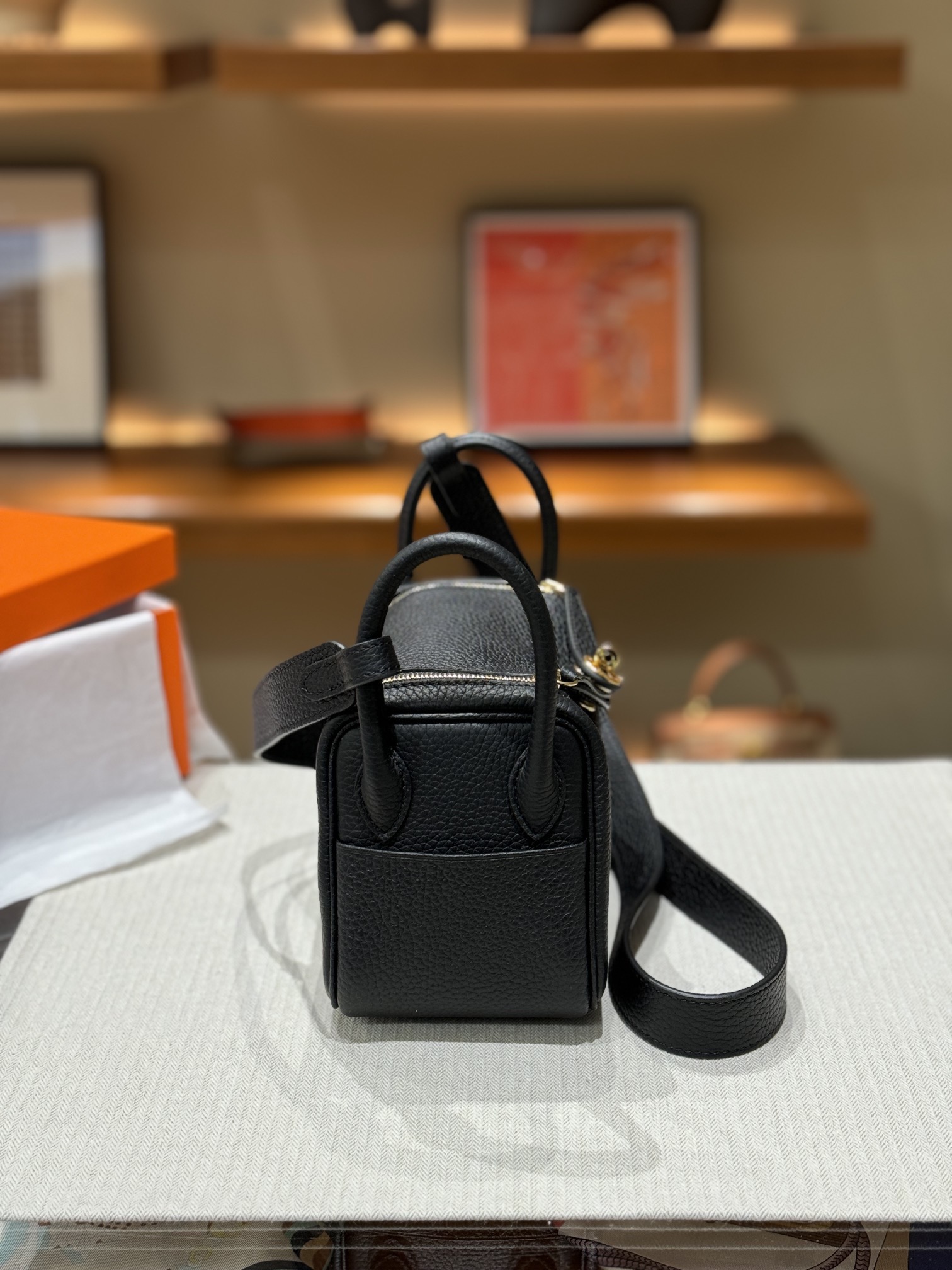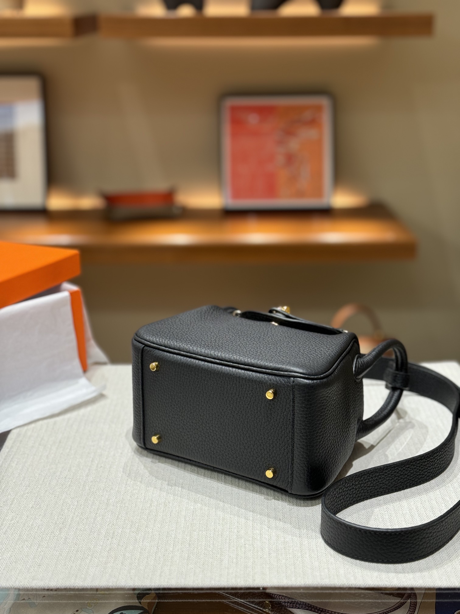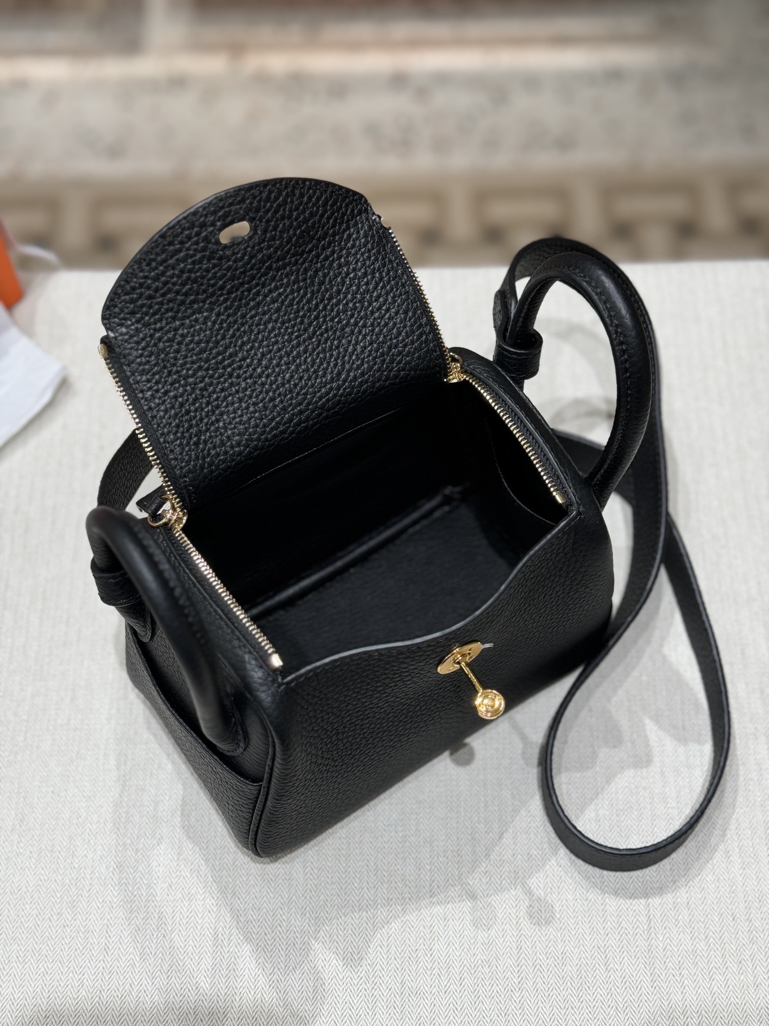 HERMES Lindy 12 Second Generation Gold Buckle Handbag 12 Women\'s Black