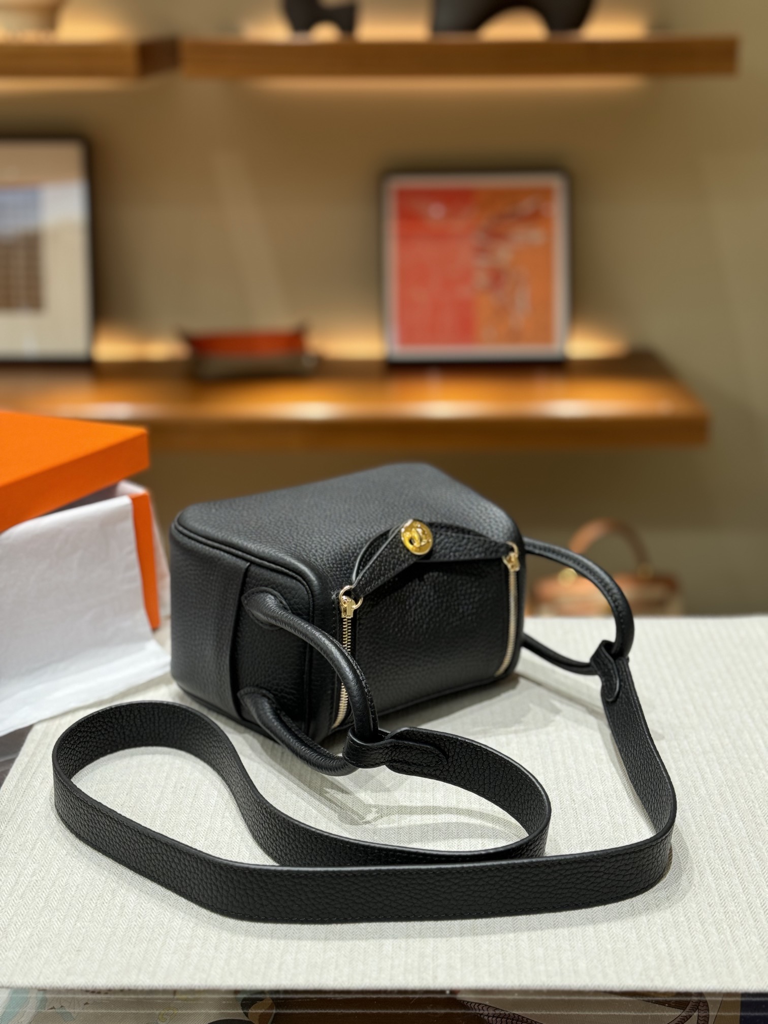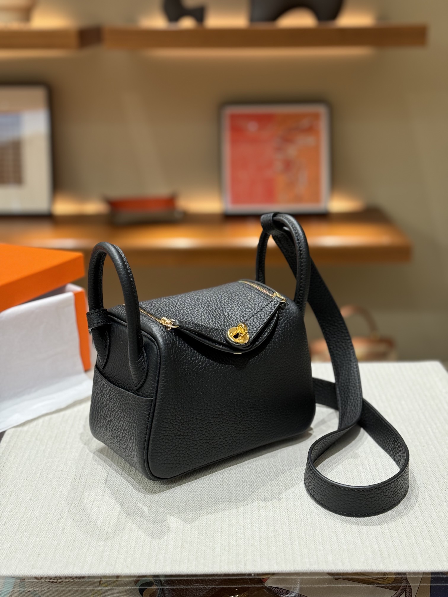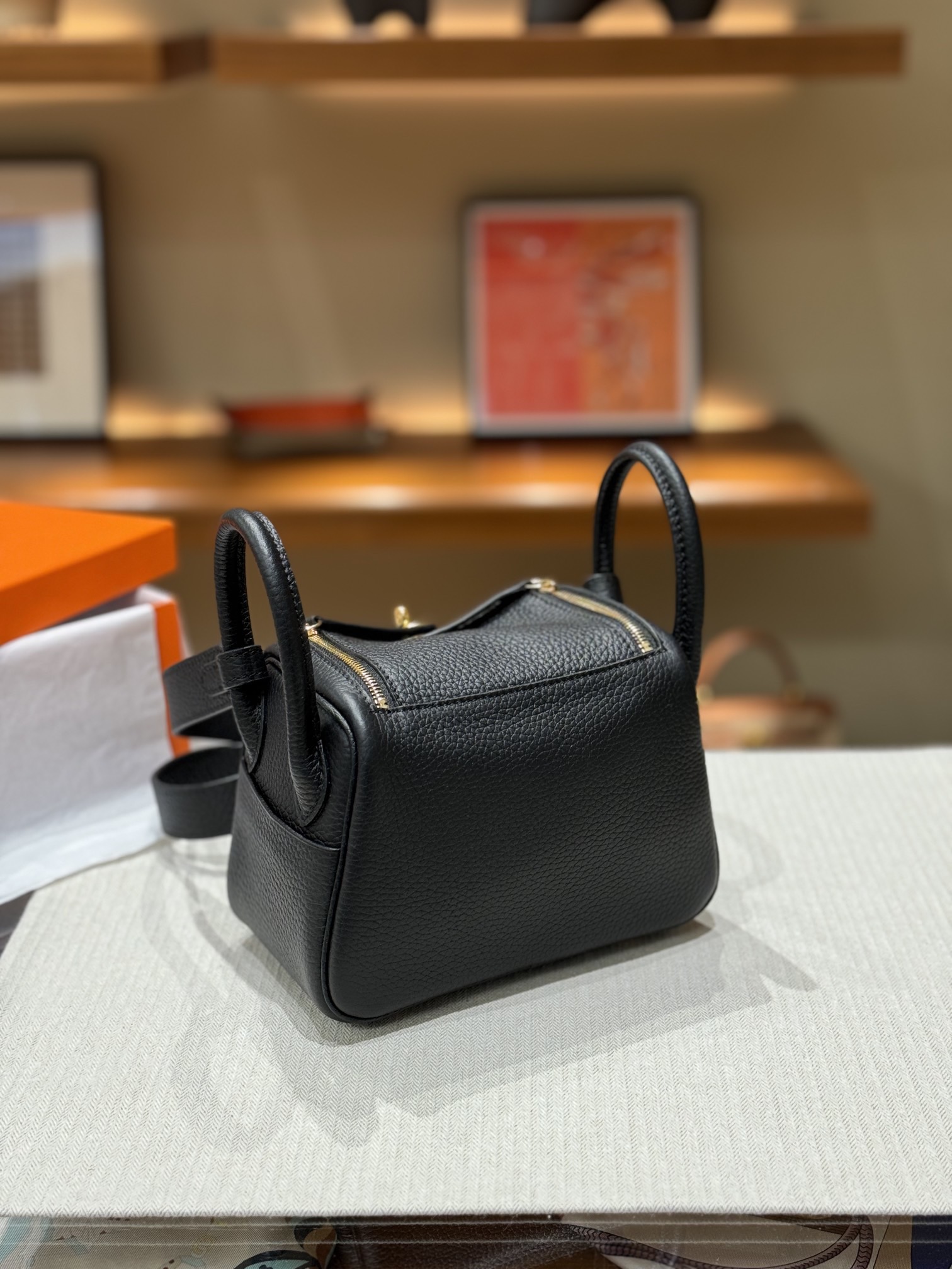 HERMES Lindy 12 Second Generation Gold Buckle Handbag 12 Women\'s Black