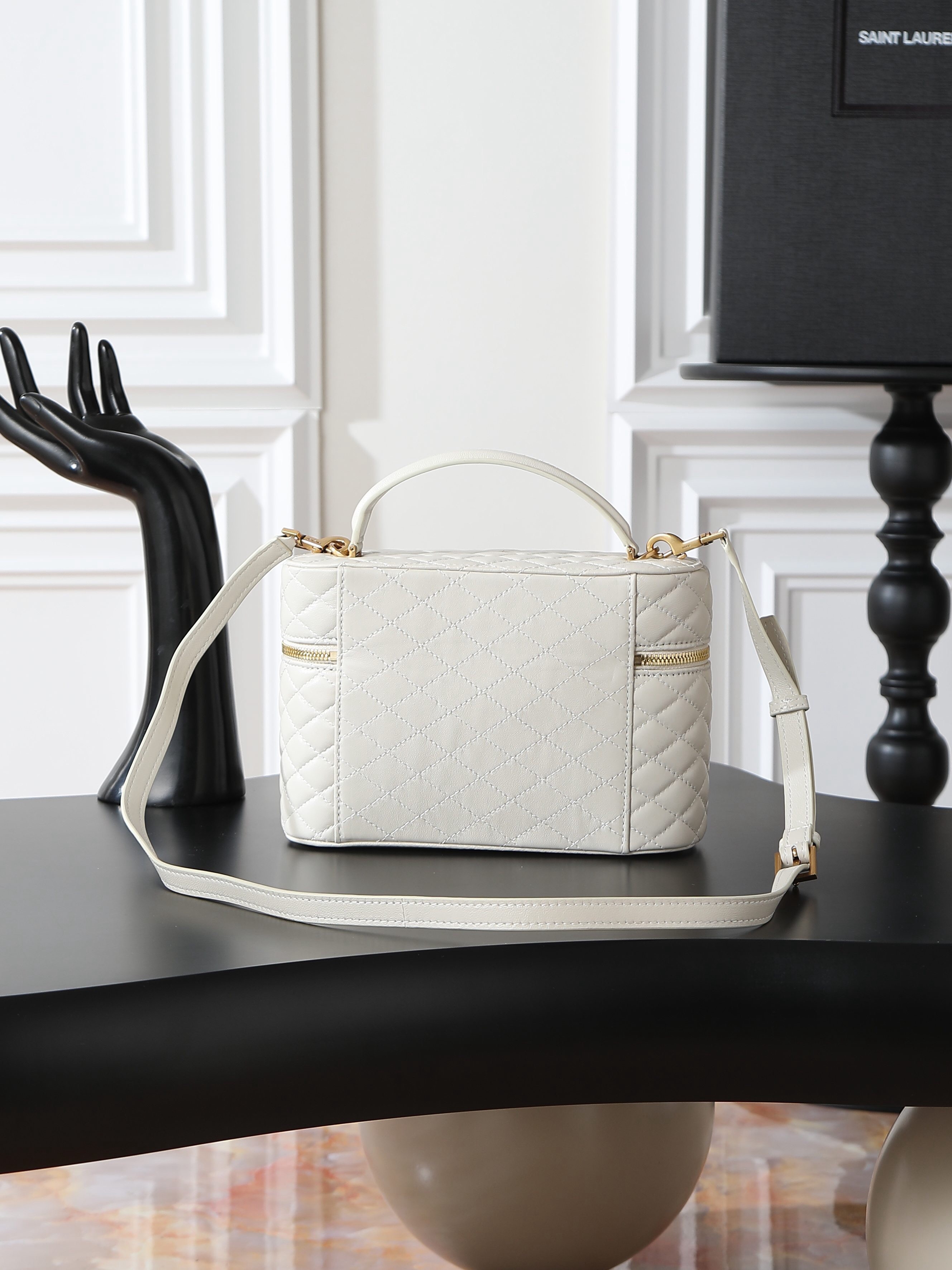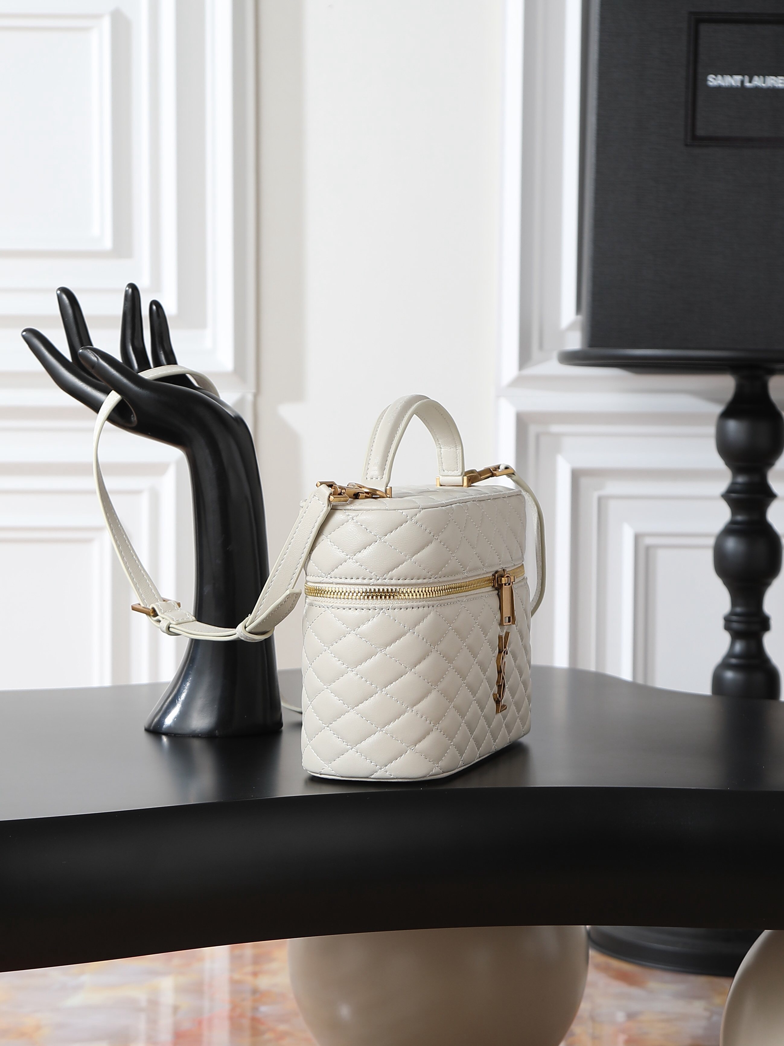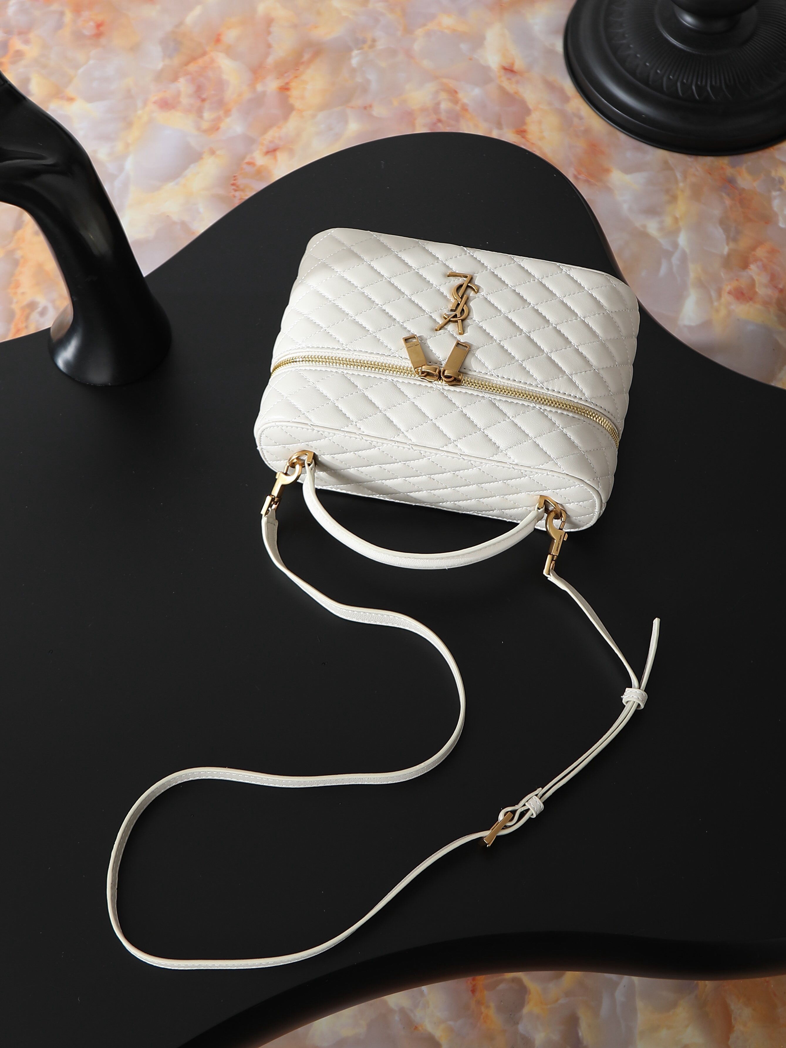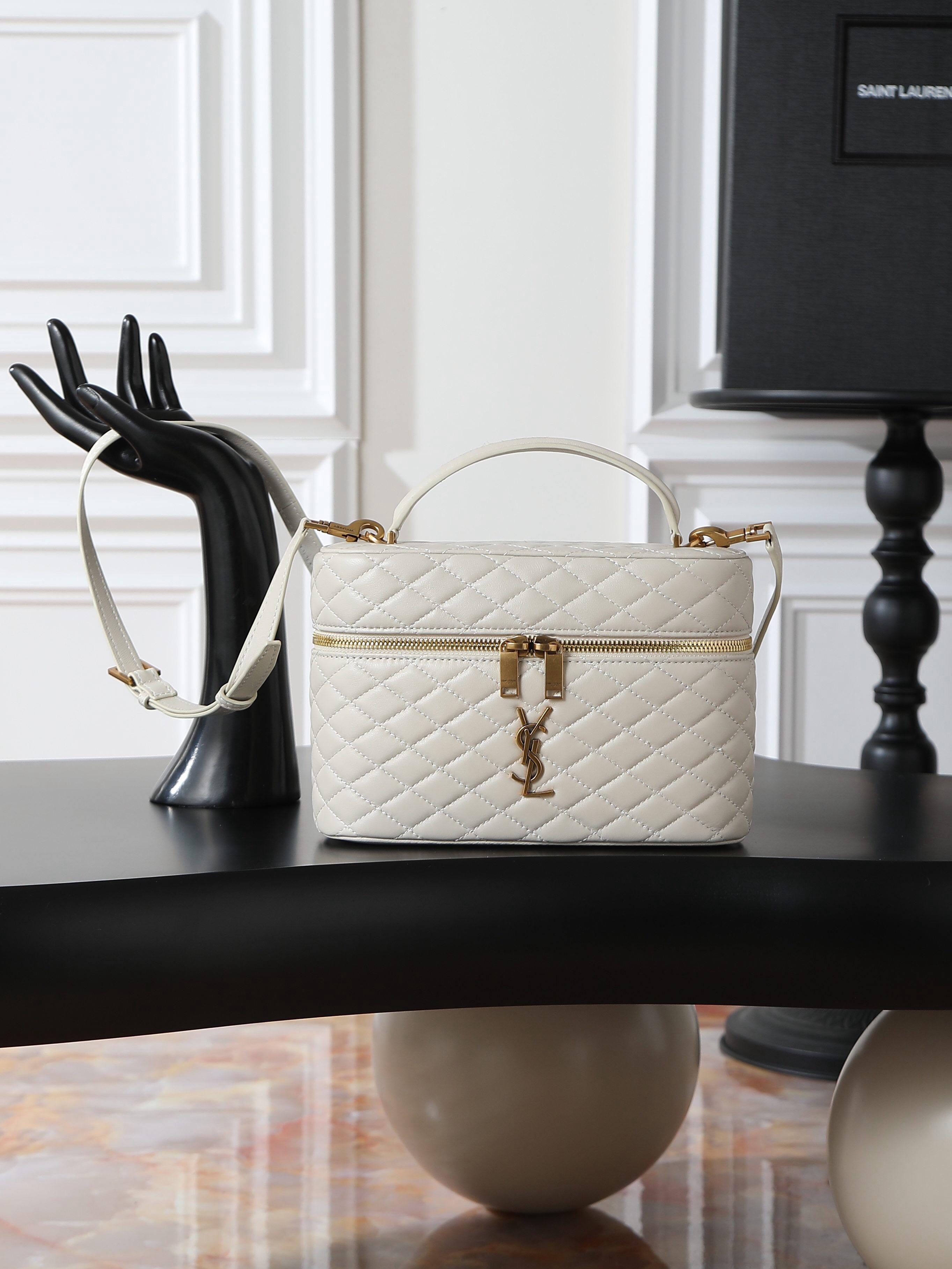 SAINT LAURENT YSL GABY bronze-decorated sheepskin single-shoulder bag, large white