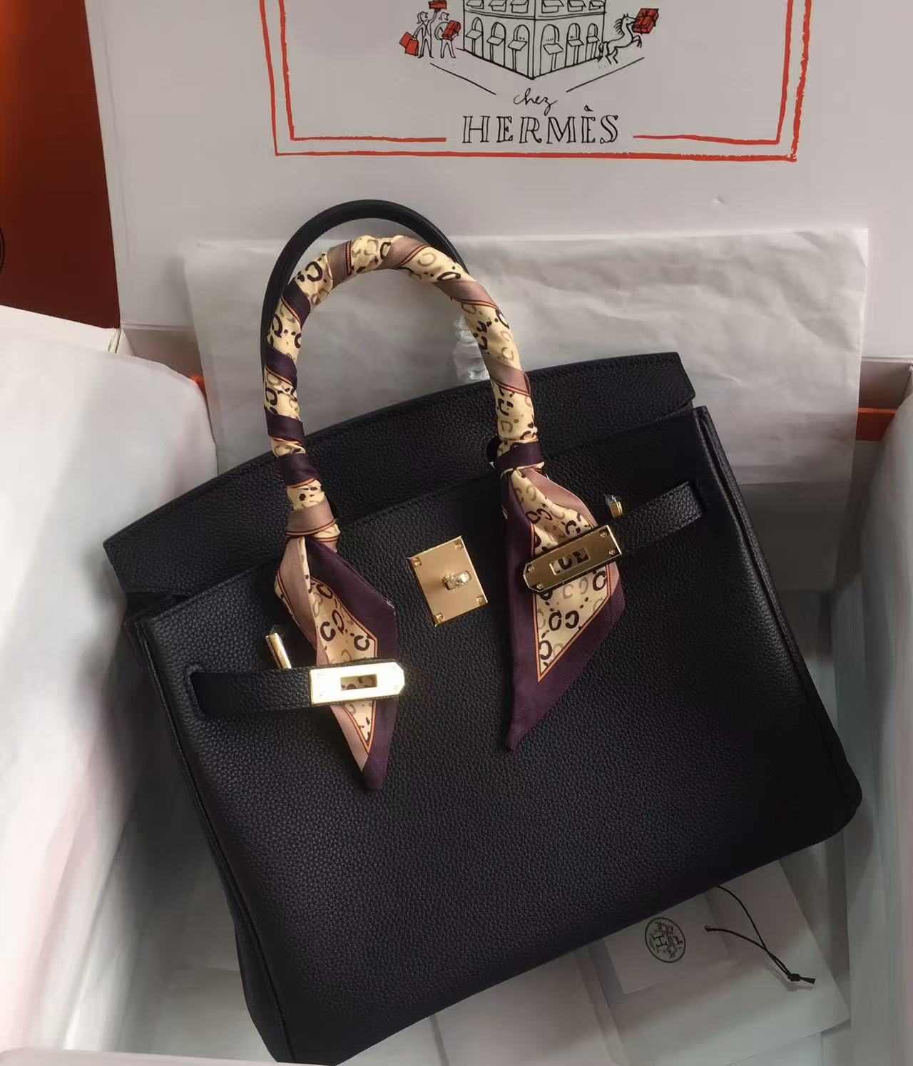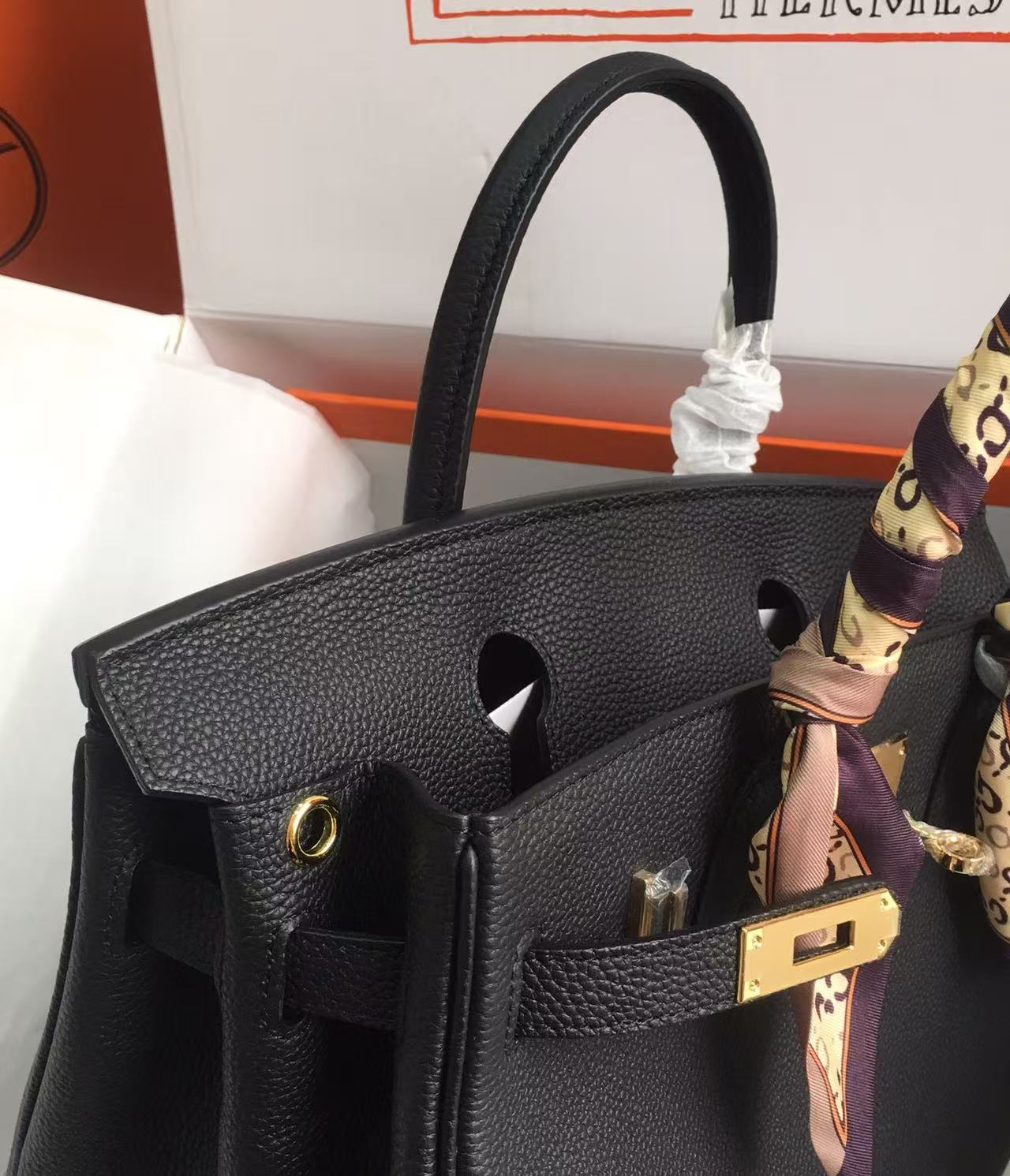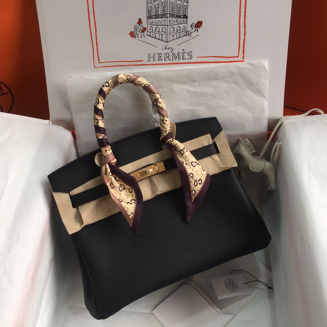 HERMES Birkin 30 Gold buckle platinum handbag 30 Women\'s Edition 89 Noir Black