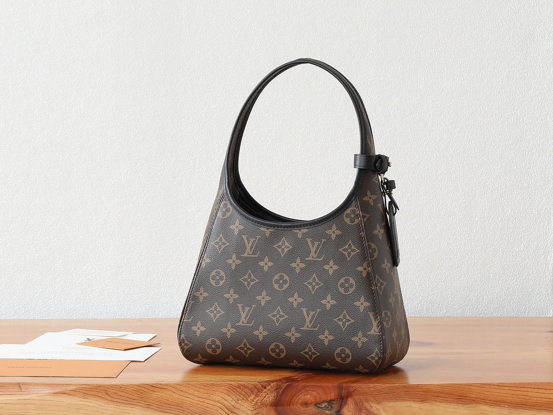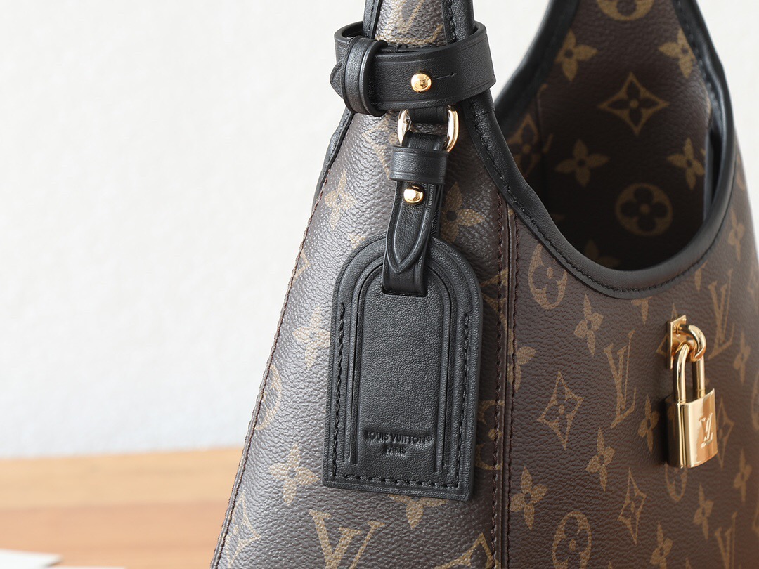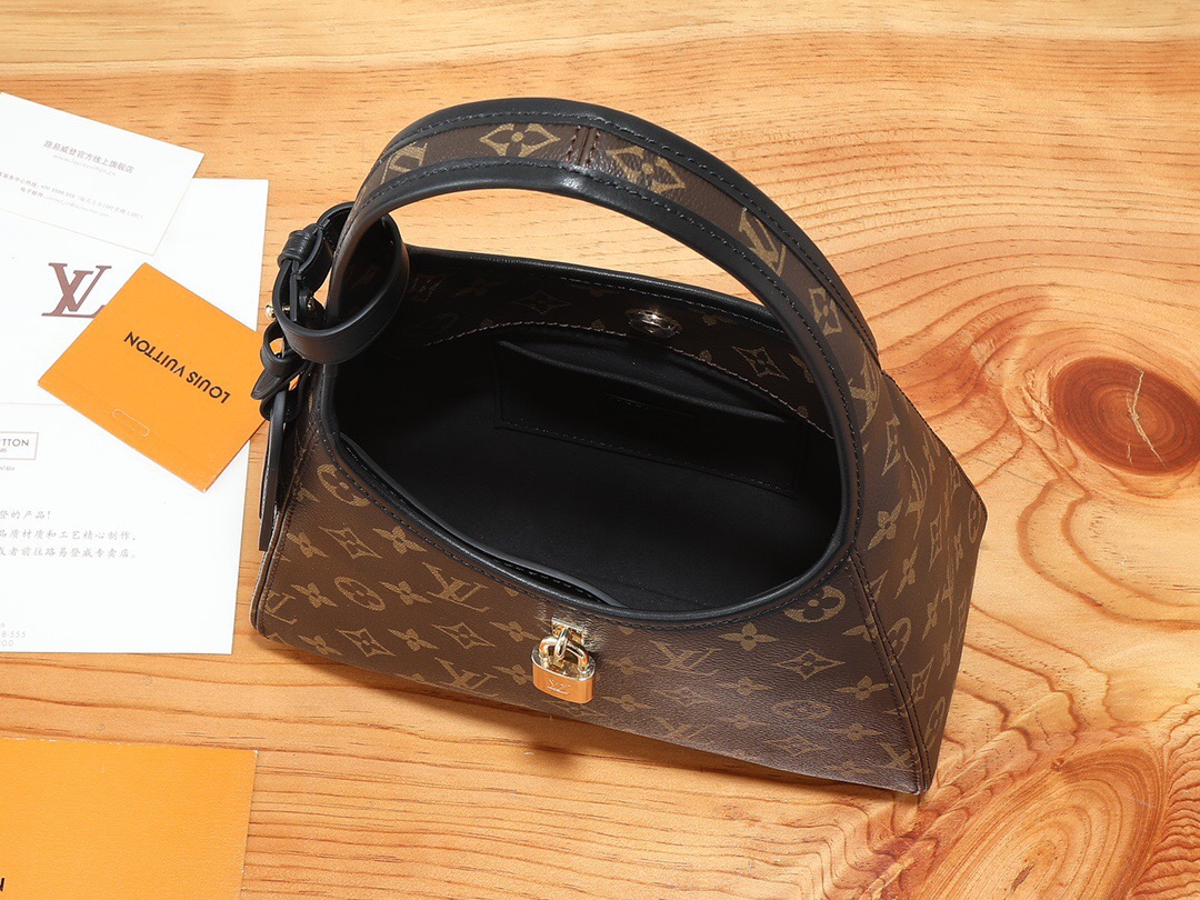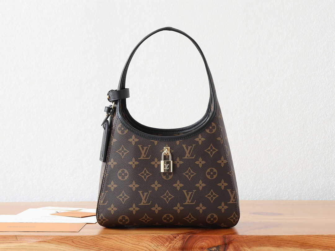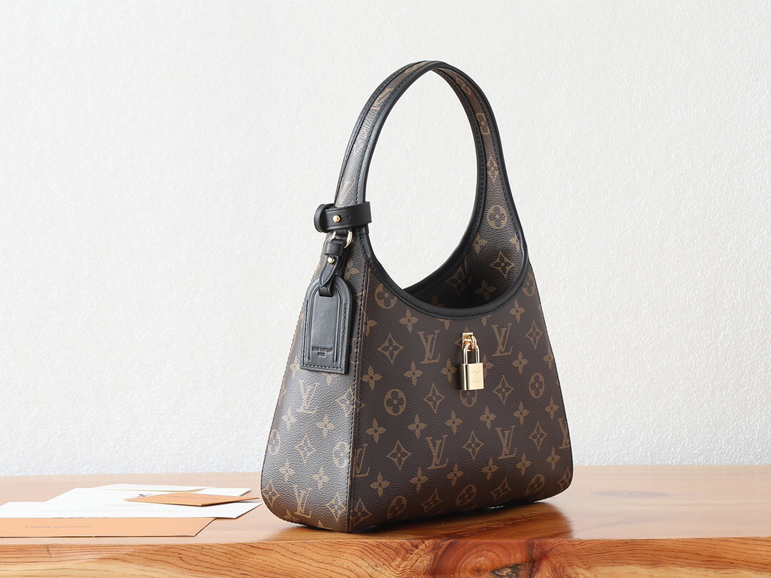 LOUIS VUITTON The Drop Gold finish signature padlock Monogram Hobo bag Shoulder handbag small brown