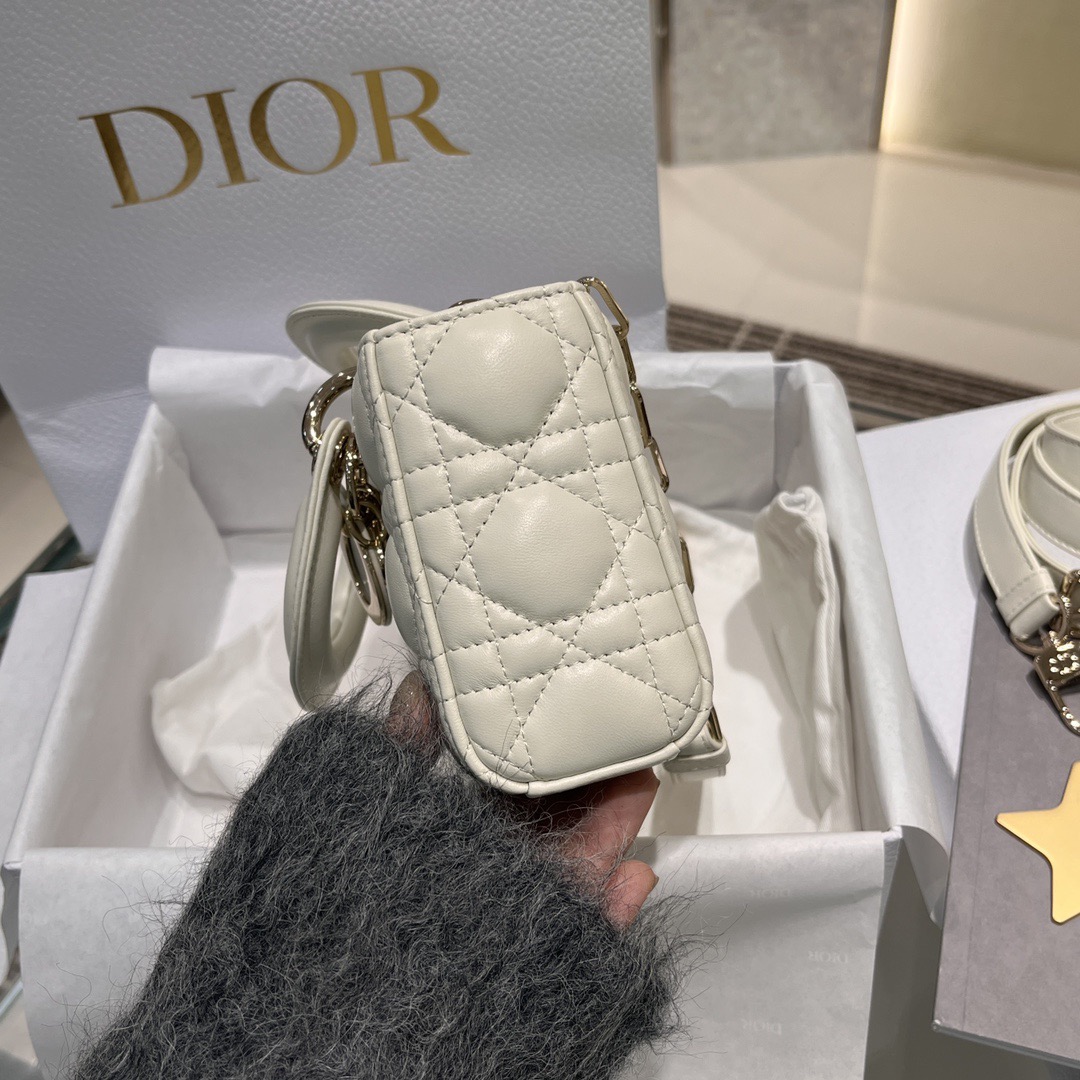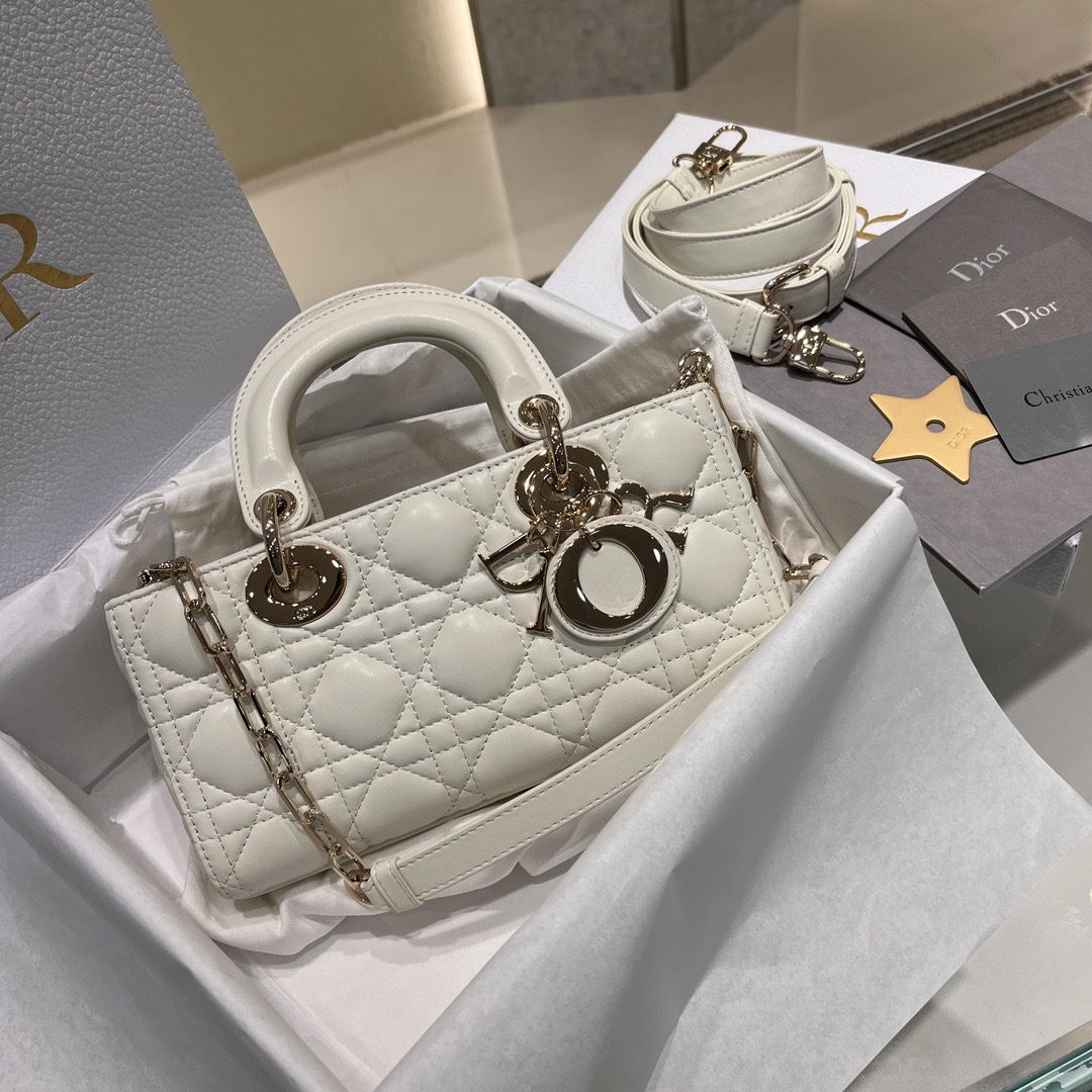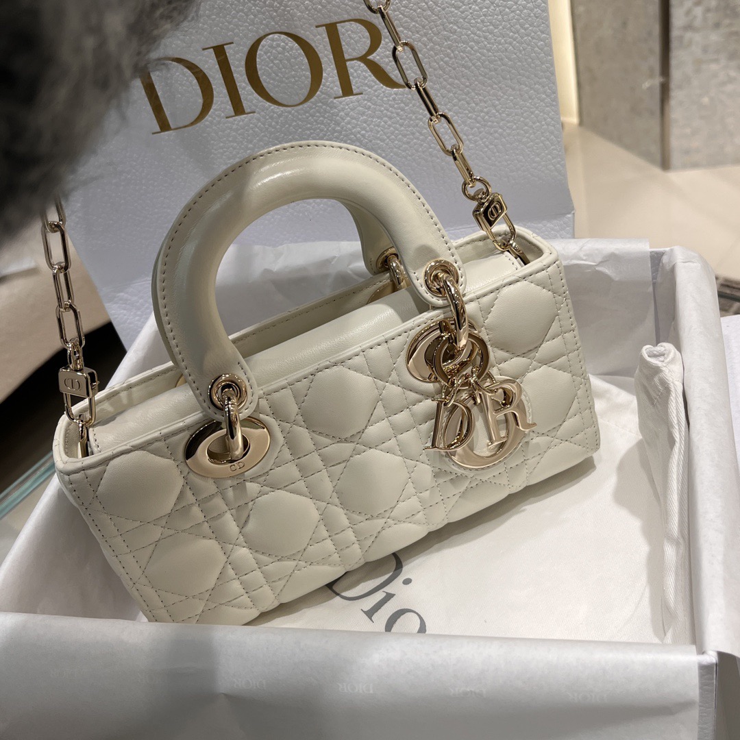 DIOR Lady D-Joy light gold finish pendant, detachable and adjustable shoulder strap, single-shoulder crossbody bag, Princess handbag, small size, women\'s style, cream white