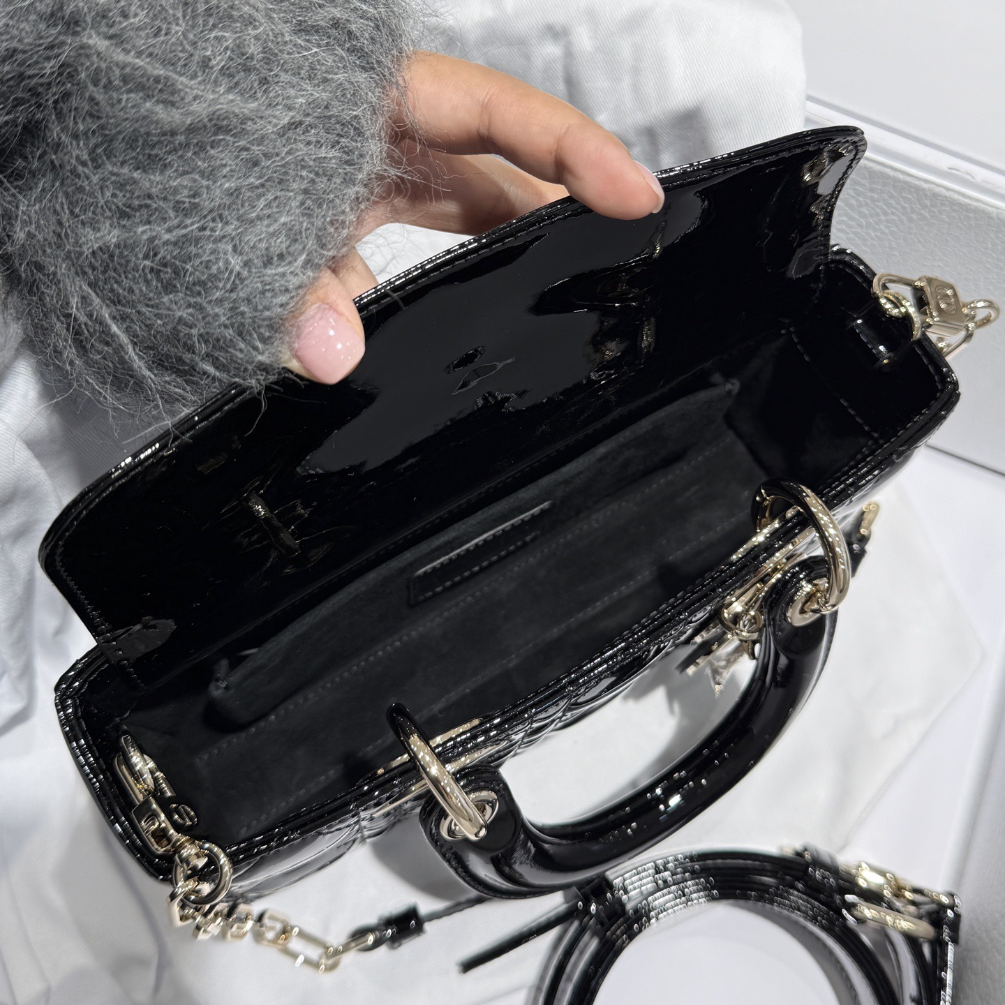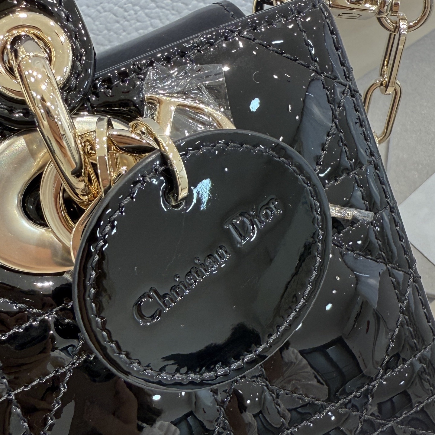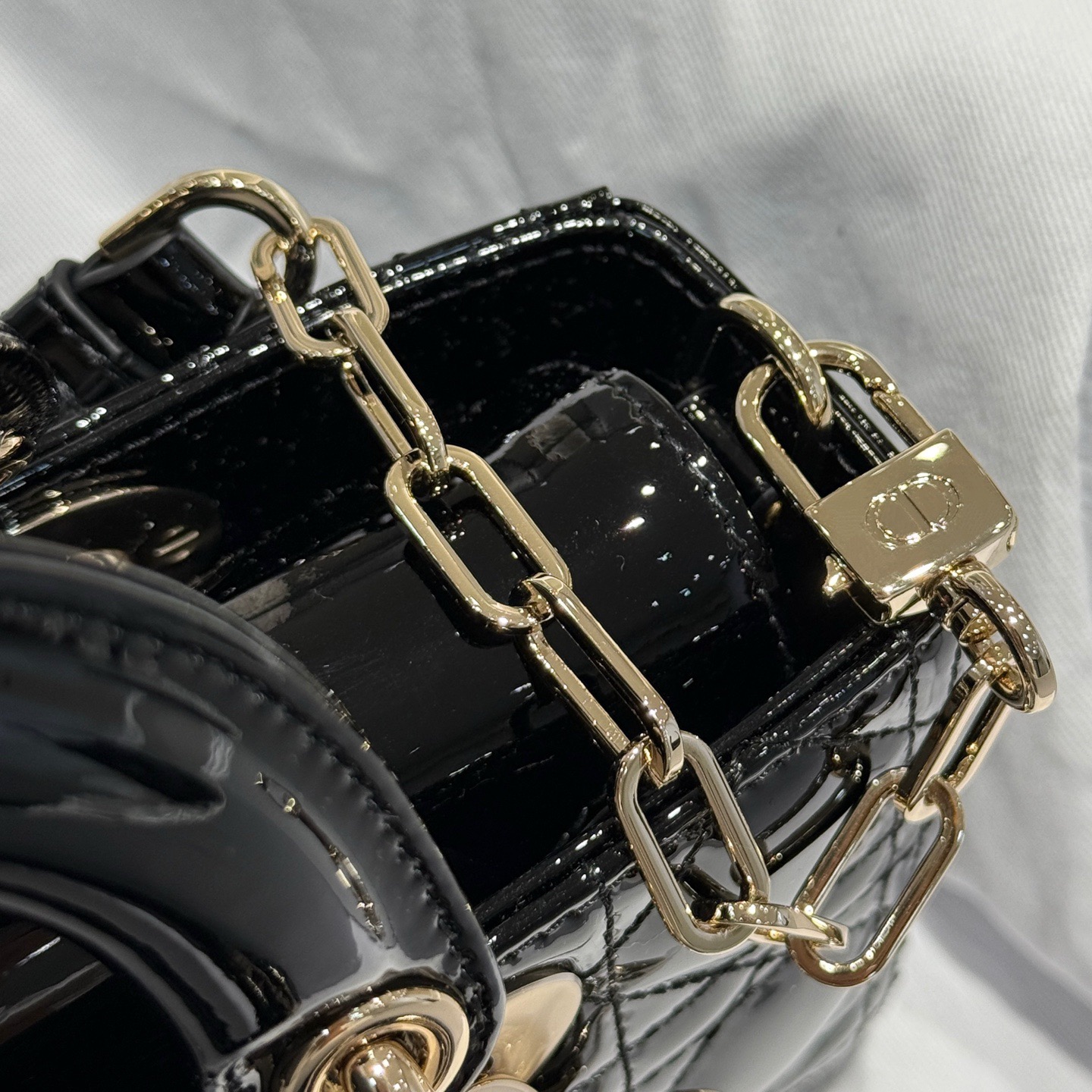 DIOR Lady D-Joy light gold finish pendant with vine check pattern detachable and adjustable shoulder strap Princess handbag, small size for women, black