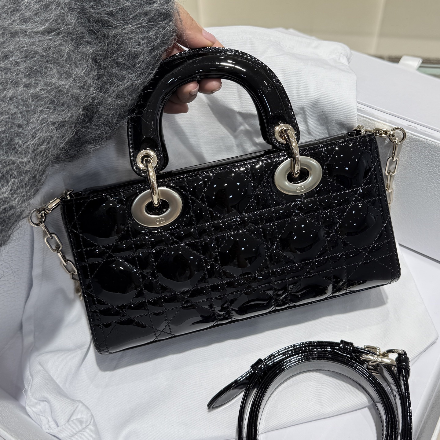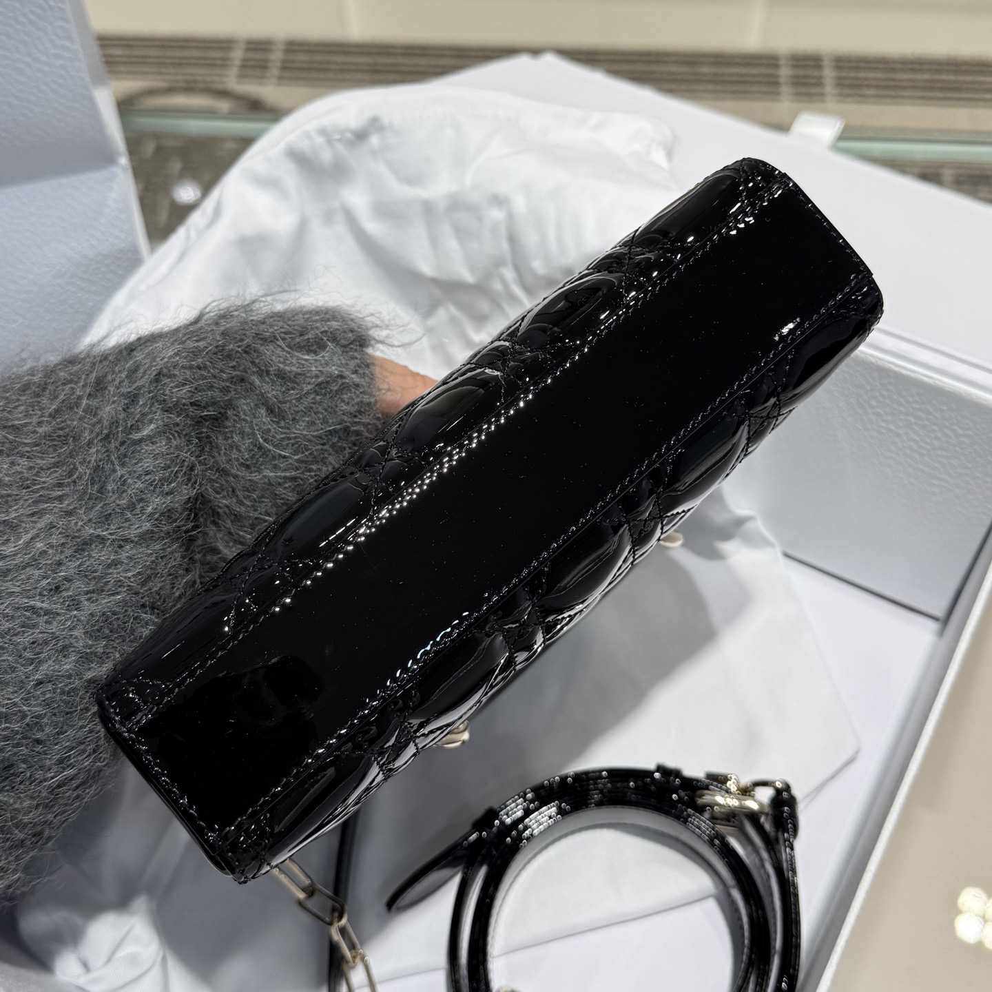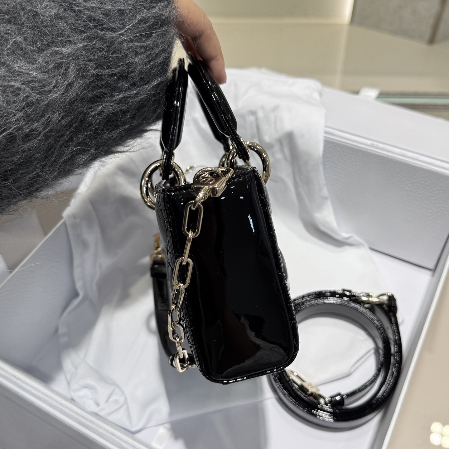 DIOR Lady D-Joy light gold finish pendant with vine check pattern detachable and adjustable shoulder strap Princess handbag, small size for women, black