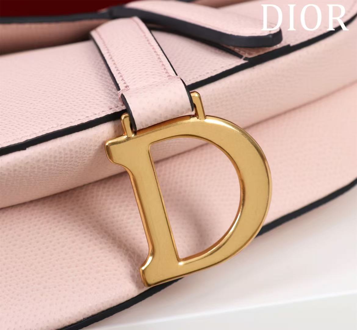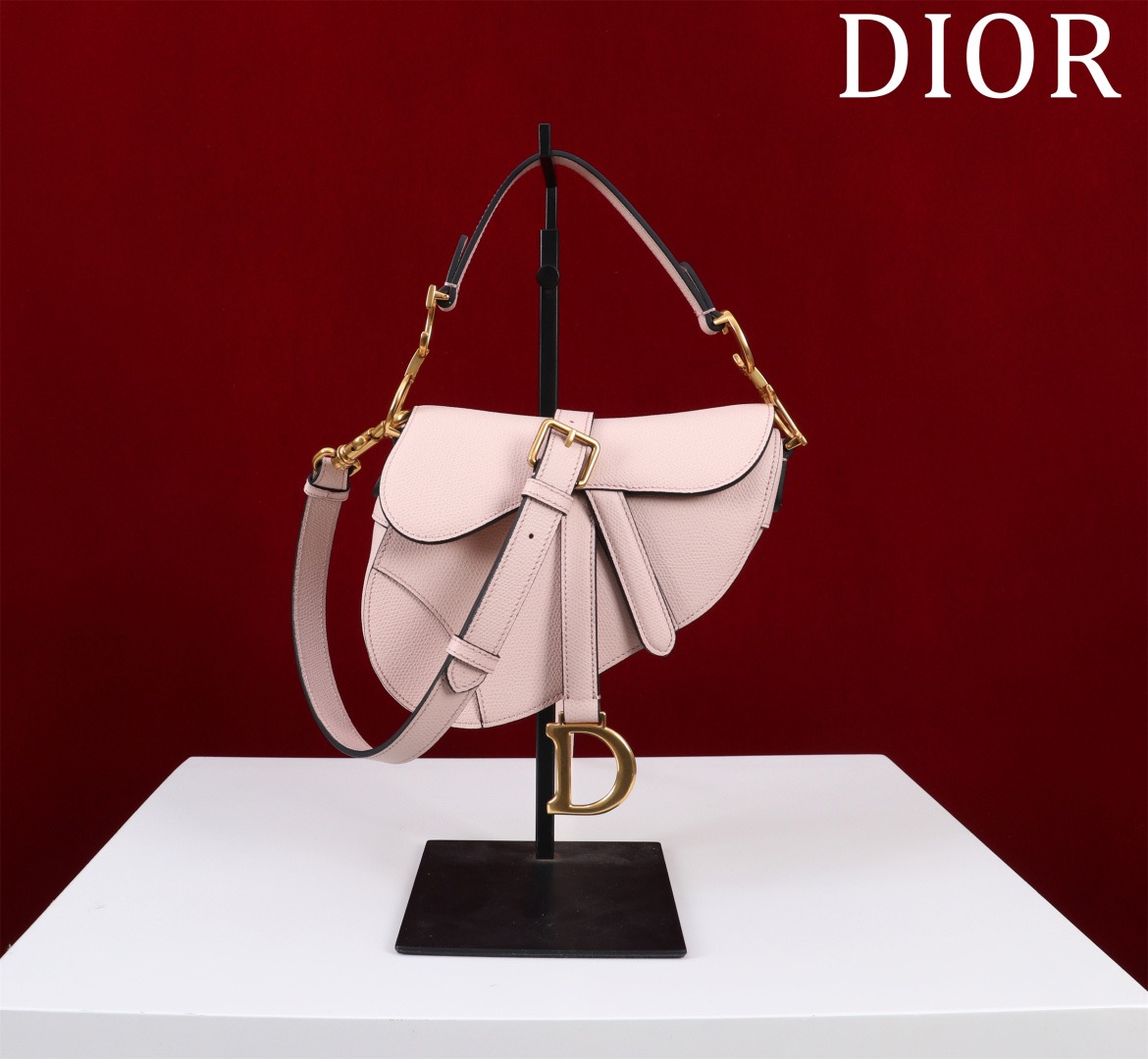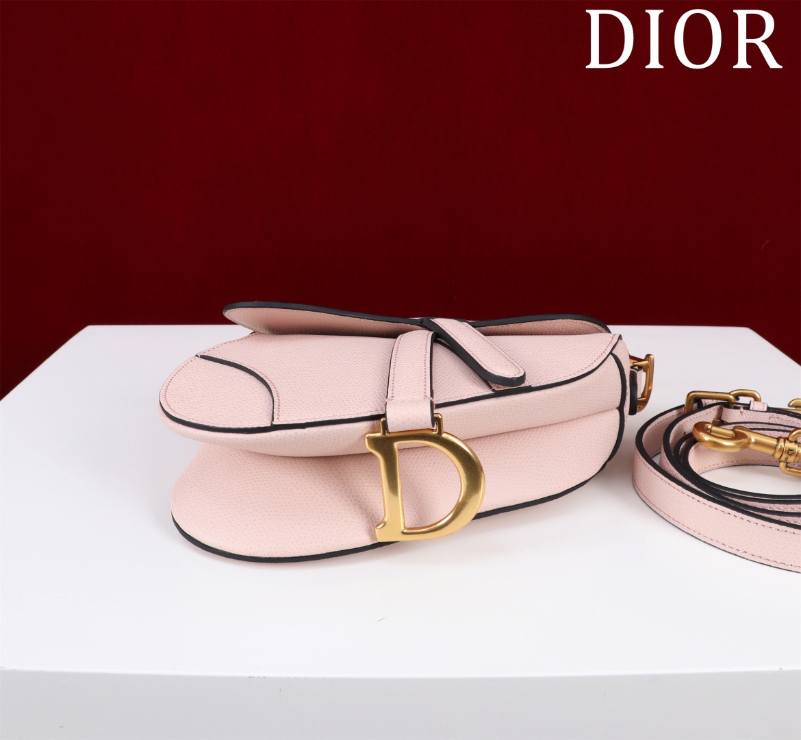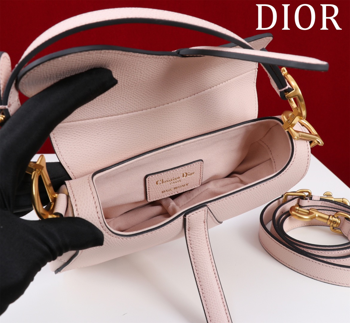 DIOR Saddle magnetic D-shaped buckle adjustable and detachable shoulder strap saddle bag, mini women\'s crossbody handbag, retro pink