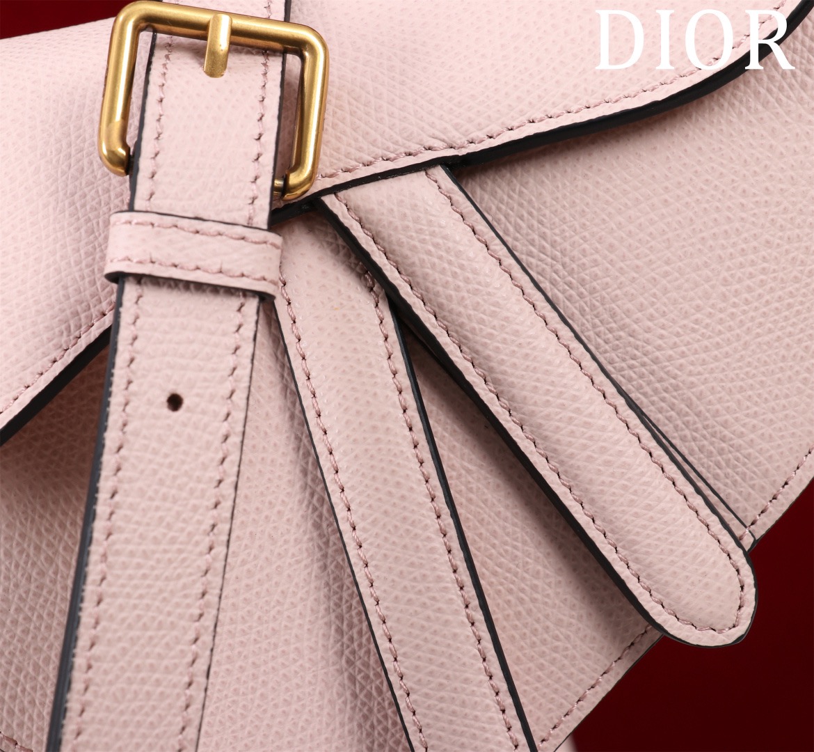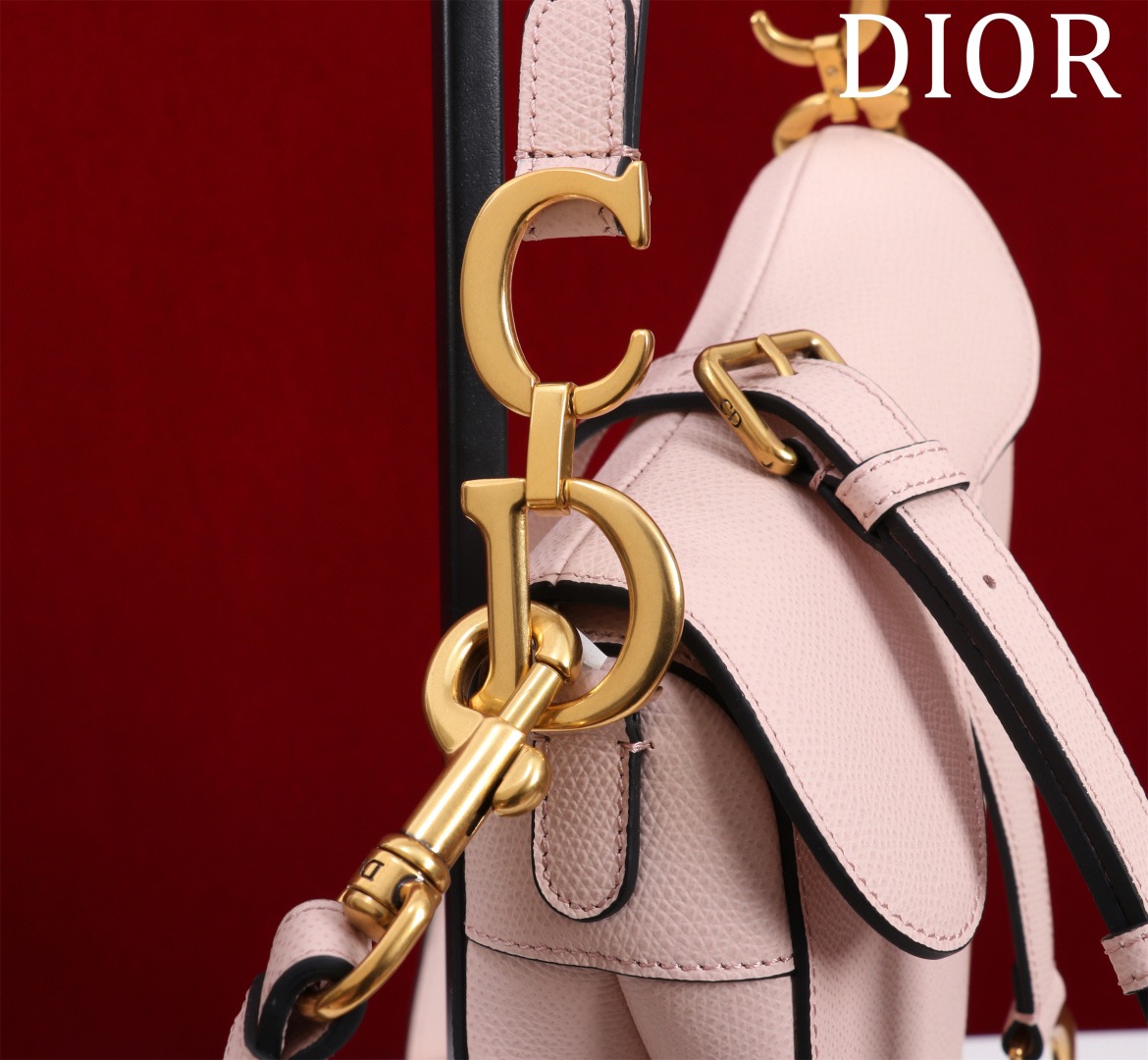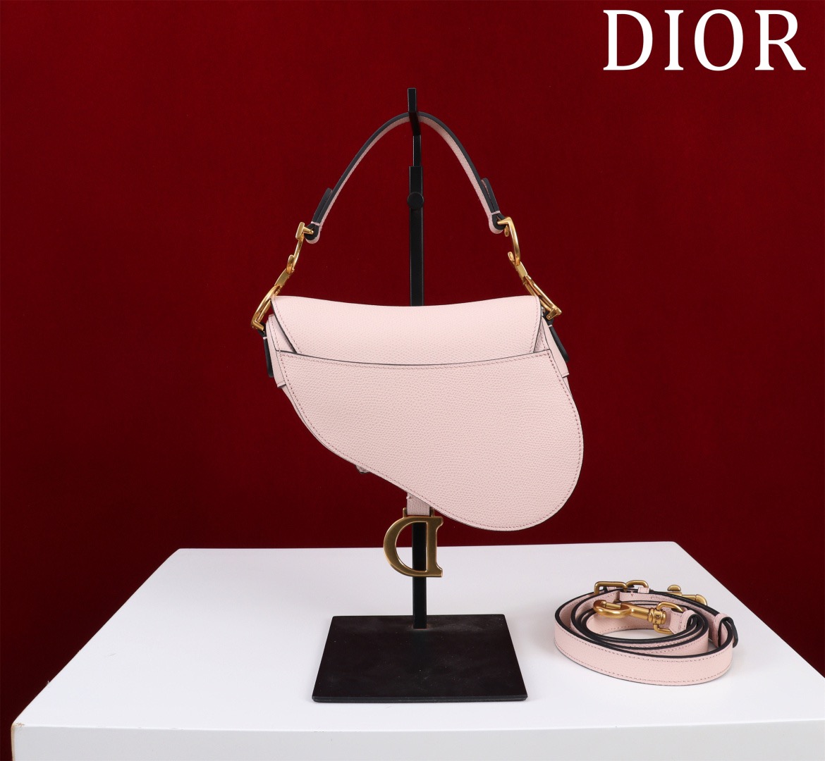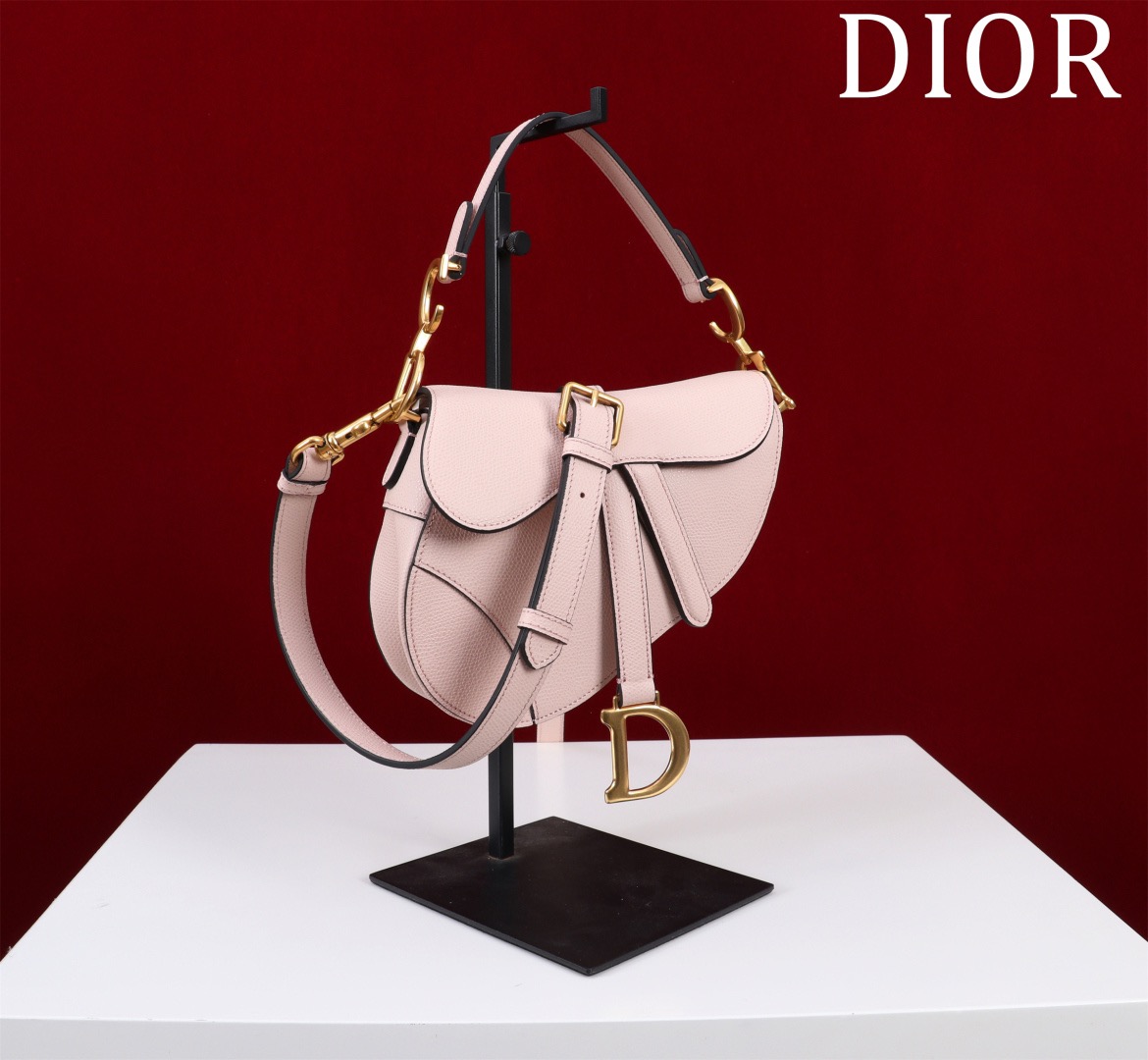 DIOR Saddle magnetic D-shaped buckle adjustable and detachable shoulder strap saddle bag, mini women\'s crossbody handbag, retro pink