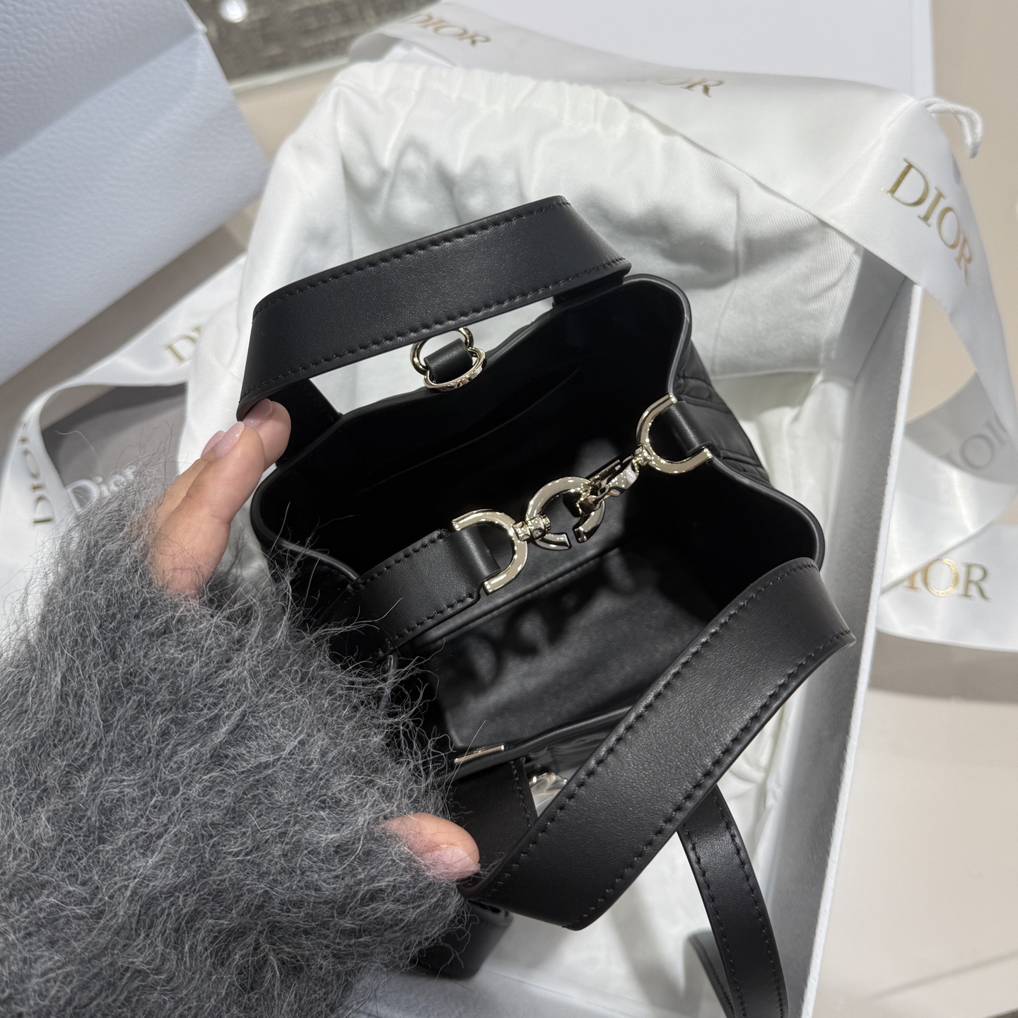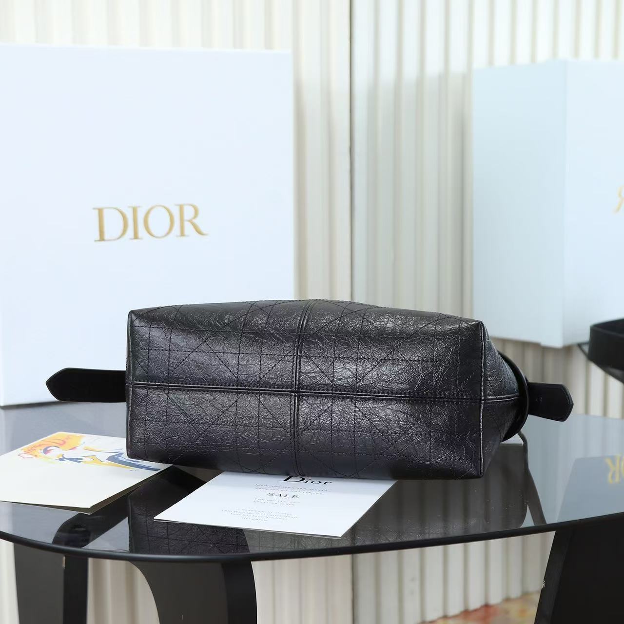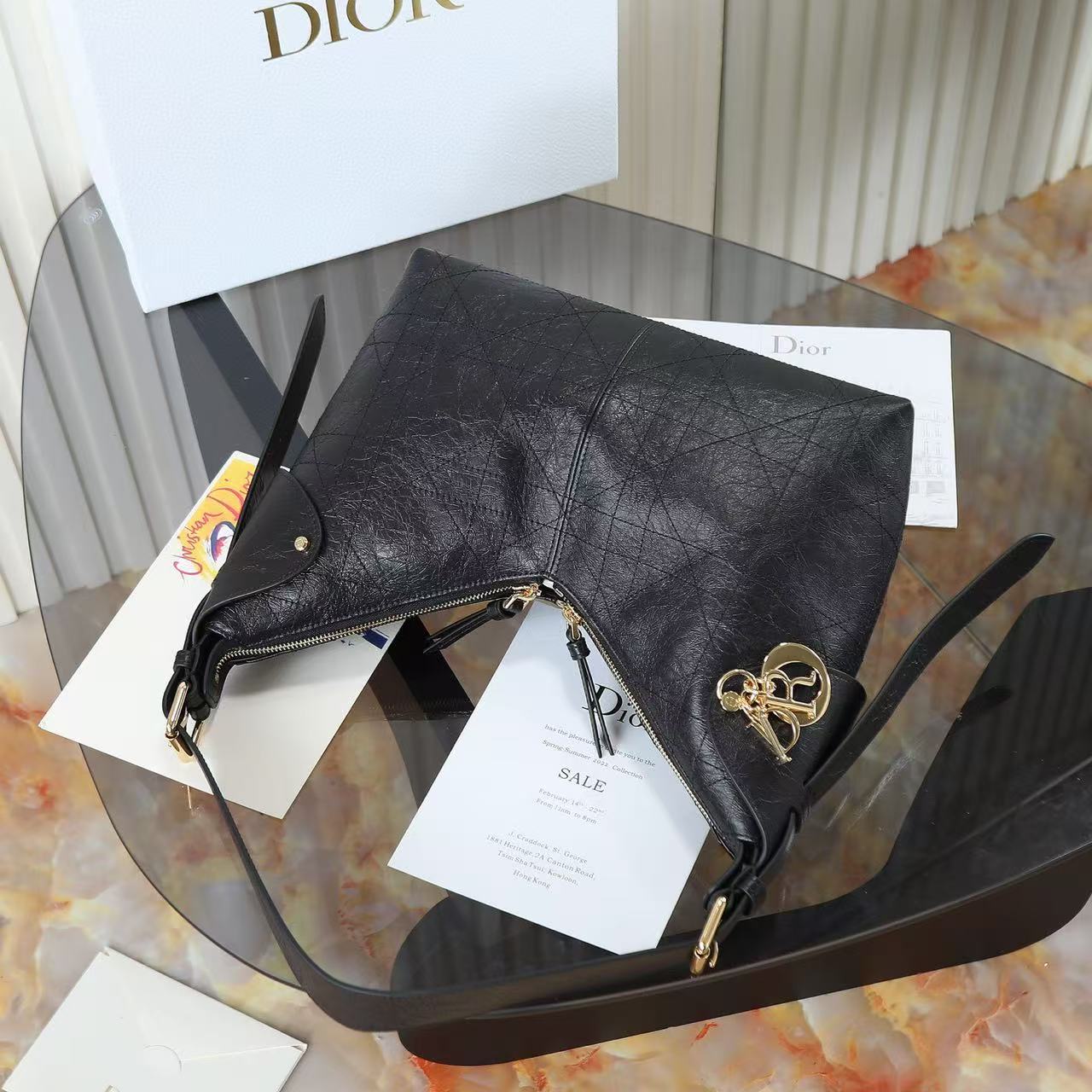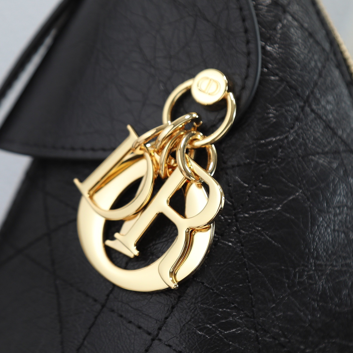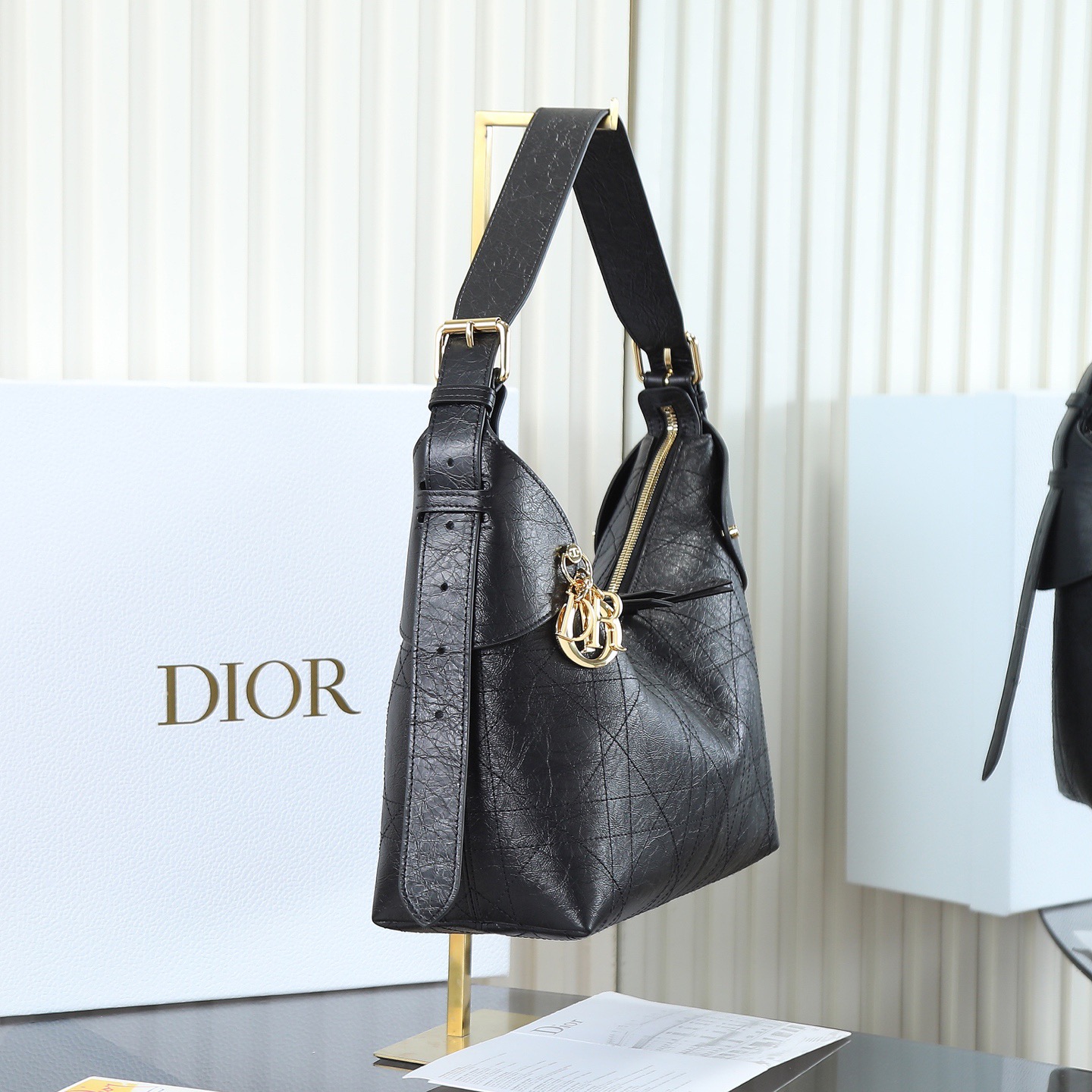DIOR Voyage 26S retro gold finish metal pleated design single-shoulder bag medium-sized women\'s black