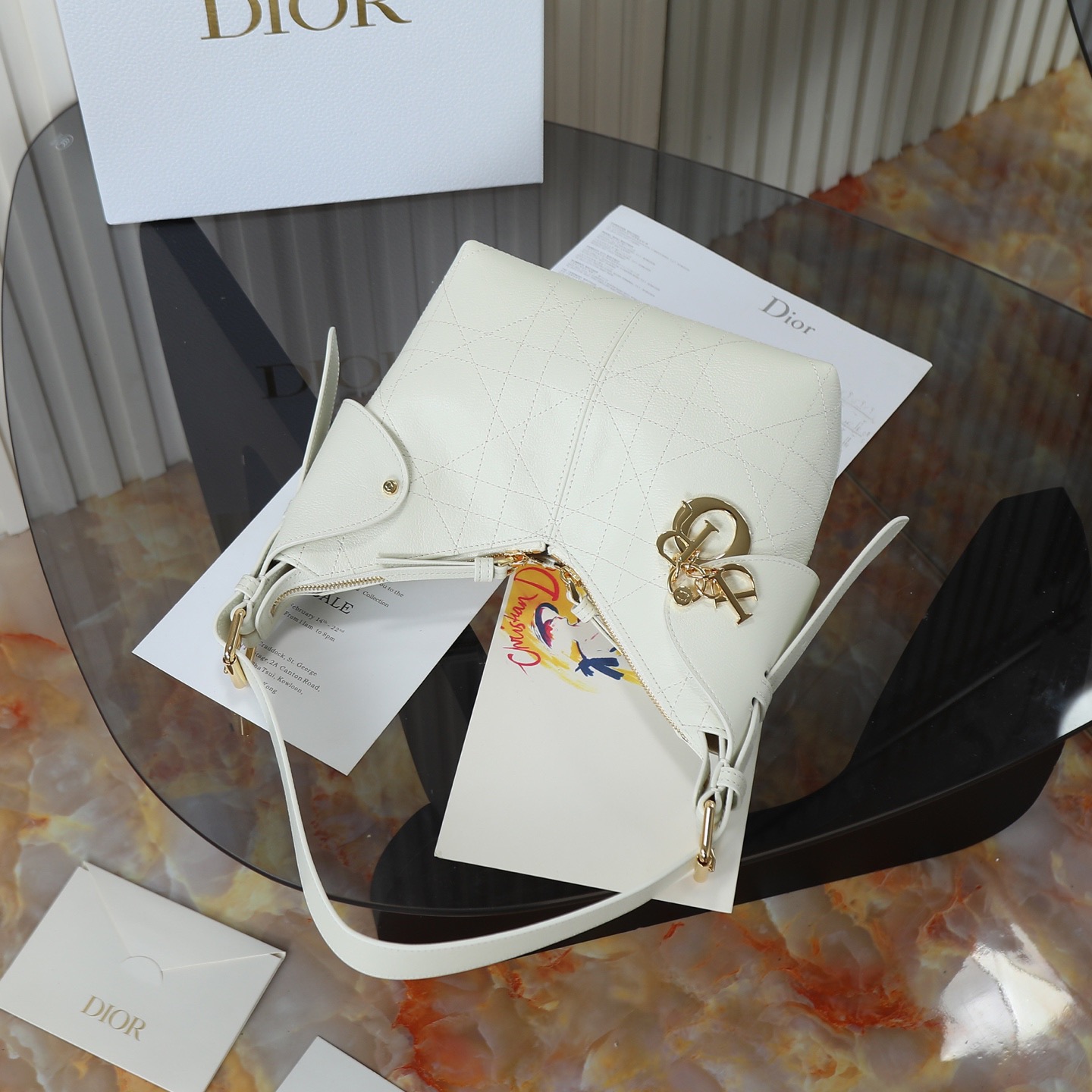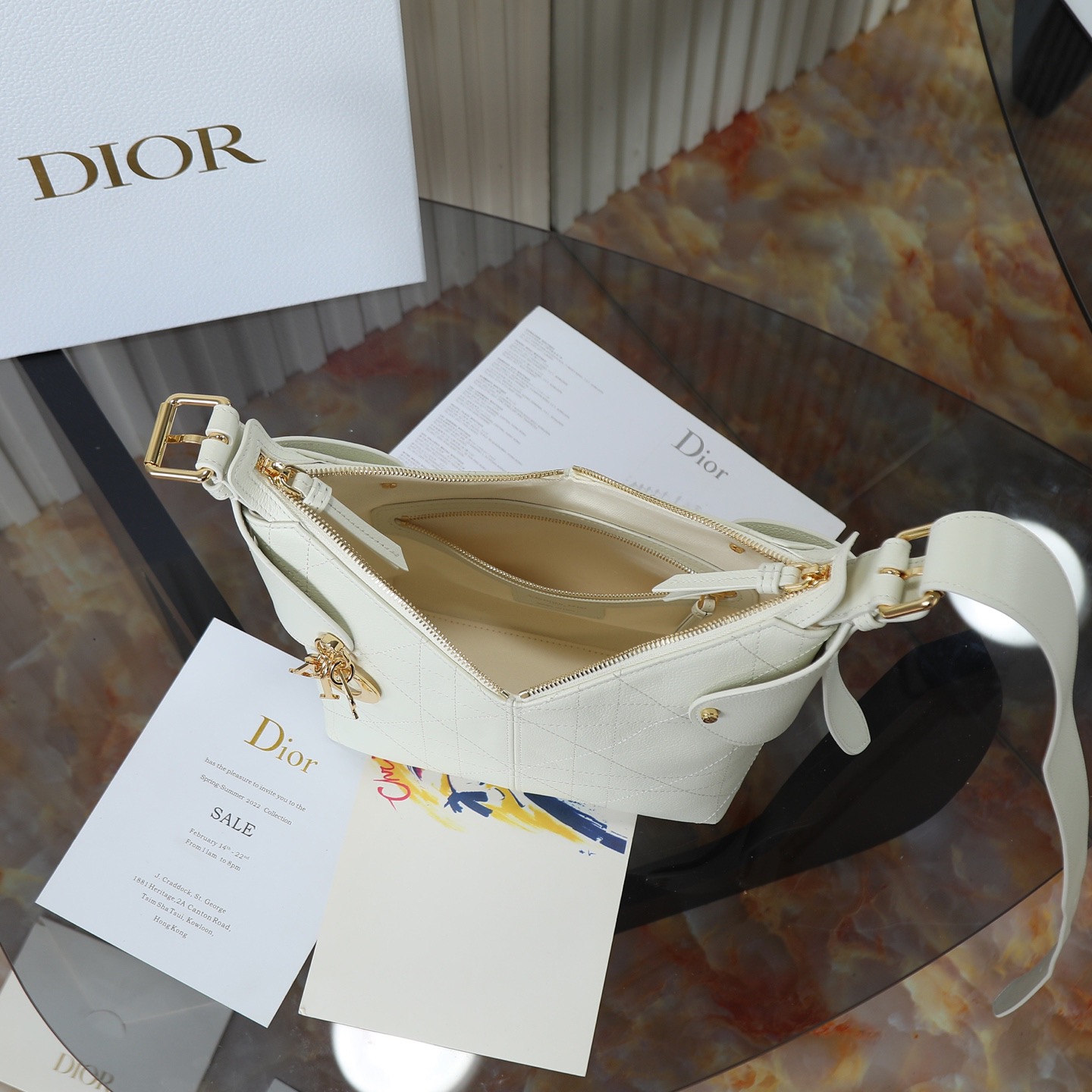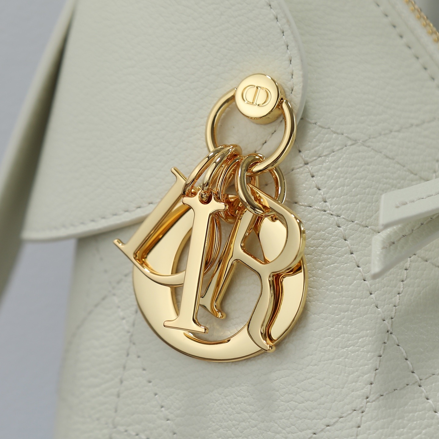DIOR Voyage retro golden finish metal pendant single-shoulder bag, small size for women, cream white