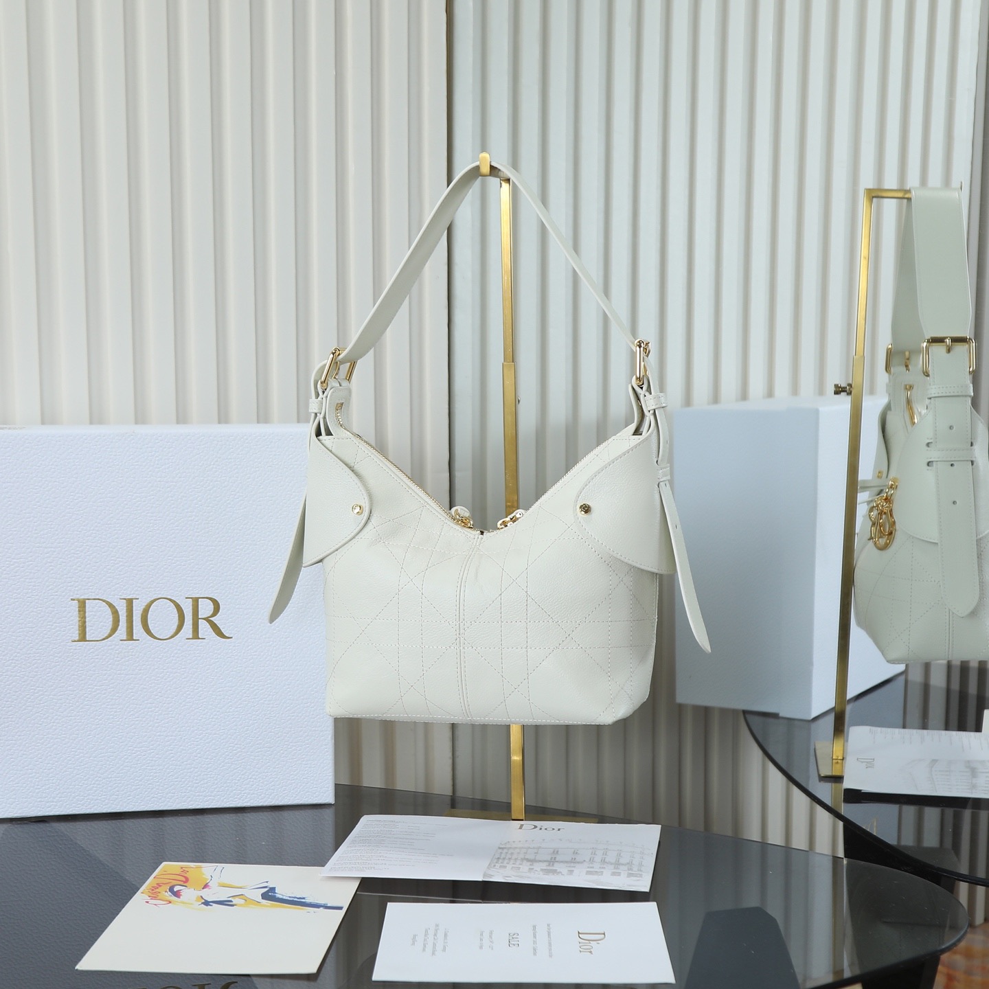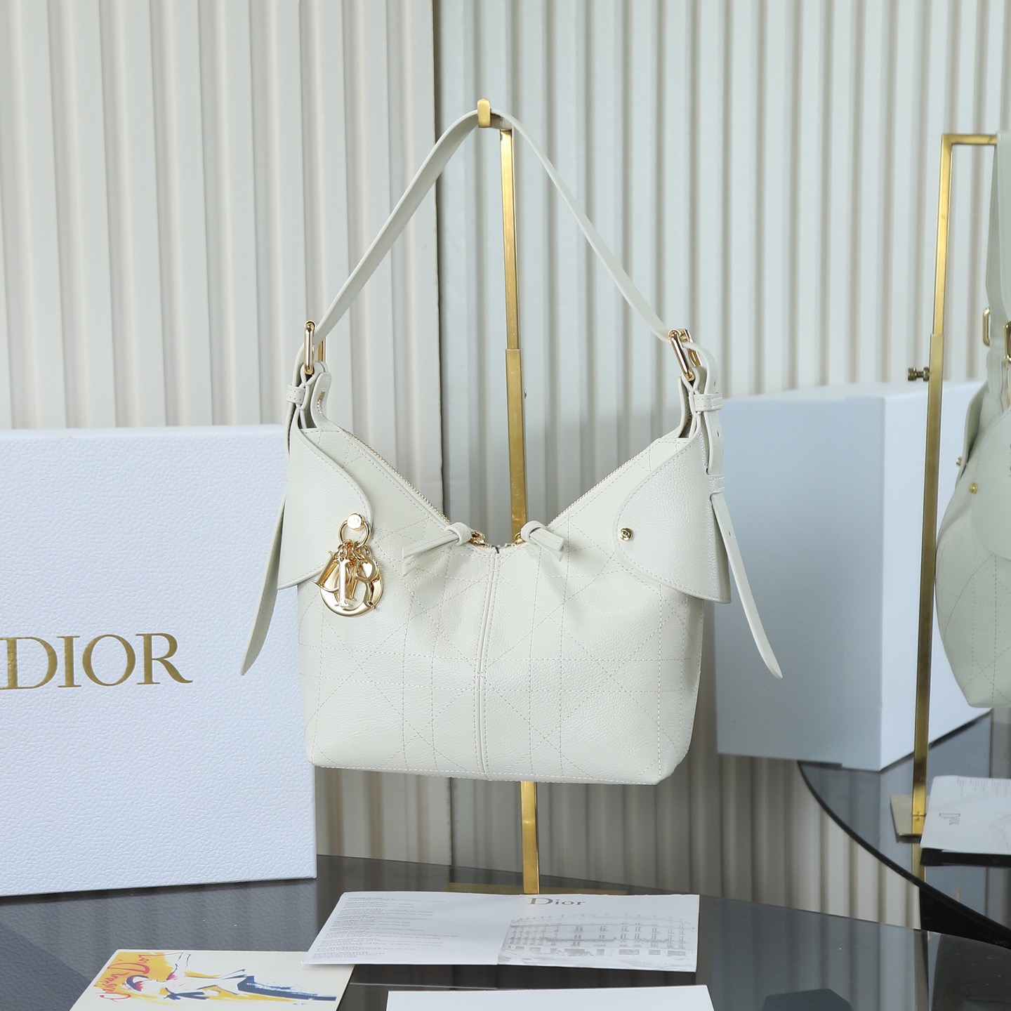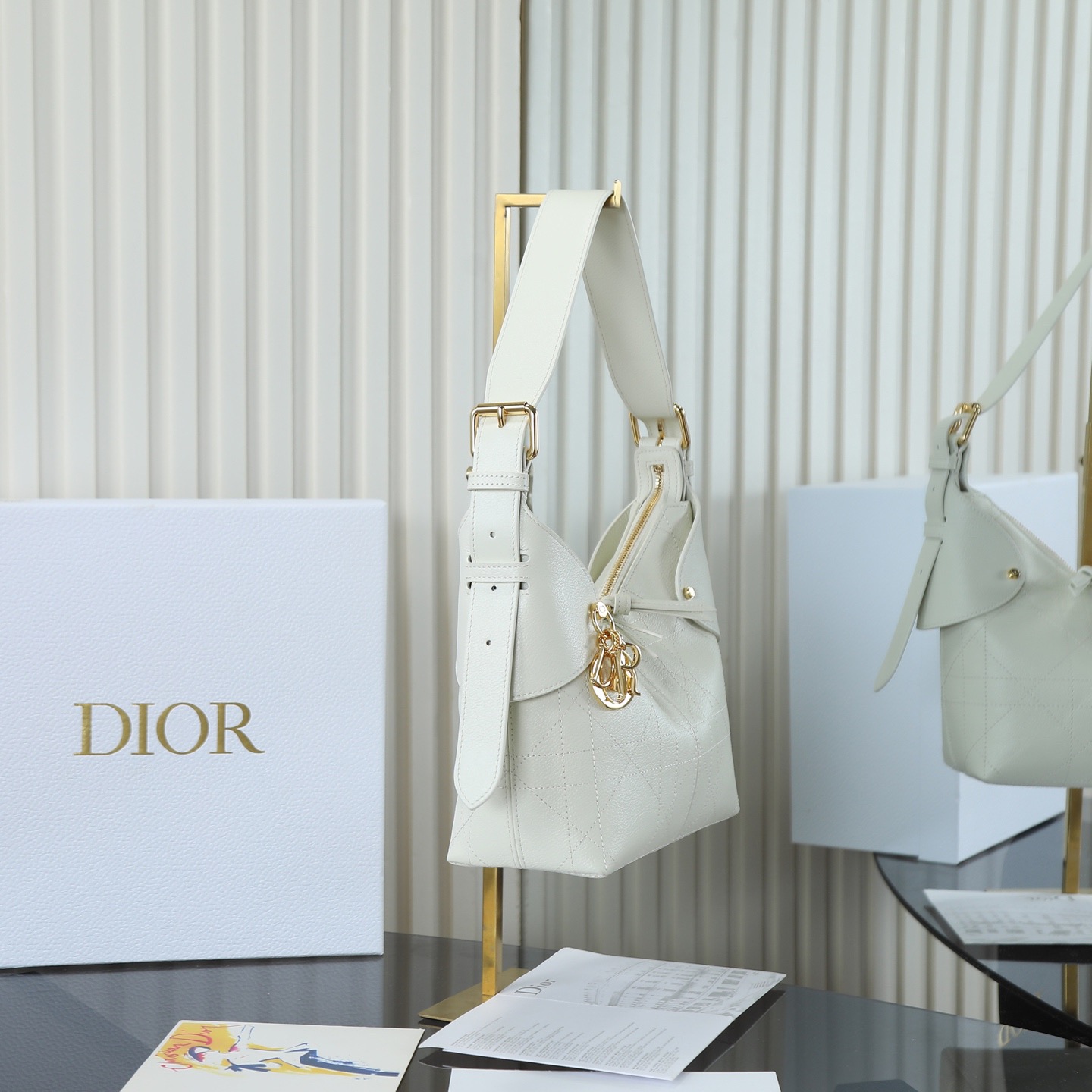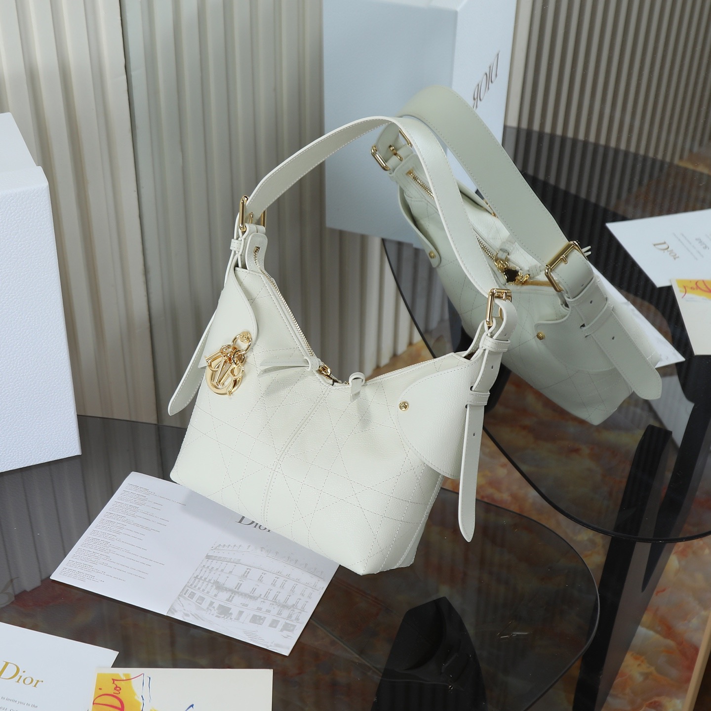 DIOR Voyage retro golden finish metal pendant single-shoulder bag, small size for women, cream white
