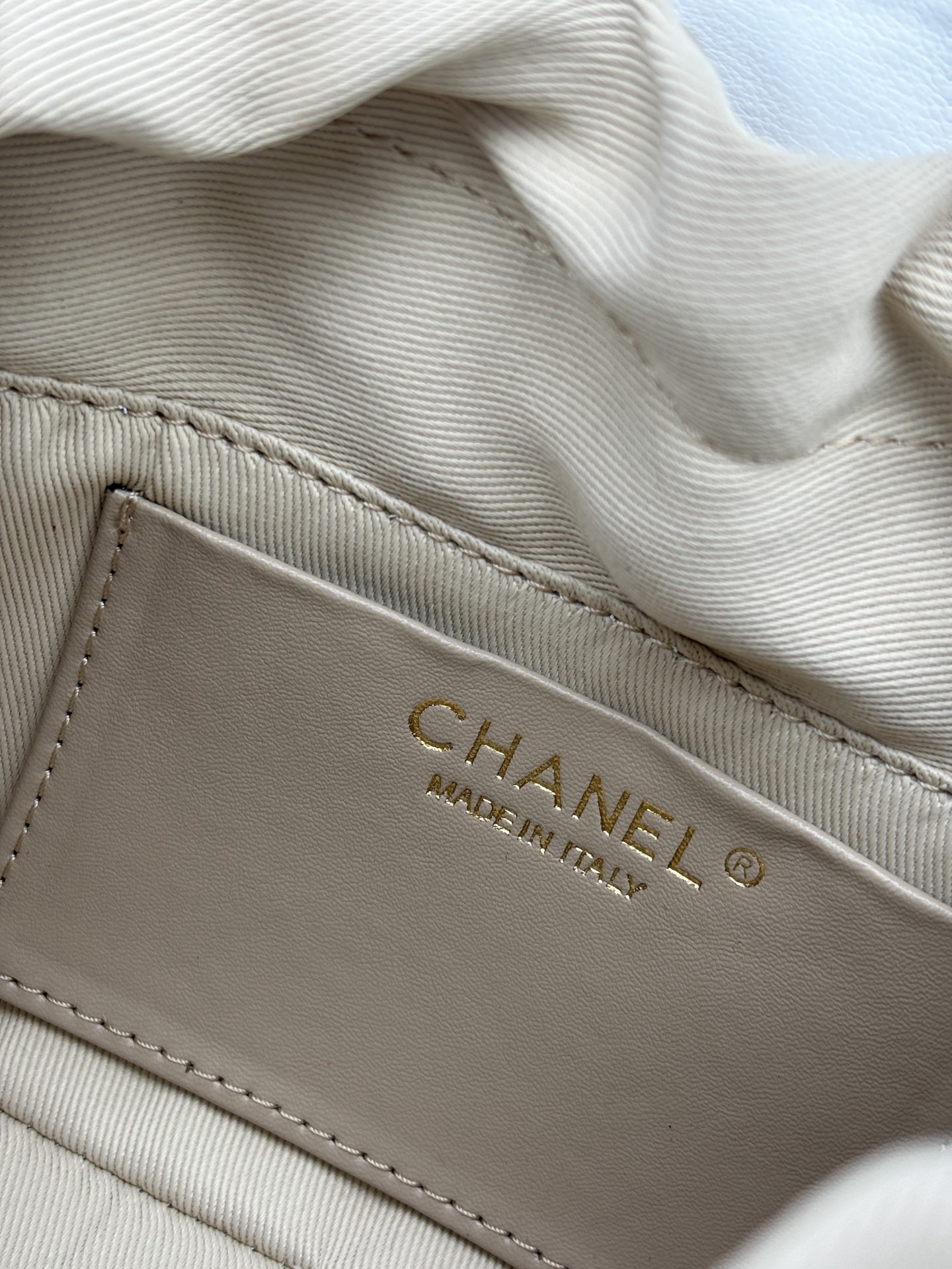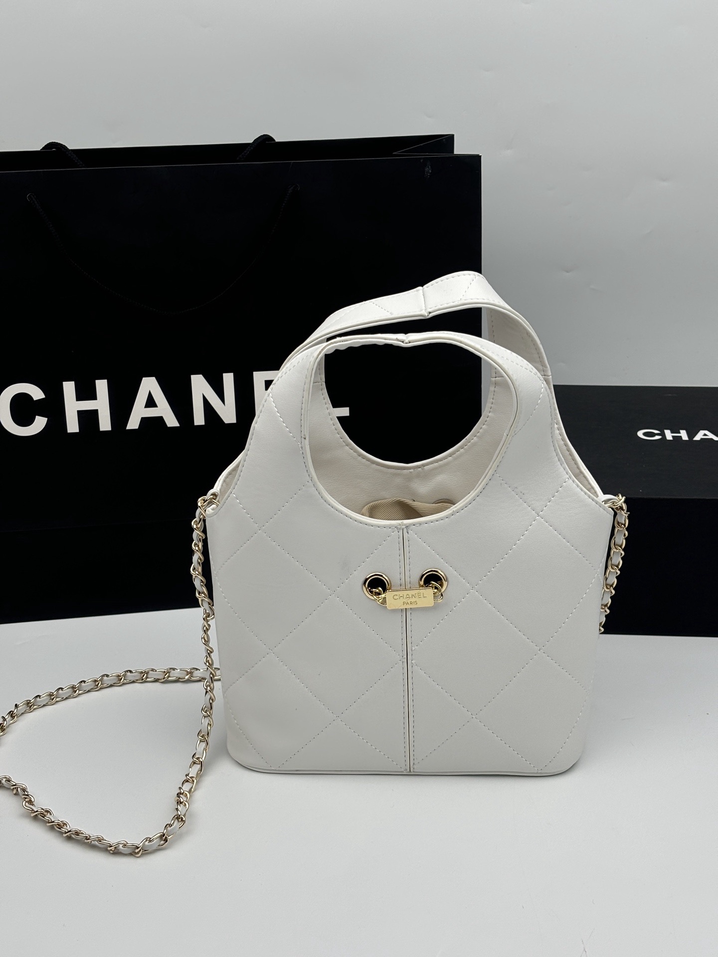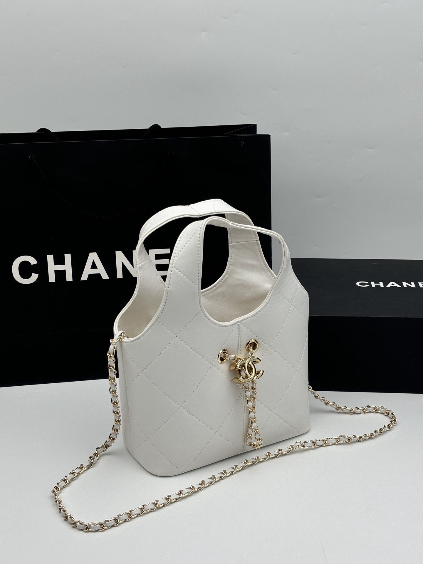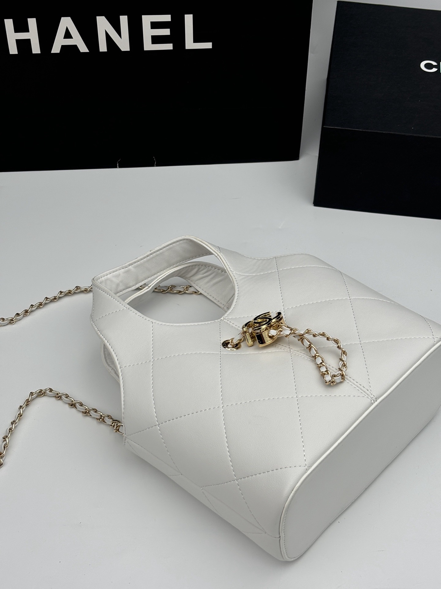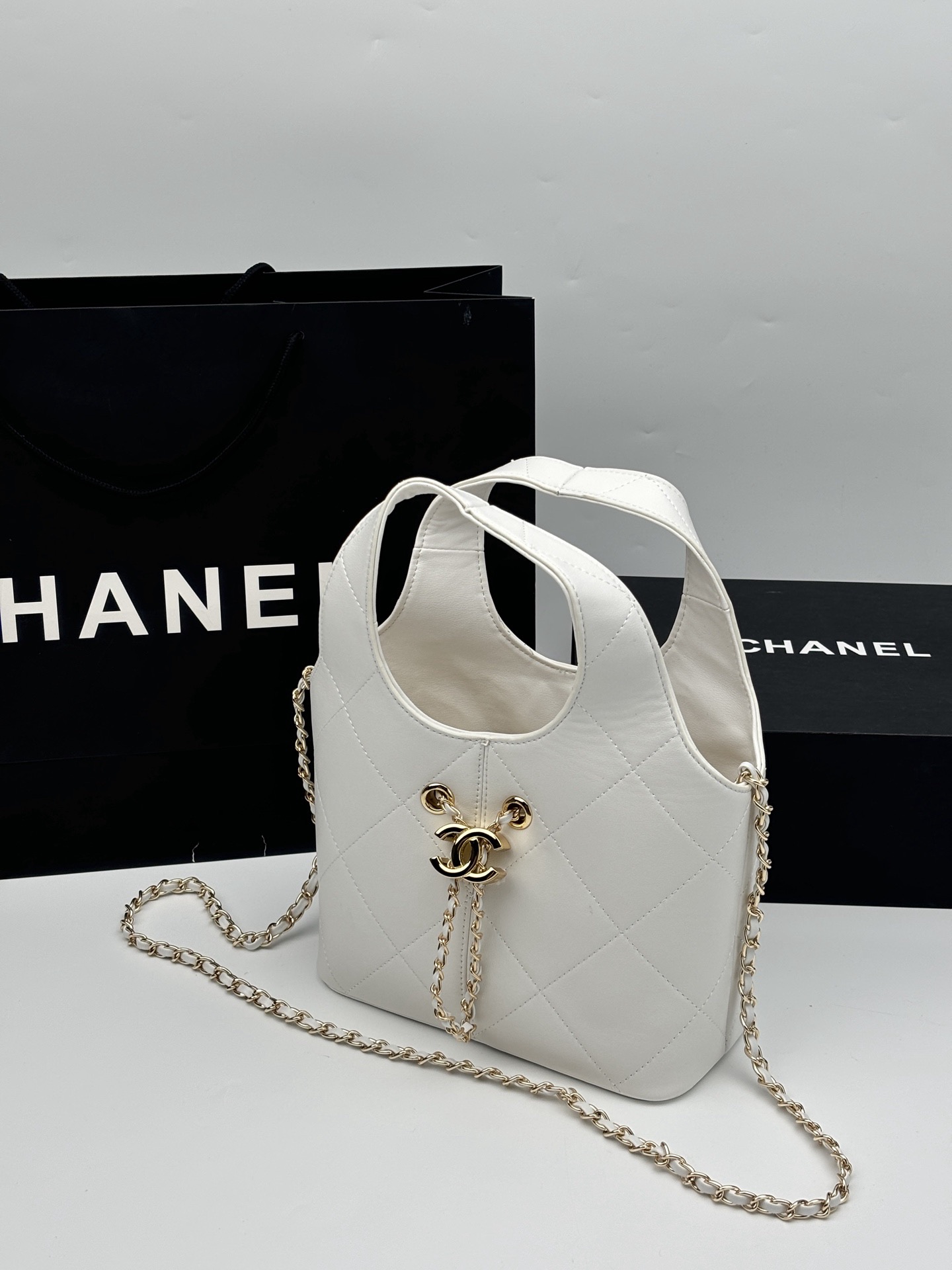 CHANEL 26P Double C Logo leather chain diamond pattern design calfskin with gold metal handbag, small size for women, white