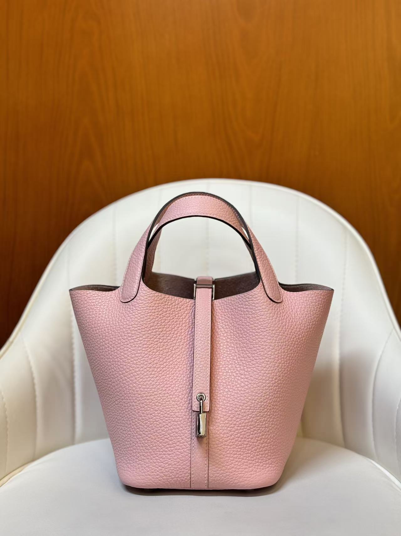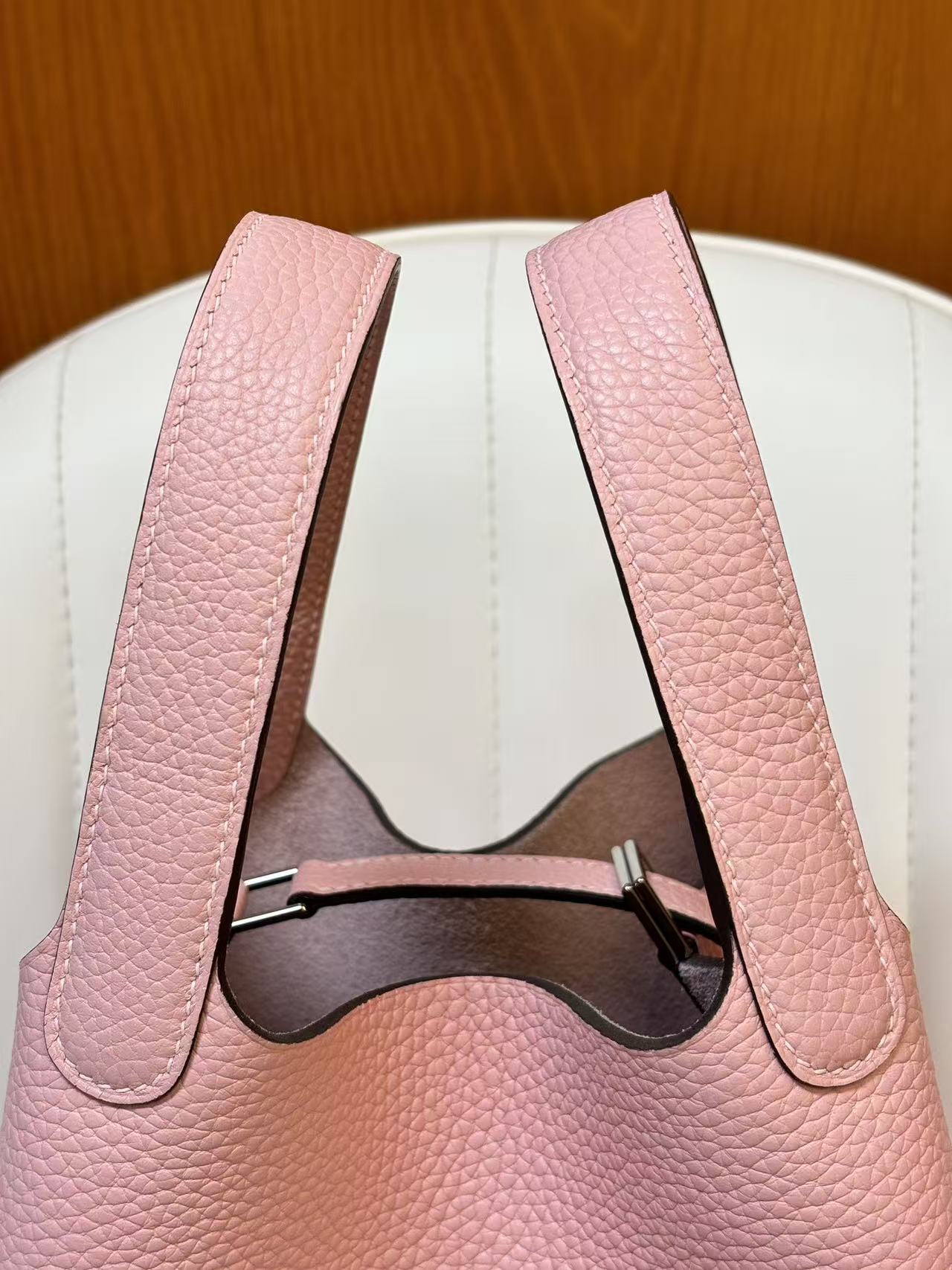 HERMES Picotin Lock 18 Silver Buckle Basket Bucket Bag Handbag 18 Women\'s 3Q RoseSakura Pink