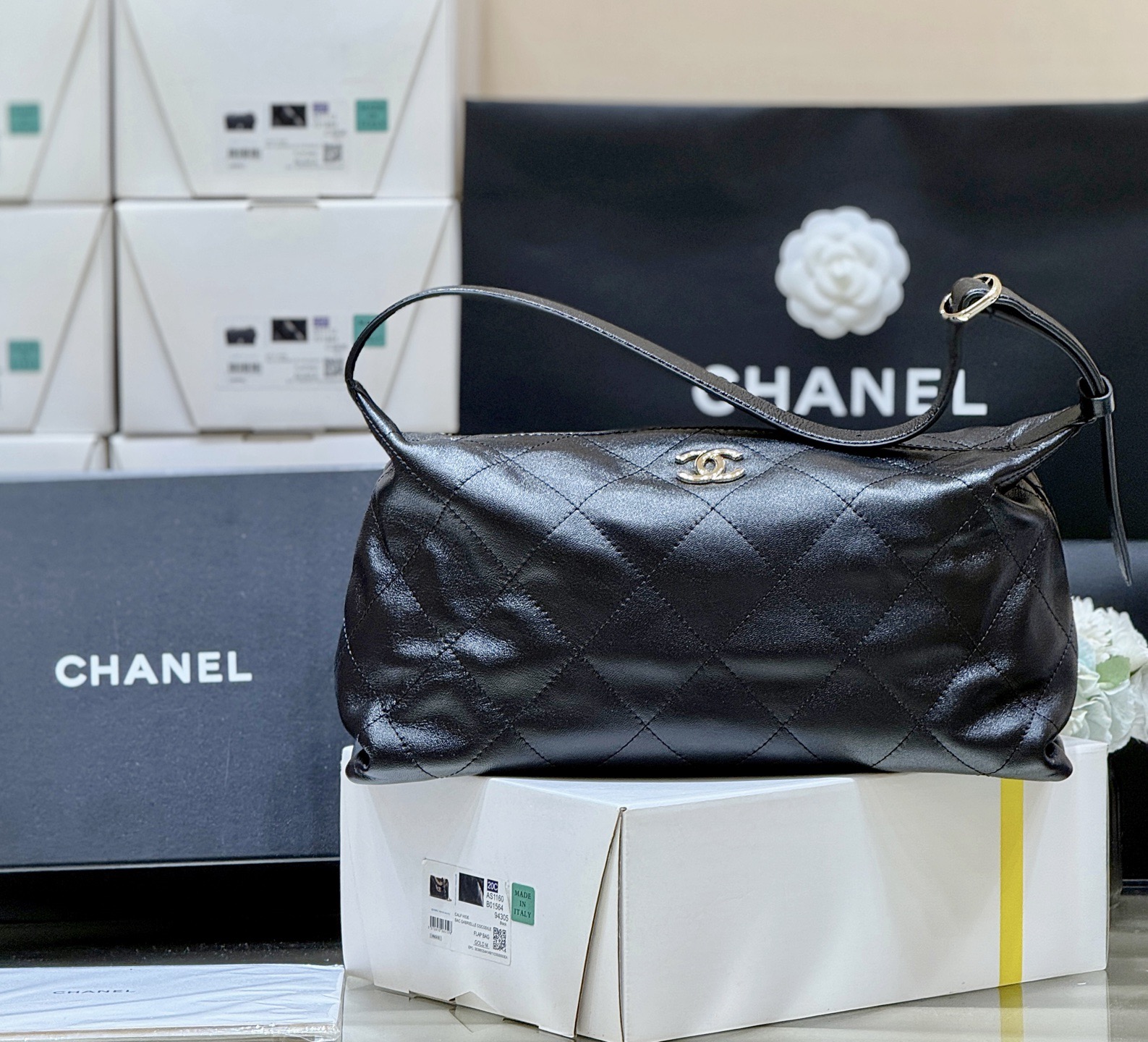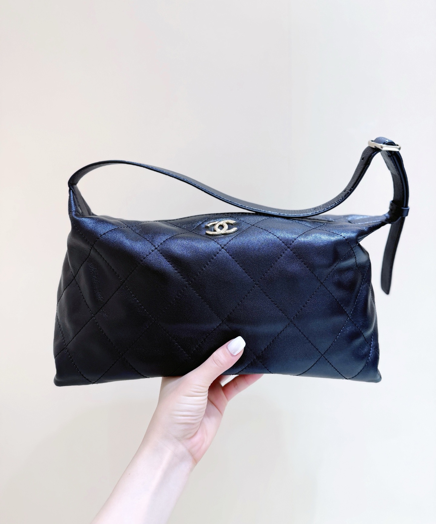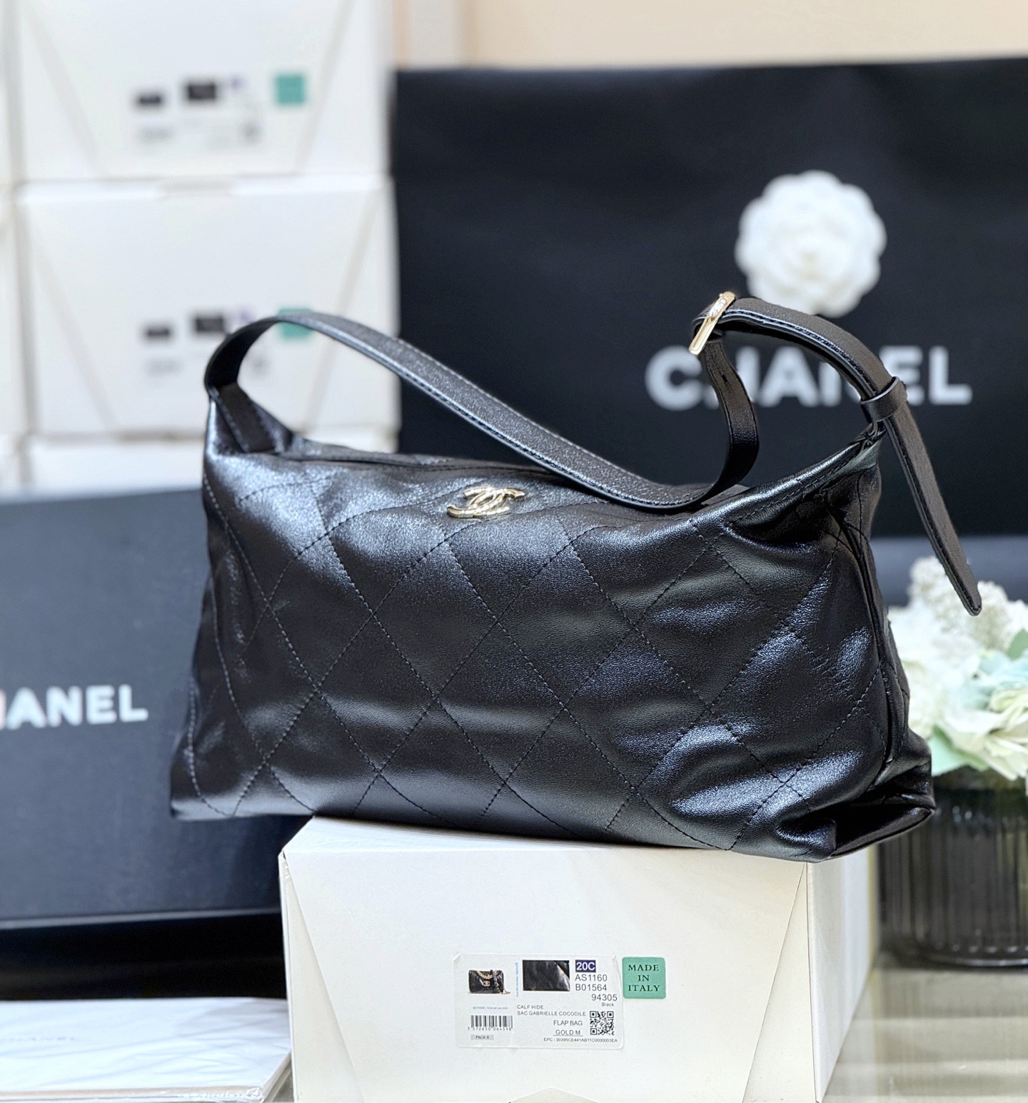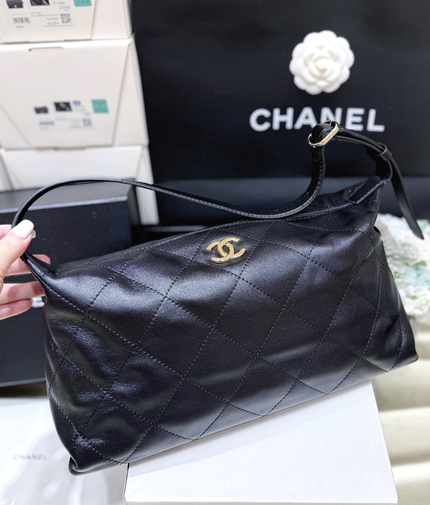 CHANEL 26P Double C LOGO diamond-shaped Hobo bag, single-shoulder bag, oversized for women, black