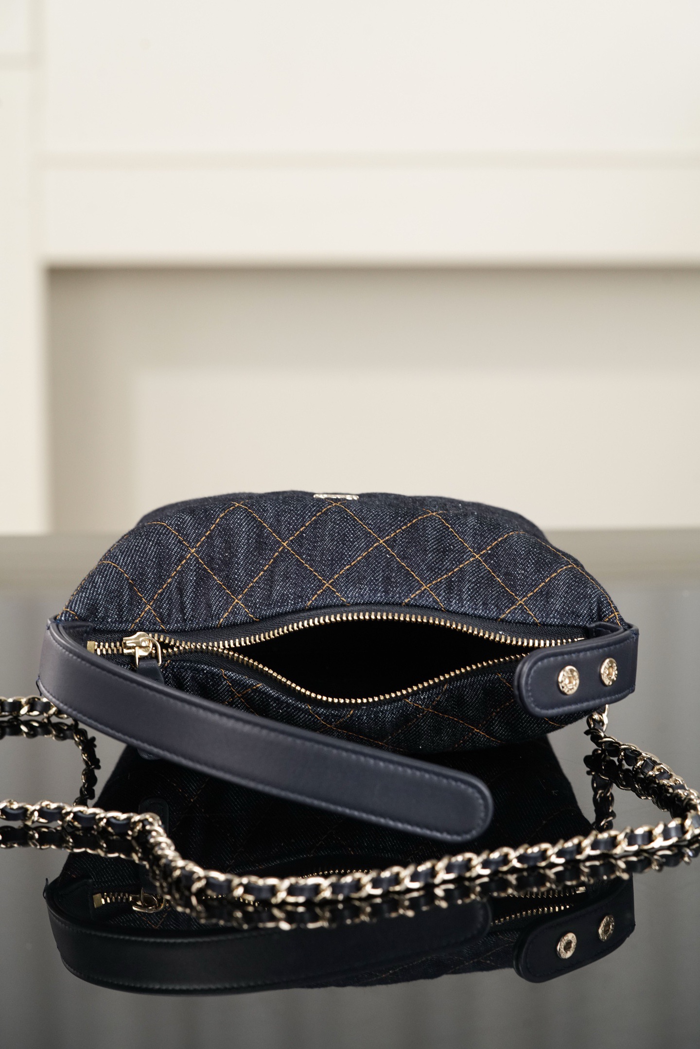 CHANEL 26P gold label Double C Logo diamond-shaped single-shoulder handbag for women, deep blue with orange