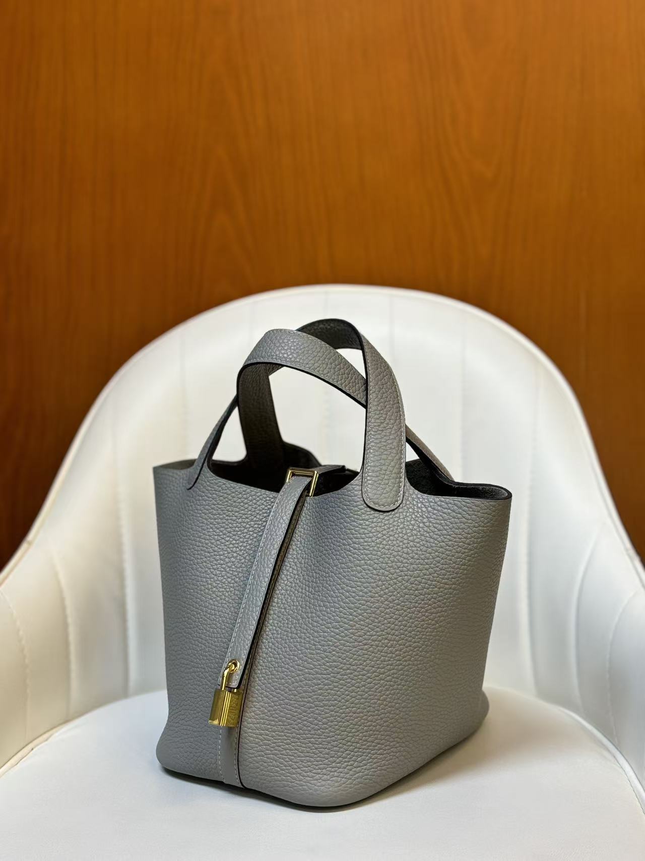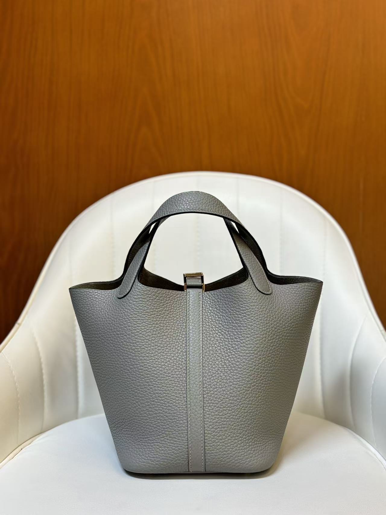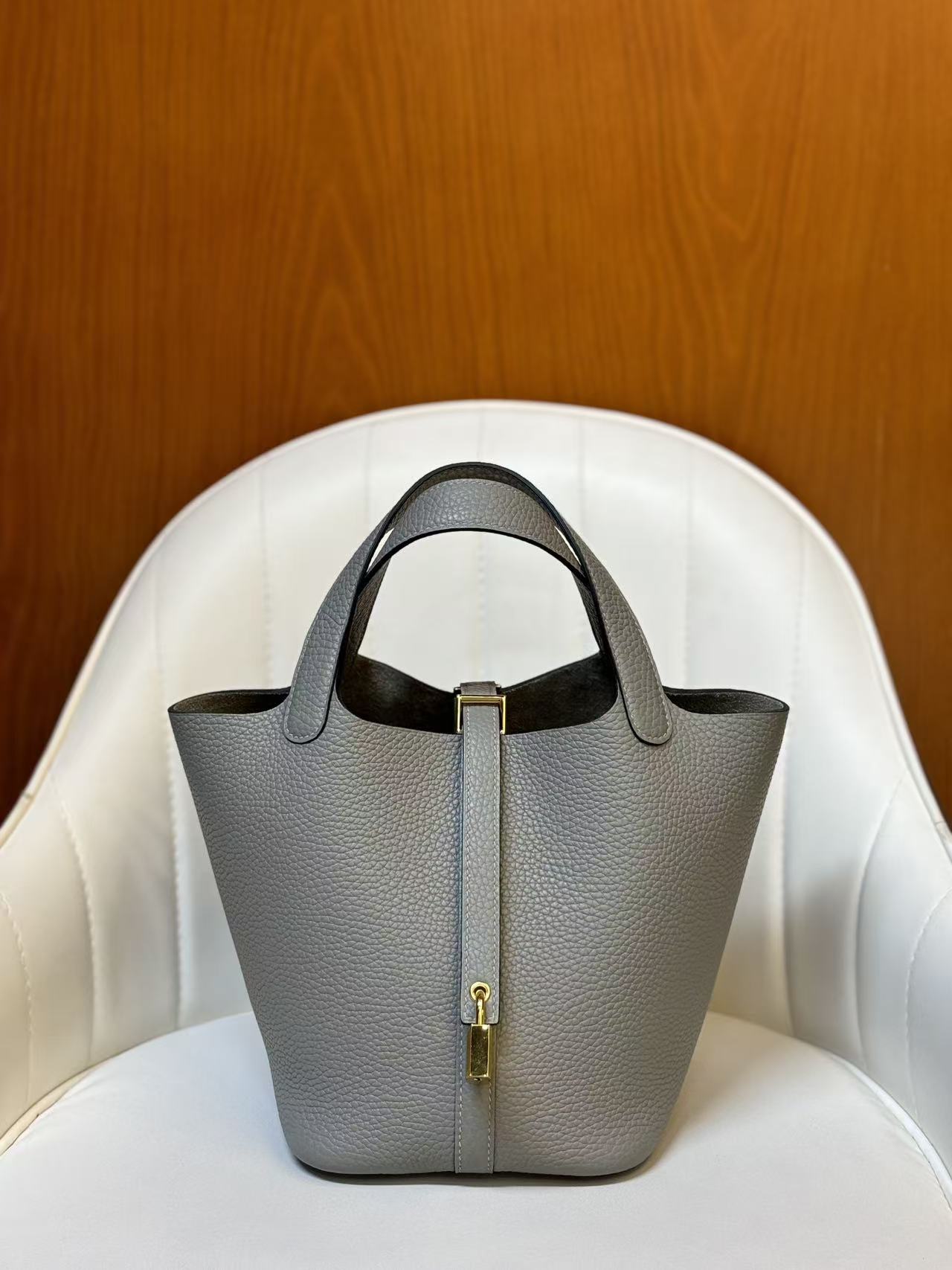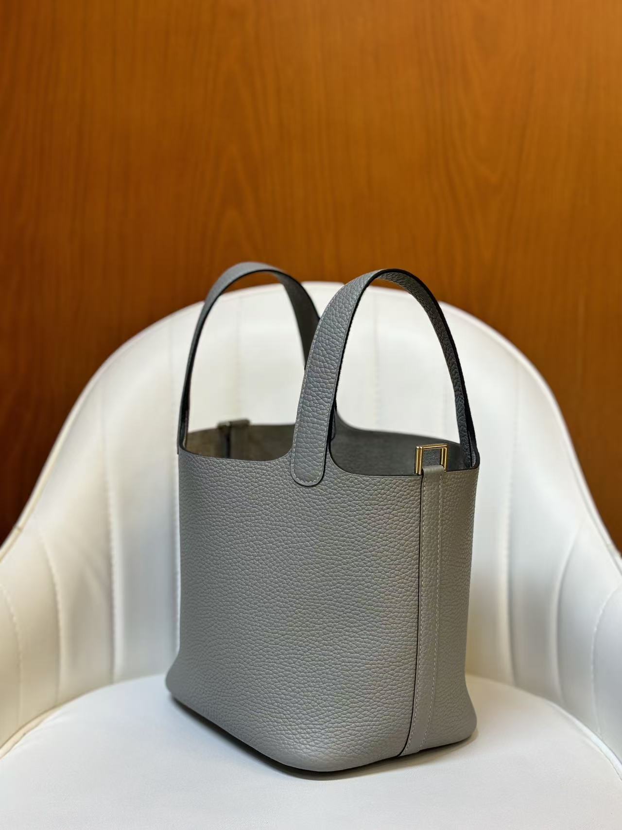 HERMES Picotin Lock 18 Gold Buckle Basket Bucket Bag Handbag 18 Women P0 Gris Pantin Puppet Grey