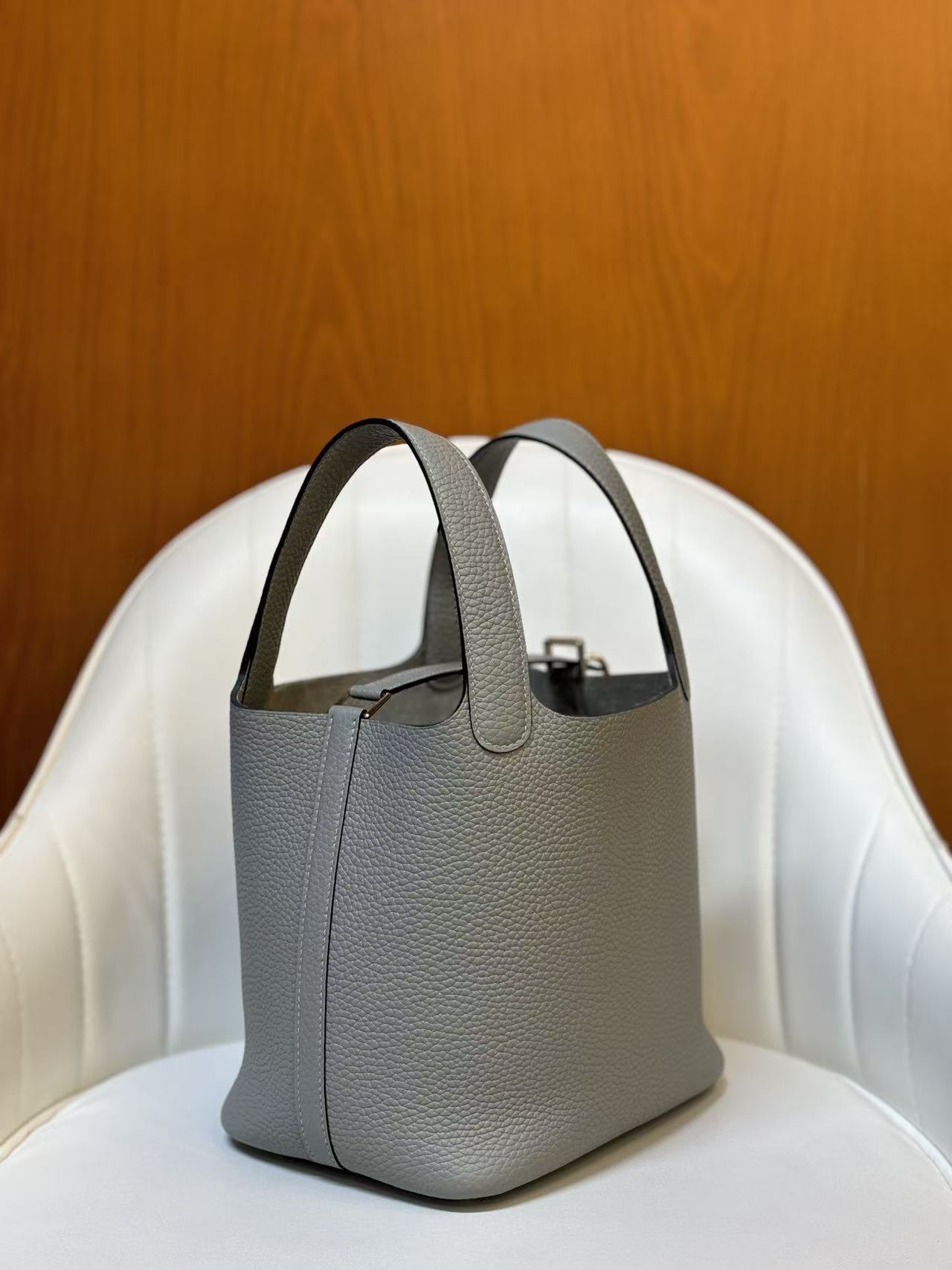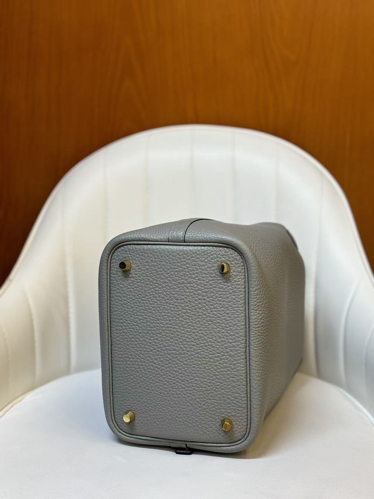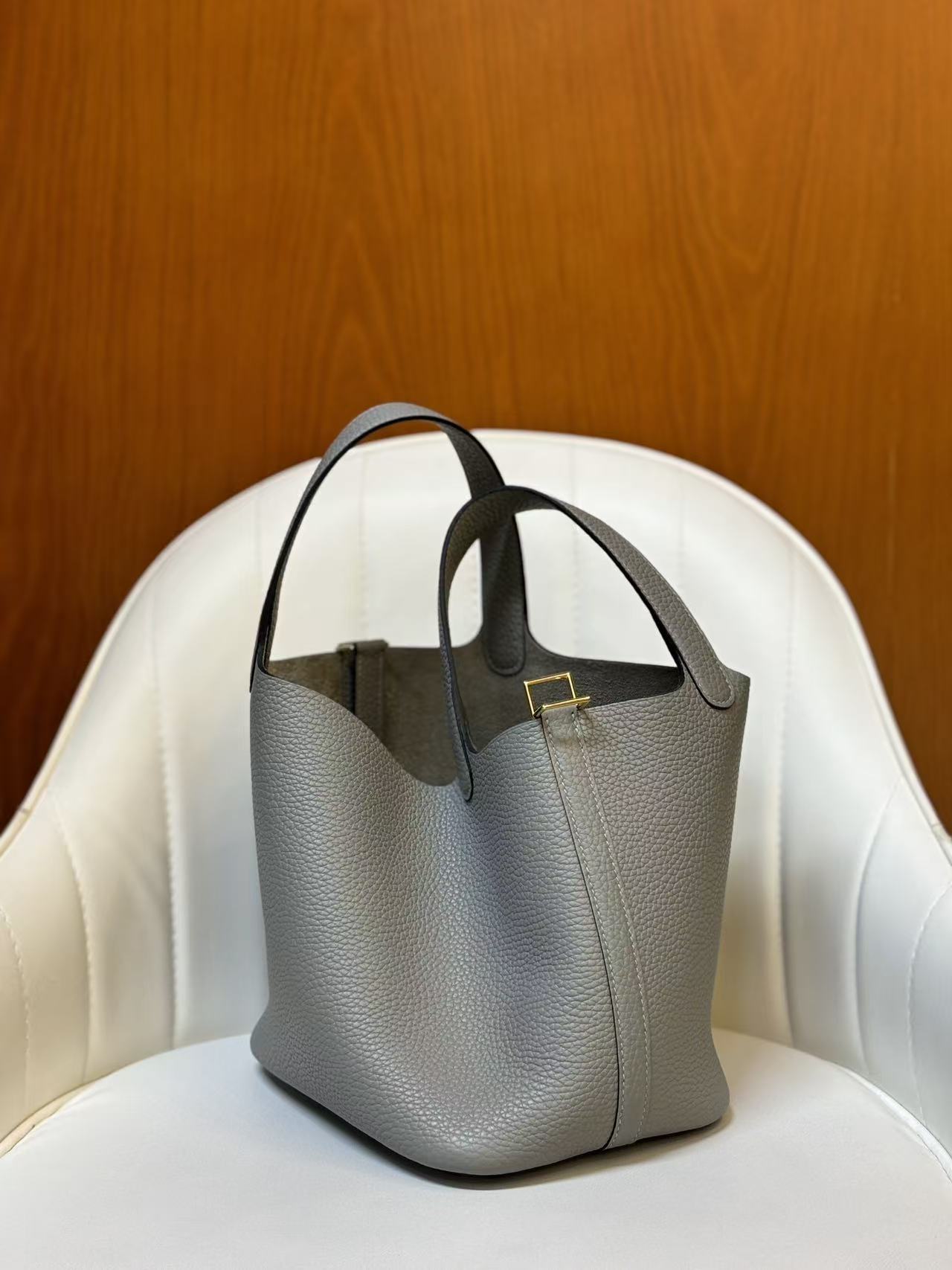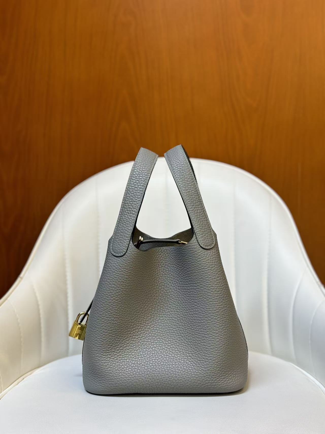 HERMES Picotin Lock 18 Gold Buckle Basket Bucket Bag Handbag 18 Women P0 Gris Pantin Puppet Grey