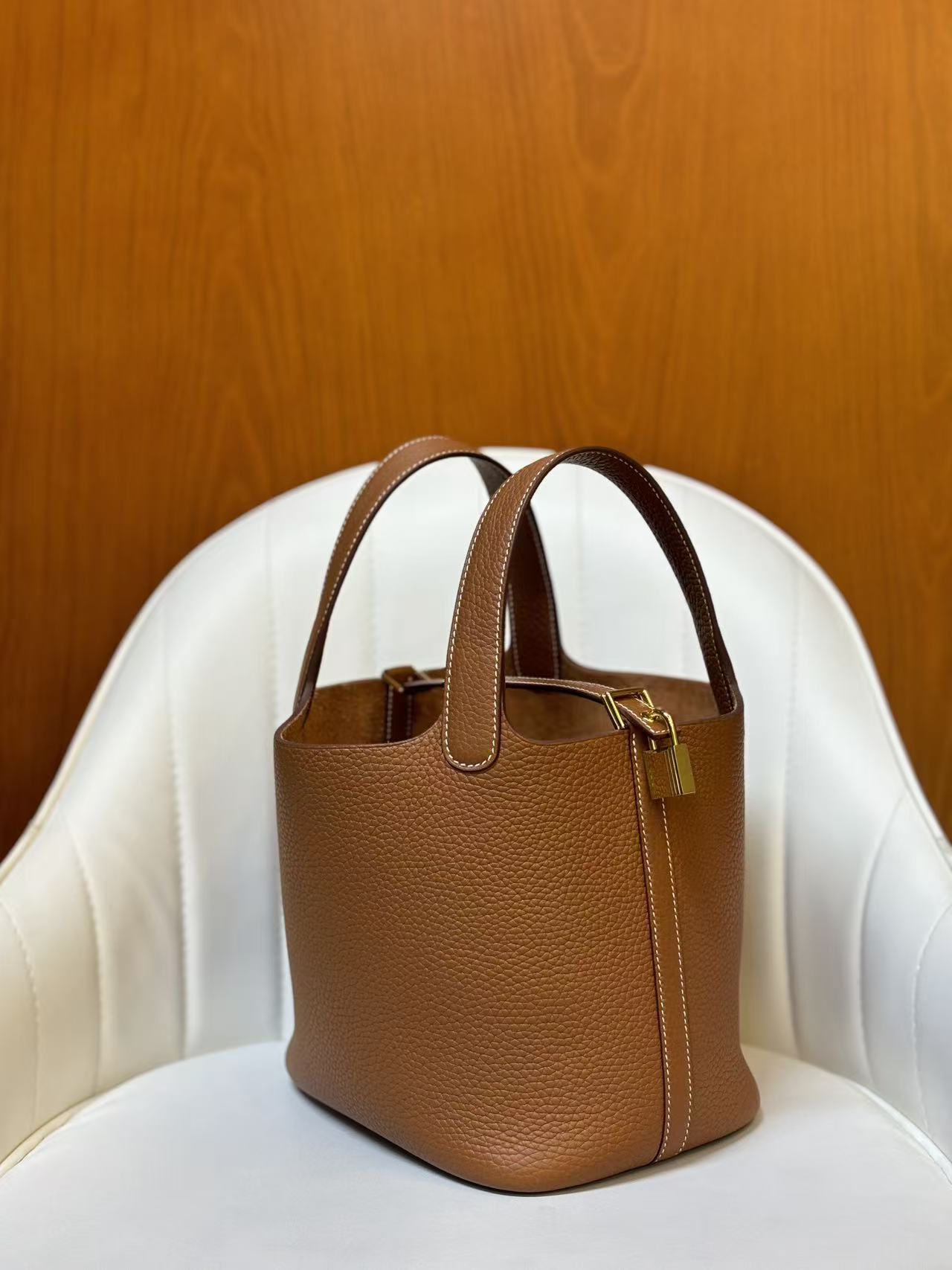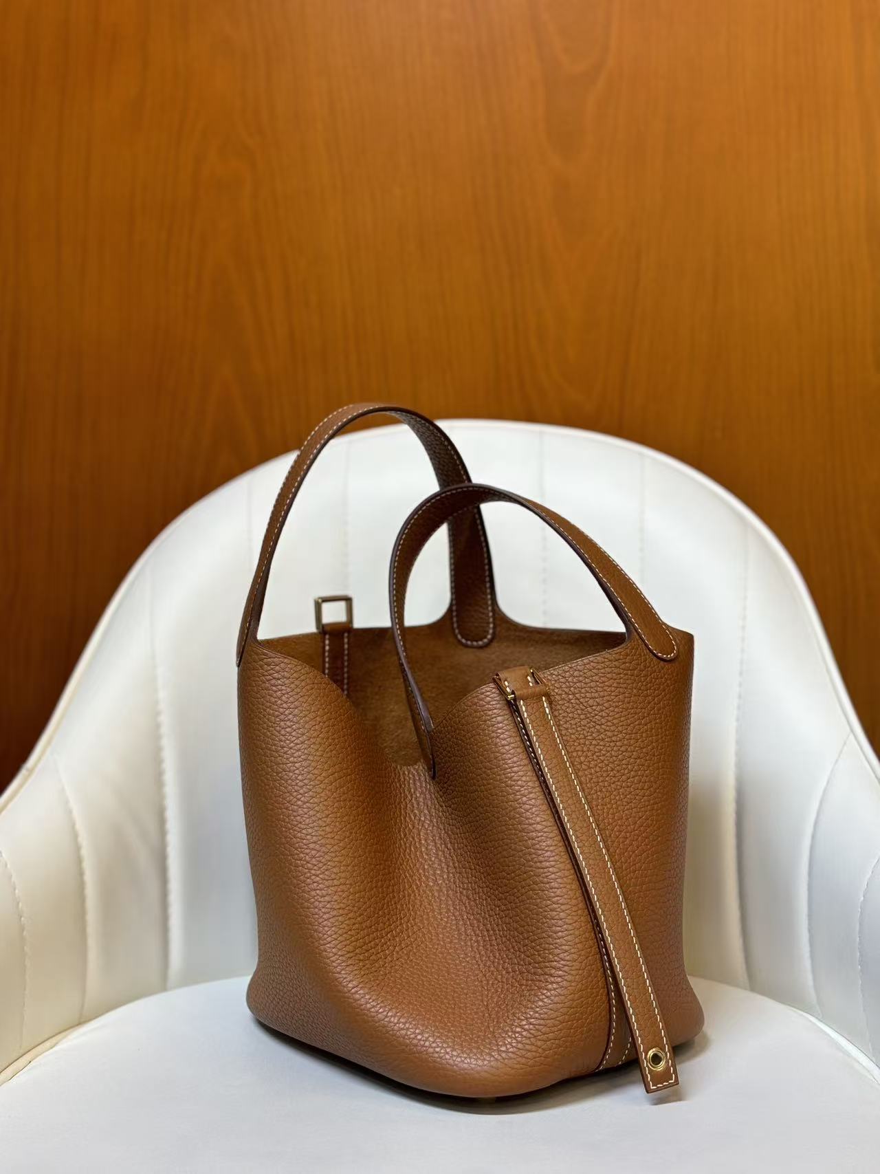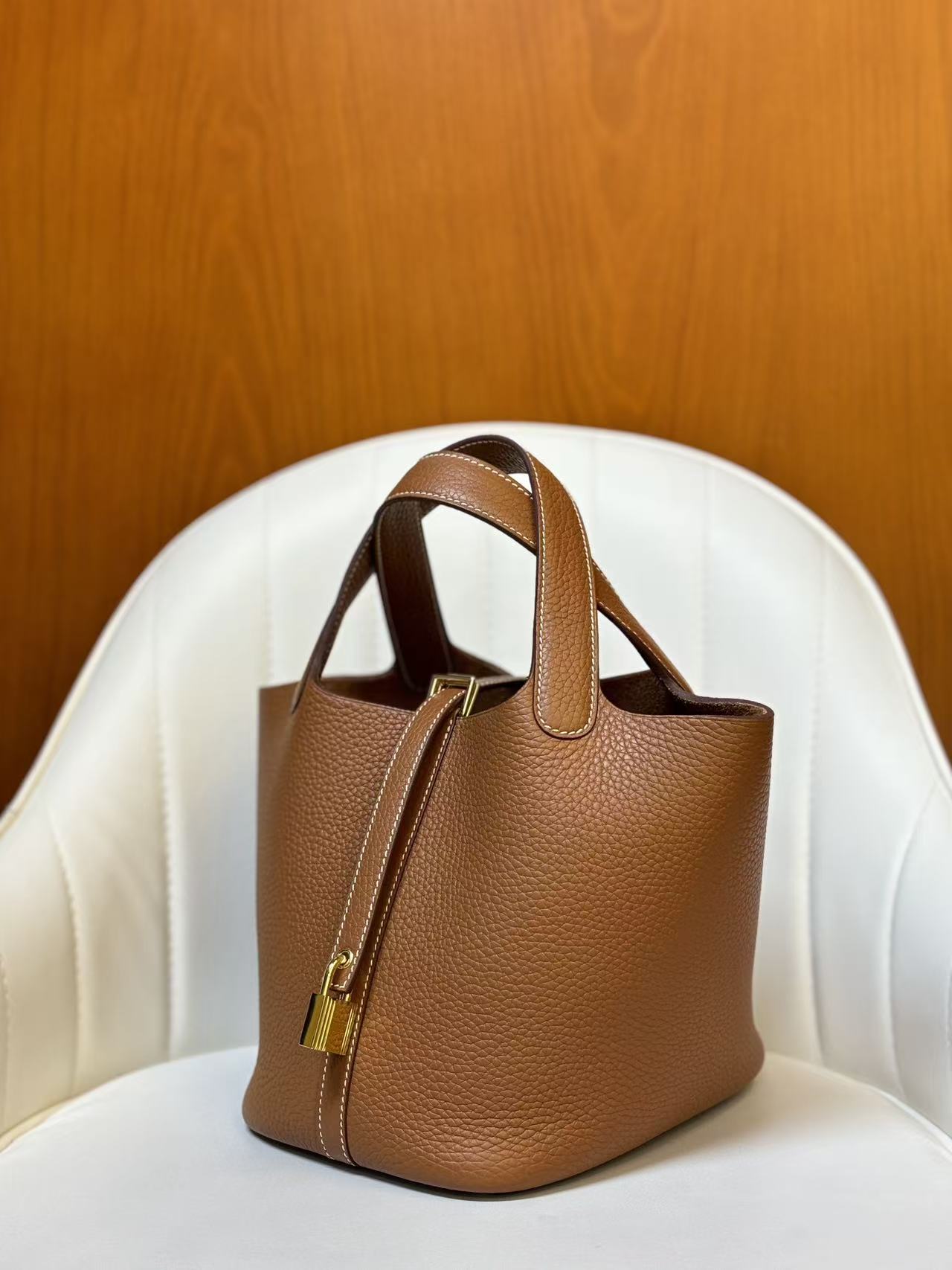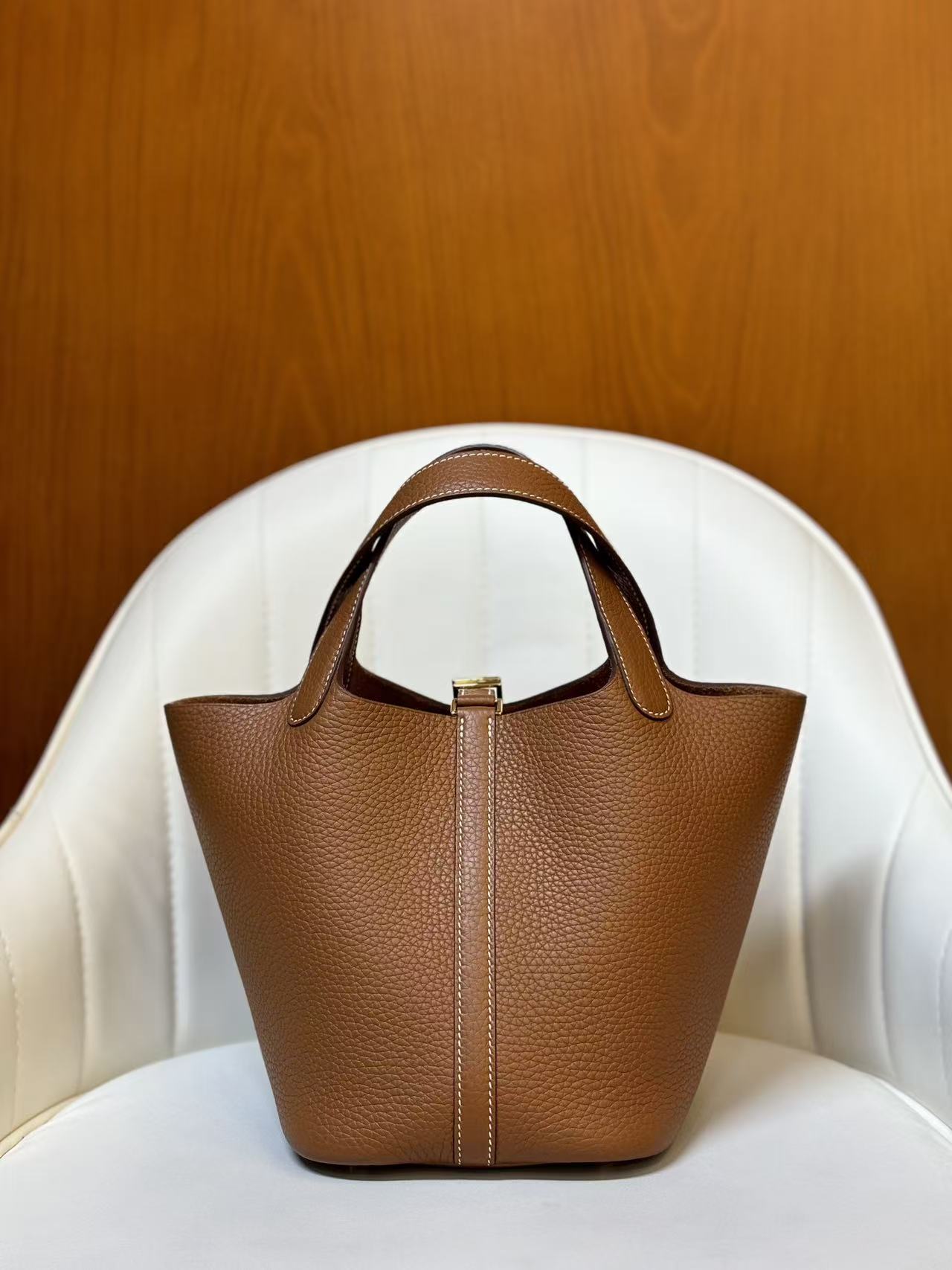 HERMES Picotin Lock 18 Gold buckle Basket Bucket Bag Handbag 18 Women\'s style 37 Gold Golden brown