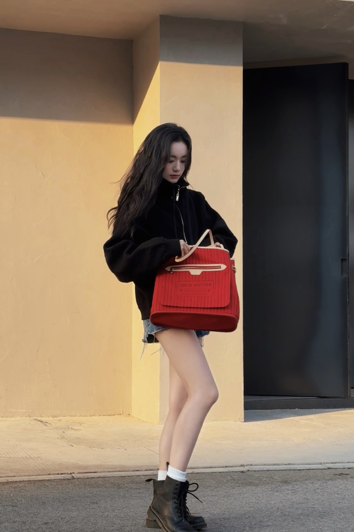 LOUIS VUITTON NEVERFULL INSIDE OUT MM Vertical striped Tote bag Tote bag Shopping bag Monogram shoulder handbag Medium size red