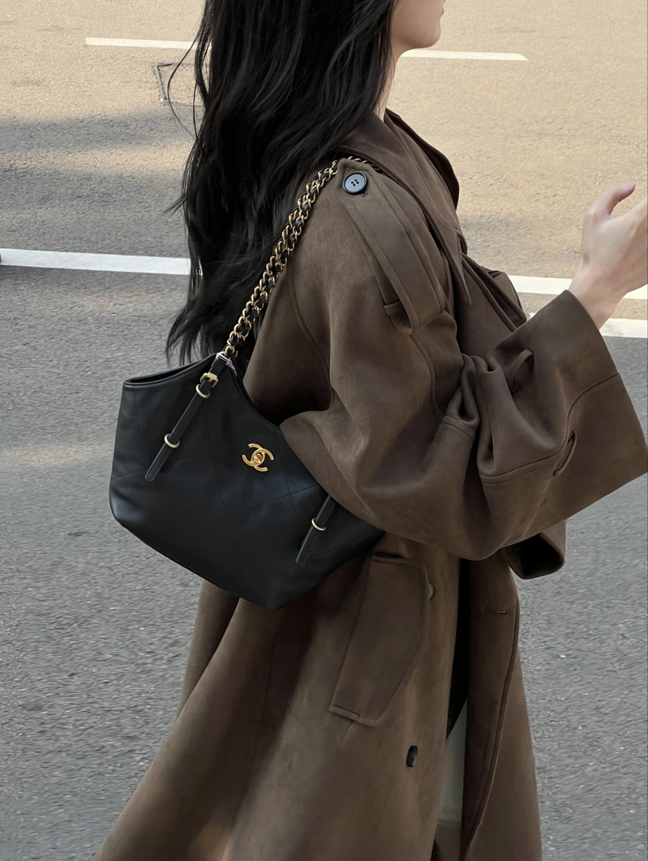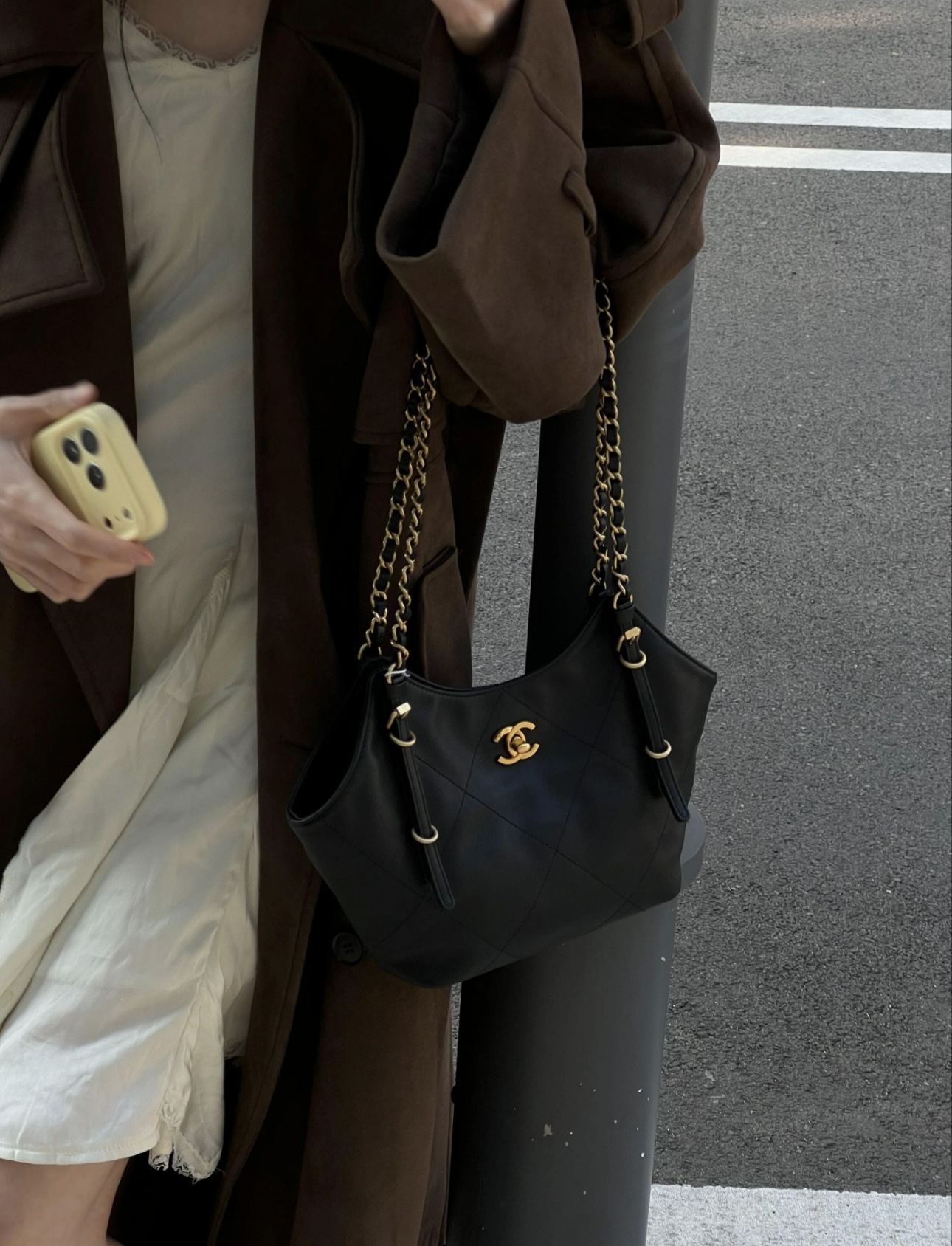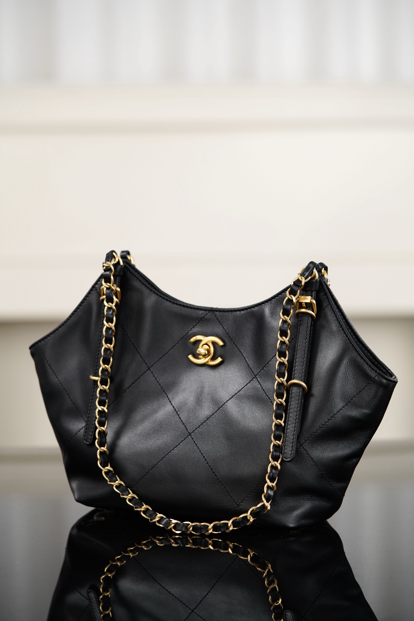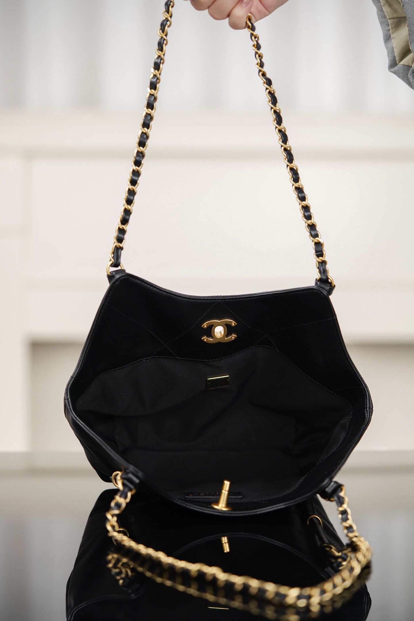 CHANEL 26C gold label Double C Logo diamond-quilted leather chain calf leather Tote bag, Tote bag, shopping bag, single-shoulder bag, small size for women, black