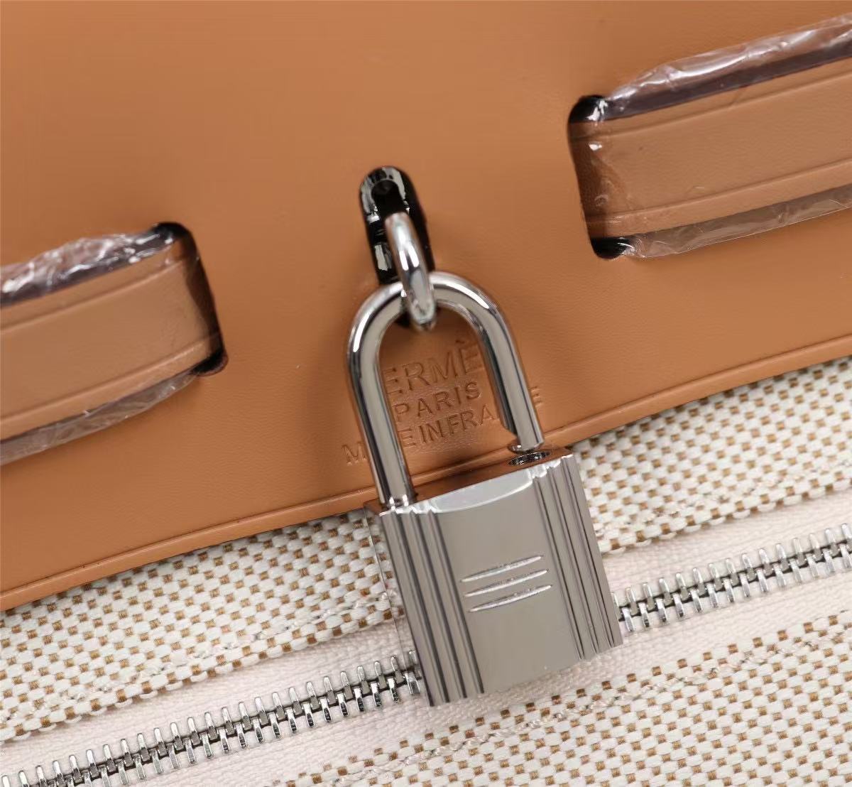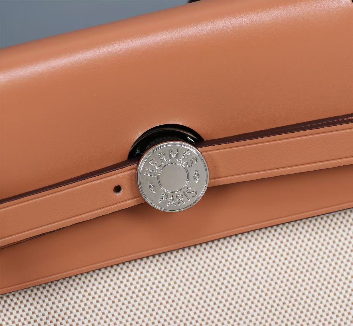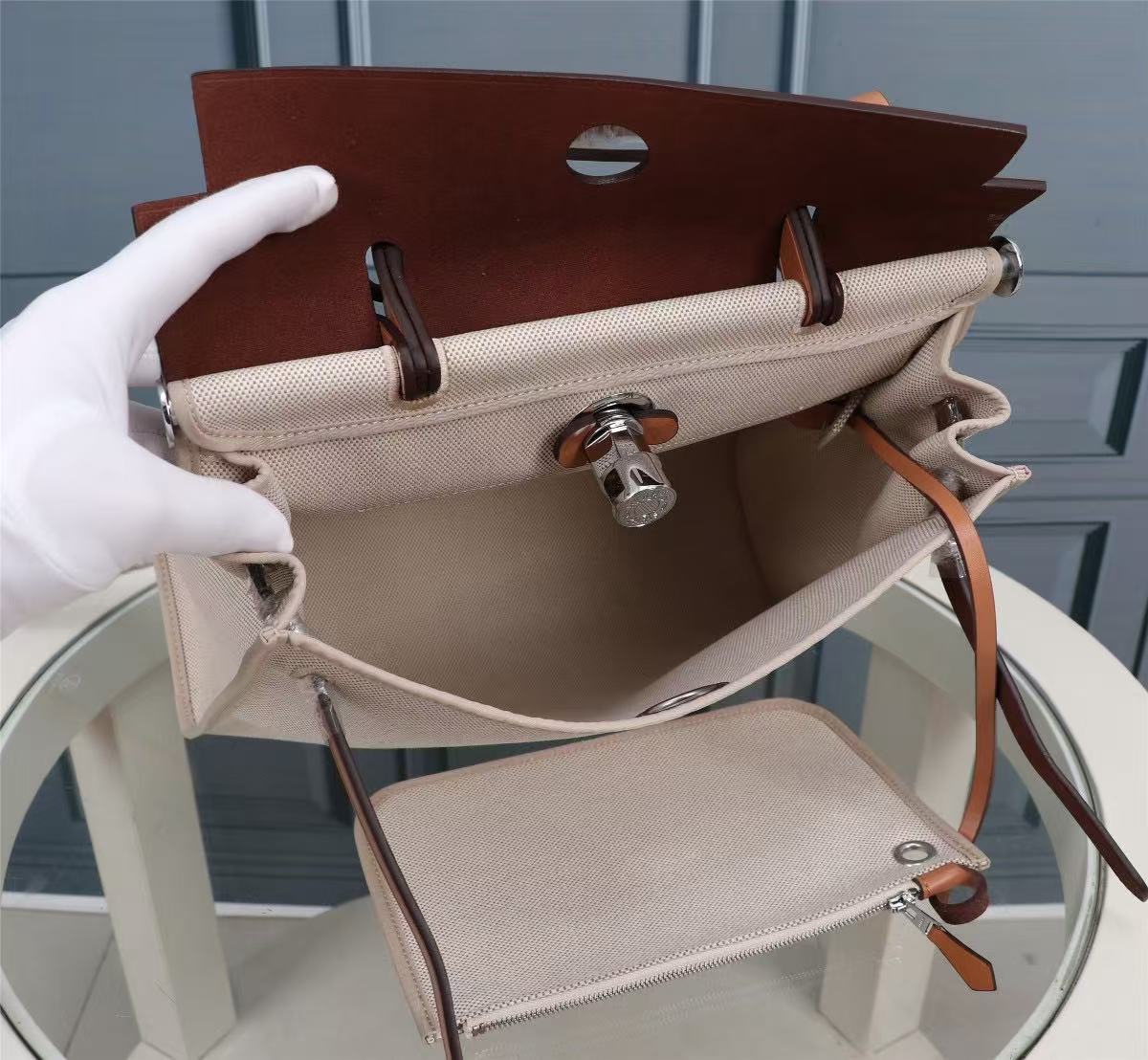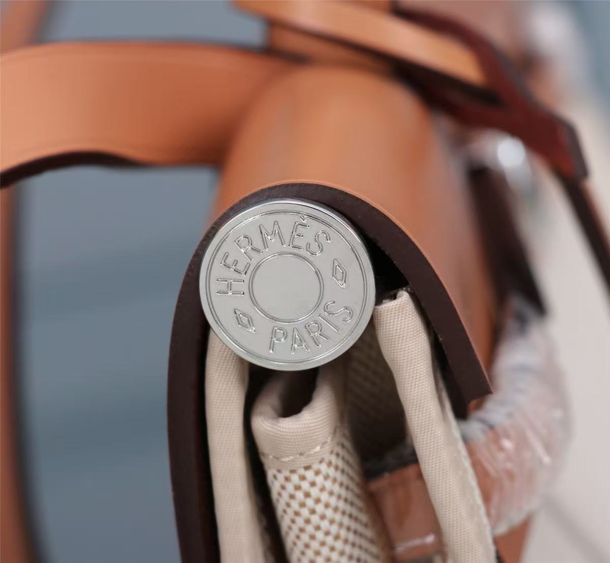 HERMES Herbag Messenger 39 Silver buckle H crossbody single-shoulder handbag for women in light beige and light tea colors