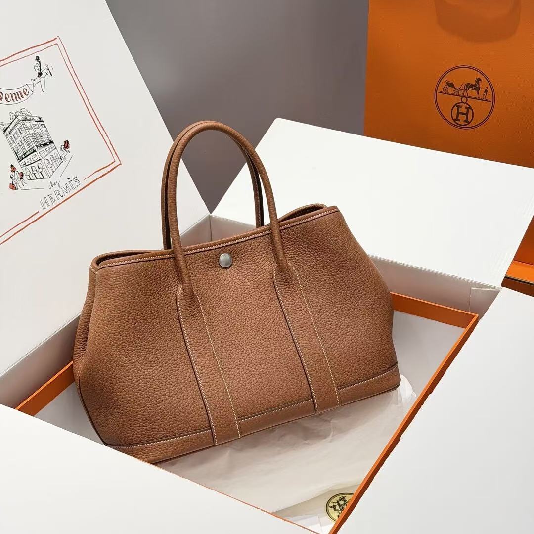 HERMES Garden Party 30 Silver clasp Handbag 30 Women\'s Edition 37 Gold