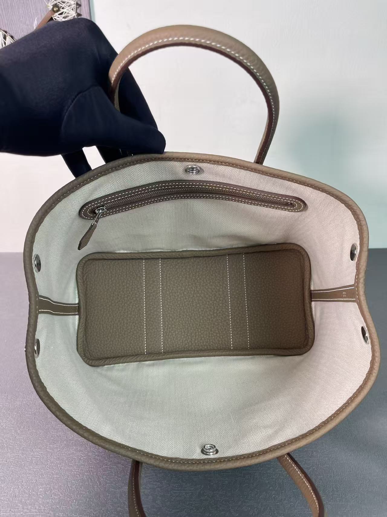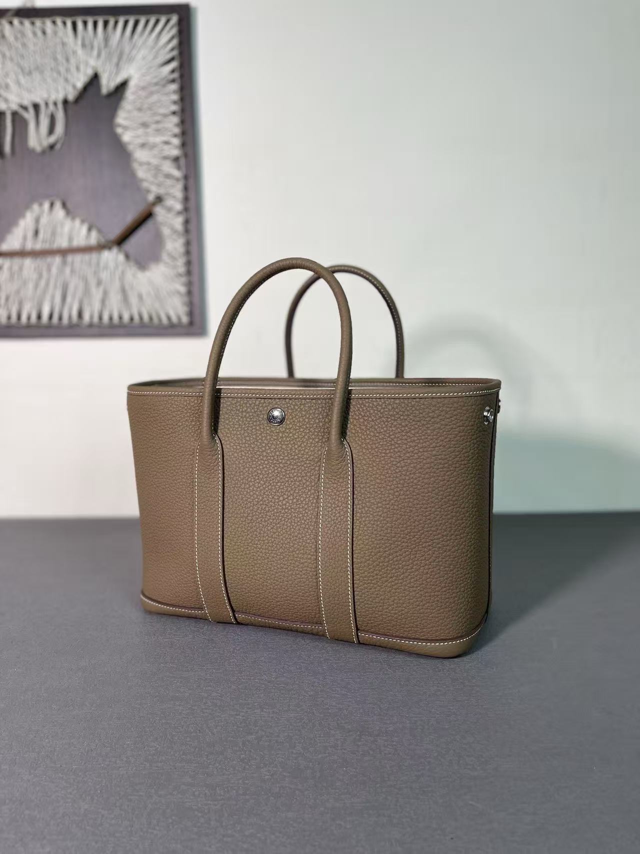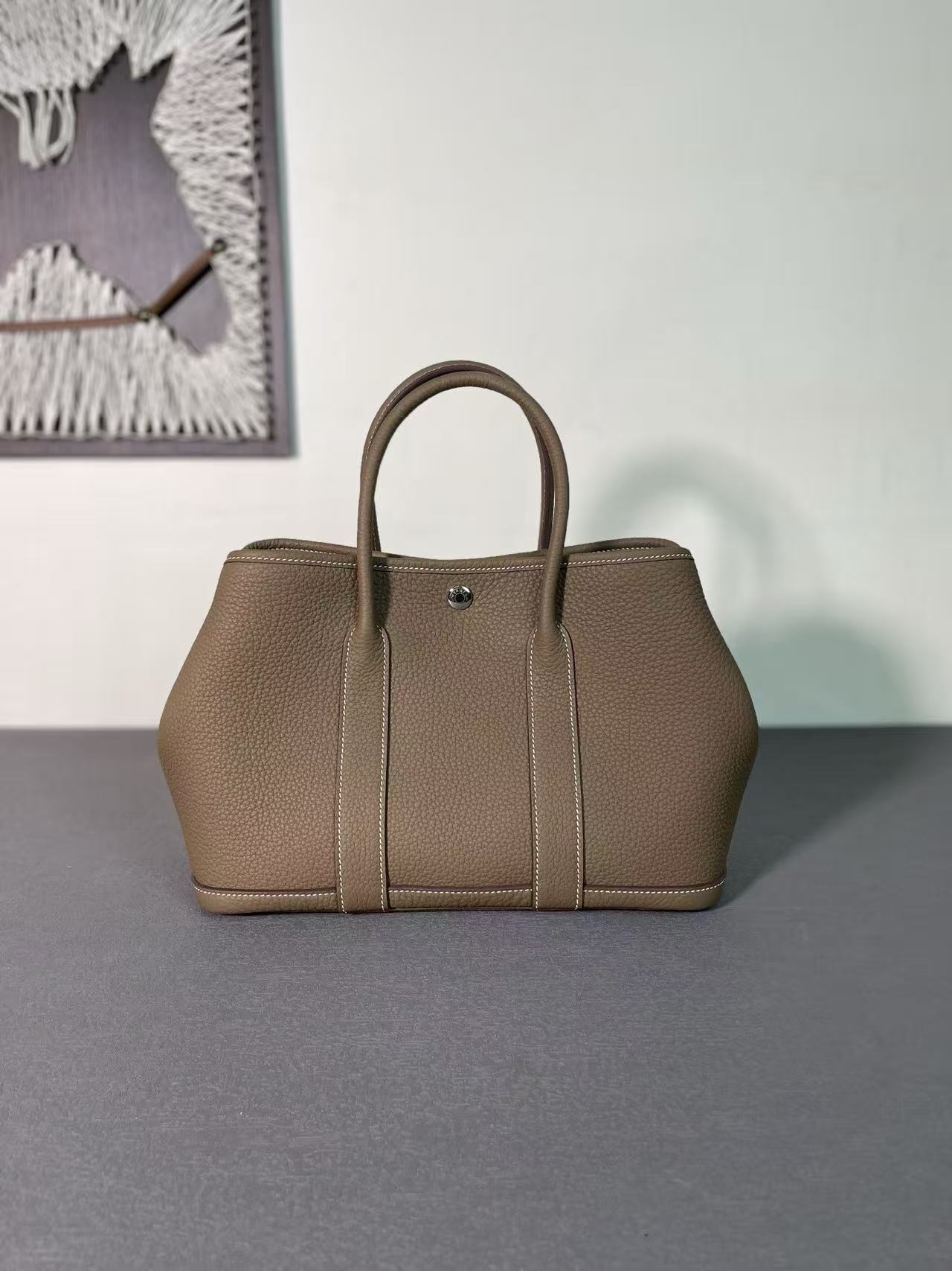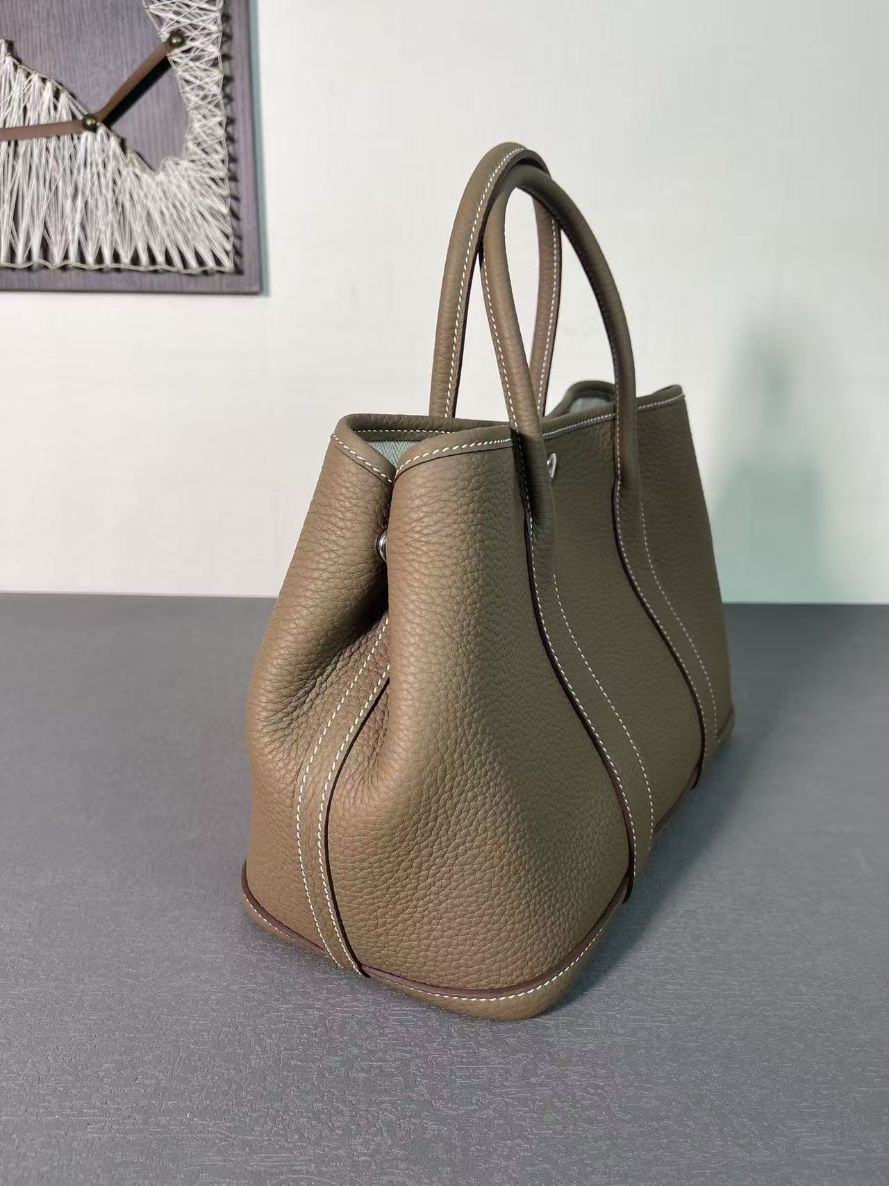 HERMES Garden Party 30 Silver clasp Handbag 30 Women\'s Edition 18 Etoupe Elephant Grey