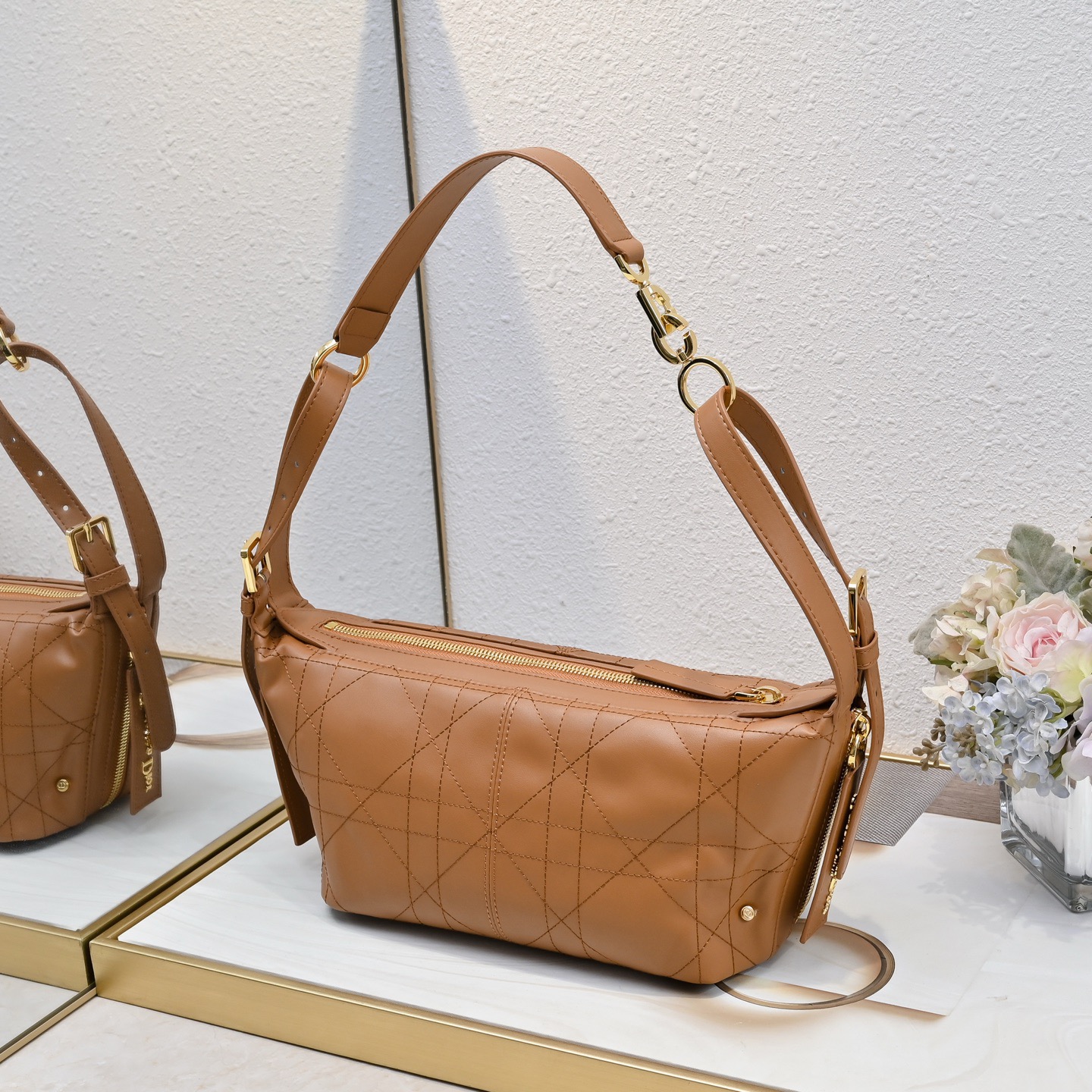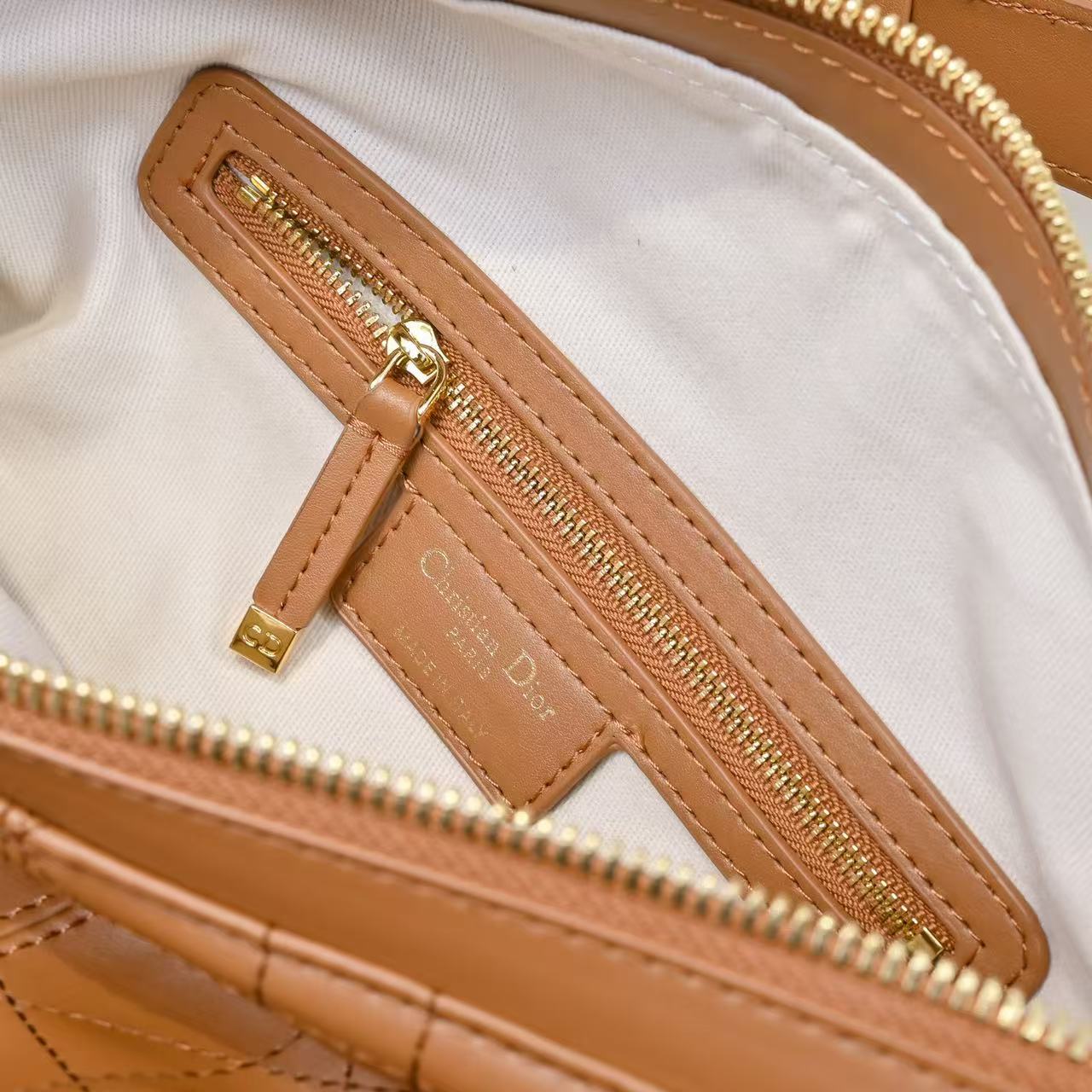 DIOR D-Journey Metal CD hook-shoulder strap bag, medium-sized women\'s camel brown
