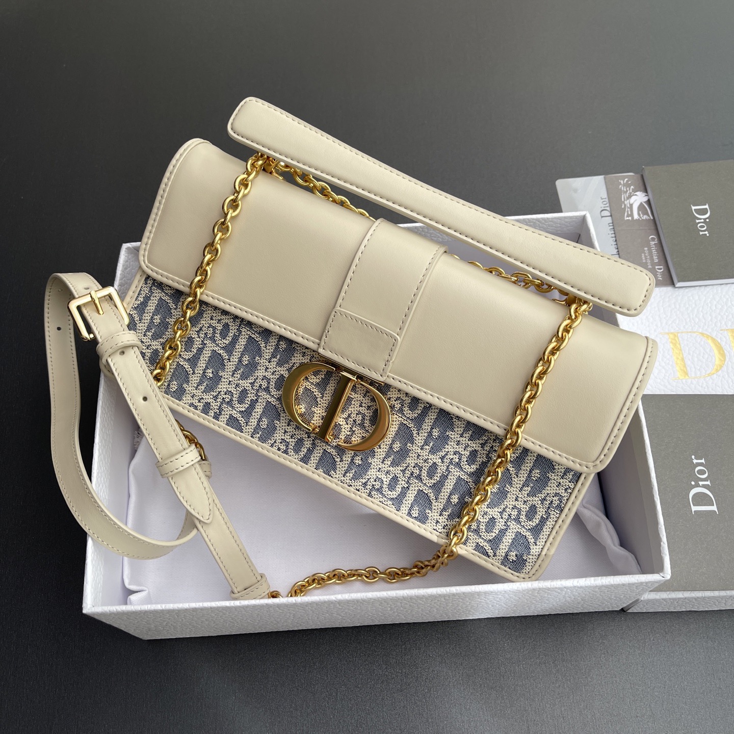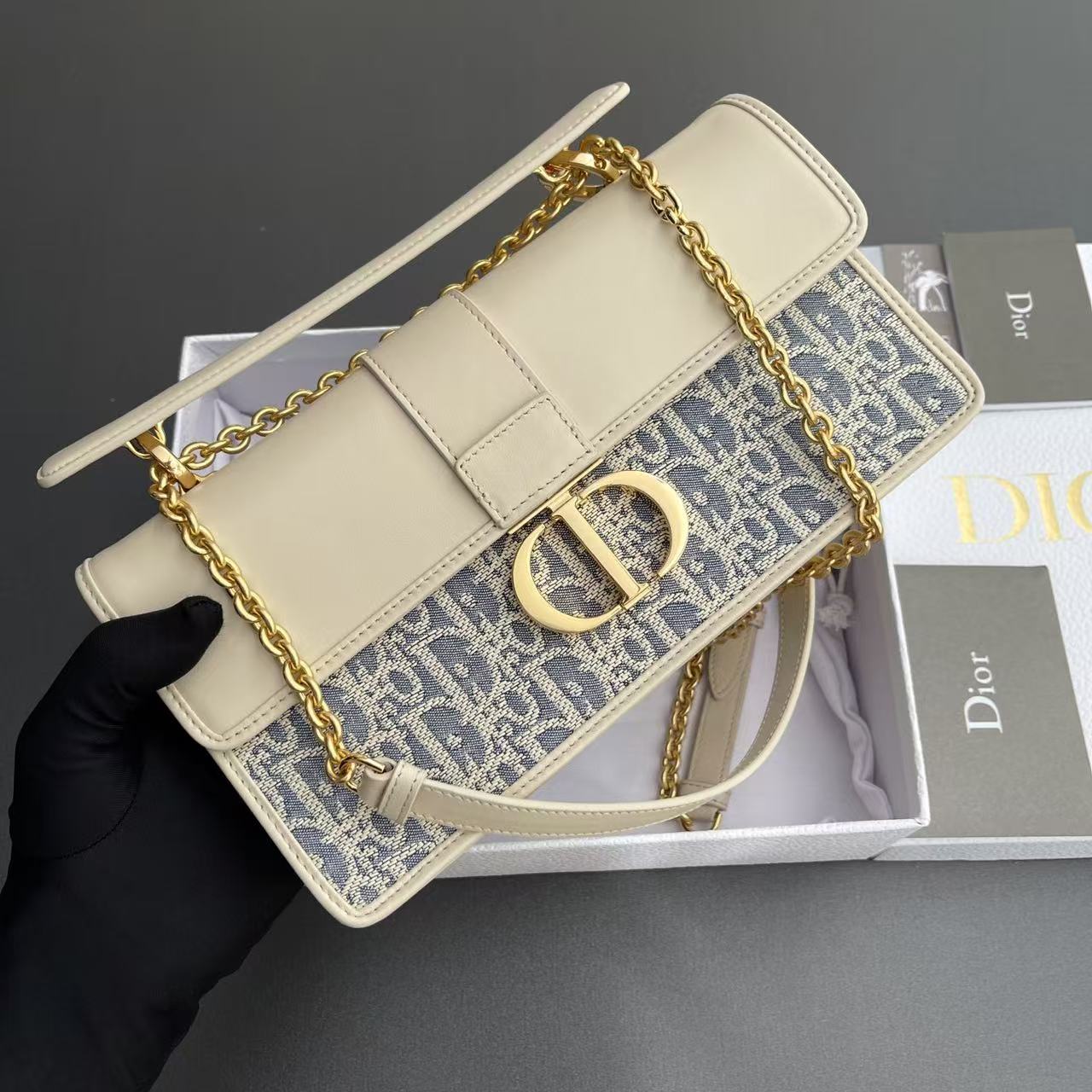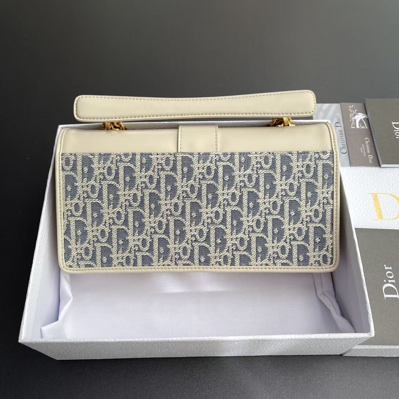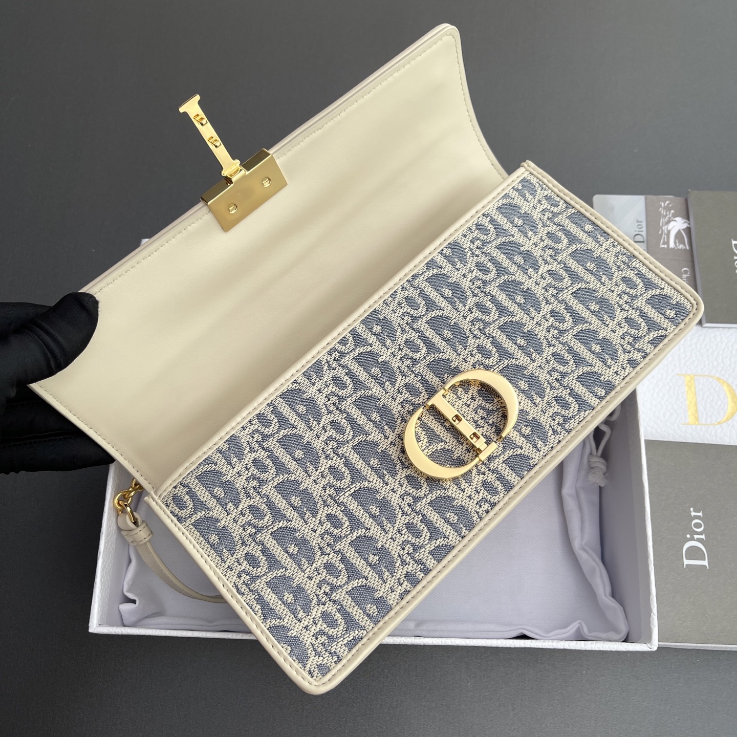 DIOR 30 Montaigne Blue coir effect checkered fabric single-shoulder handbag for women in beige