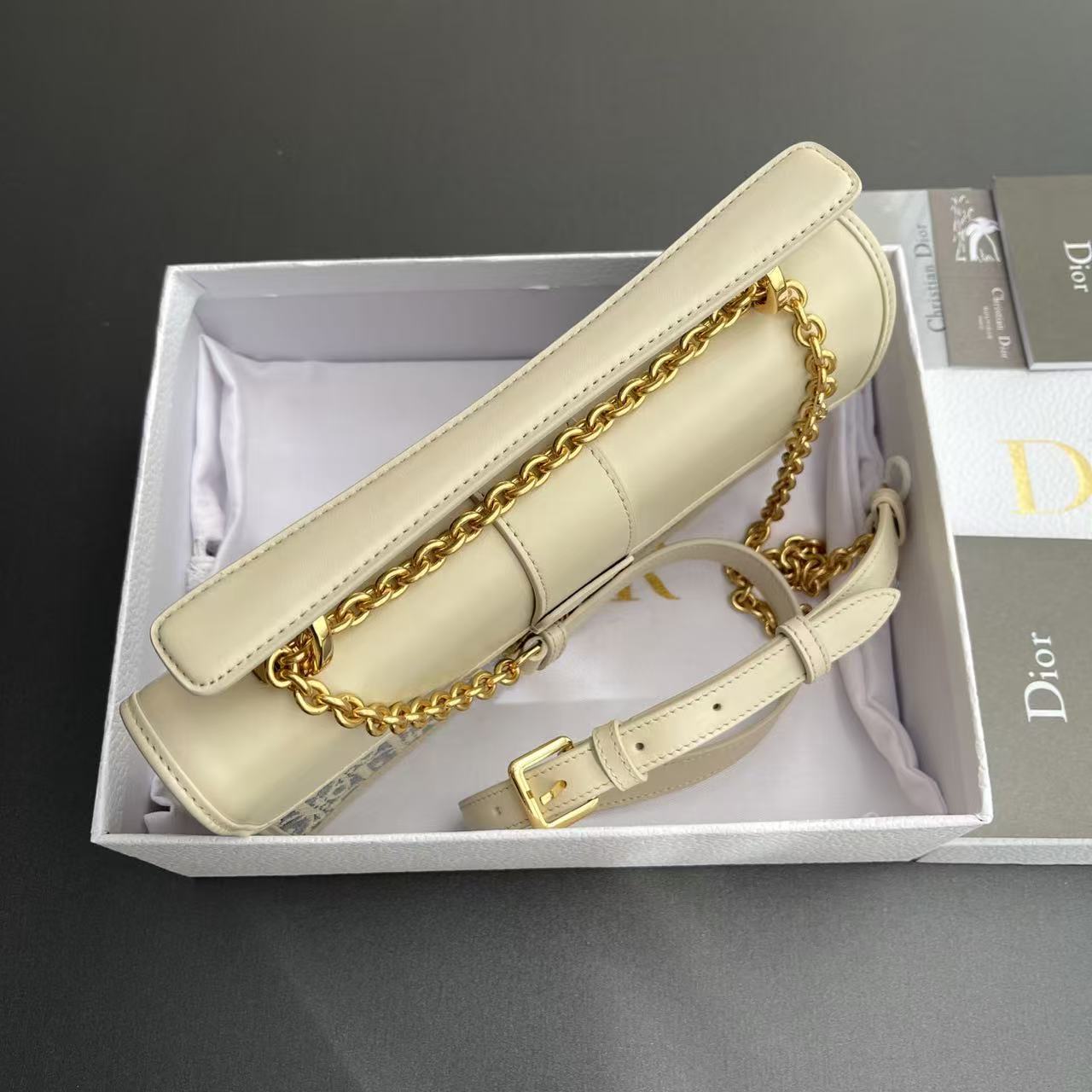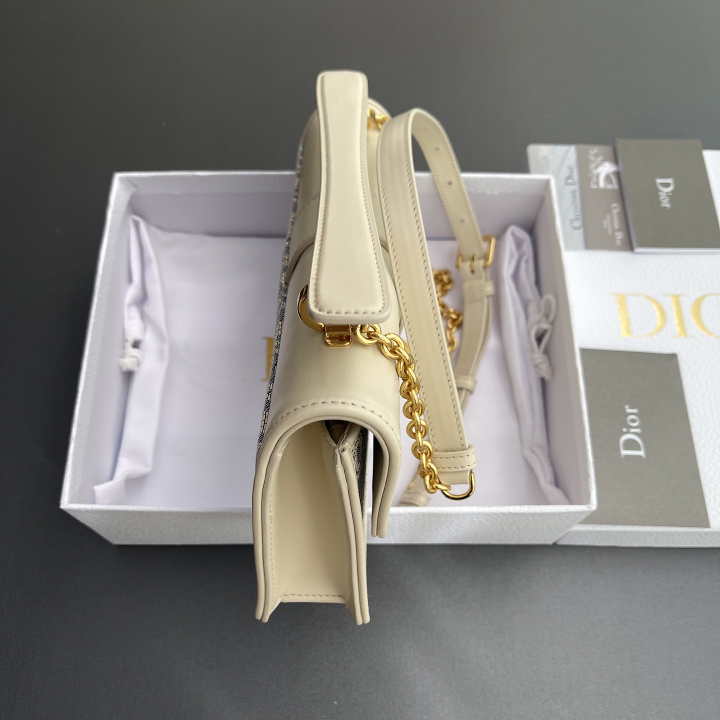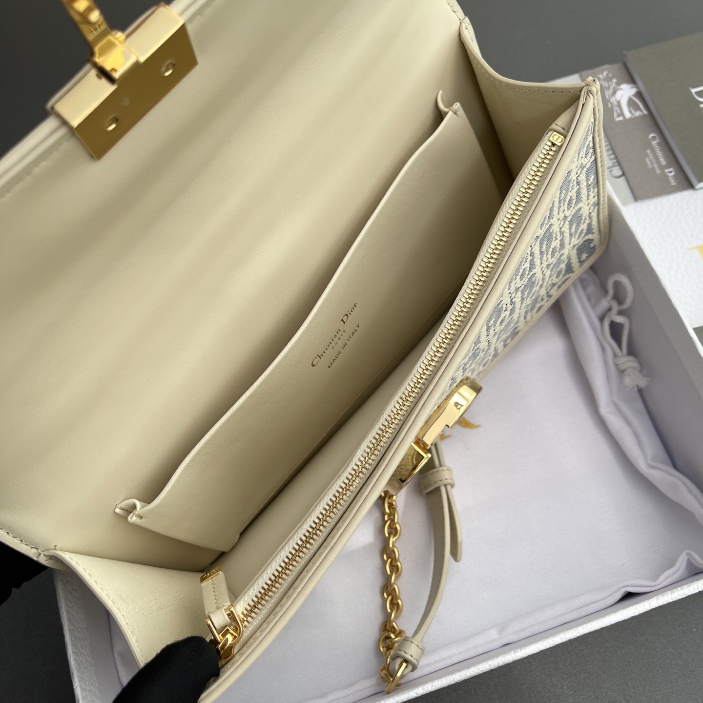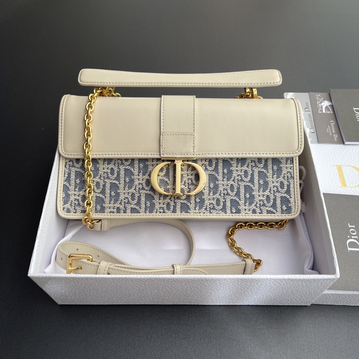 DIOR 30 Montaigne Blue coir effect checkered fabric single-shoulder handbag for women in beige