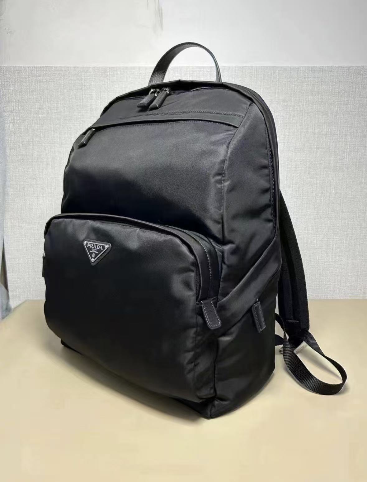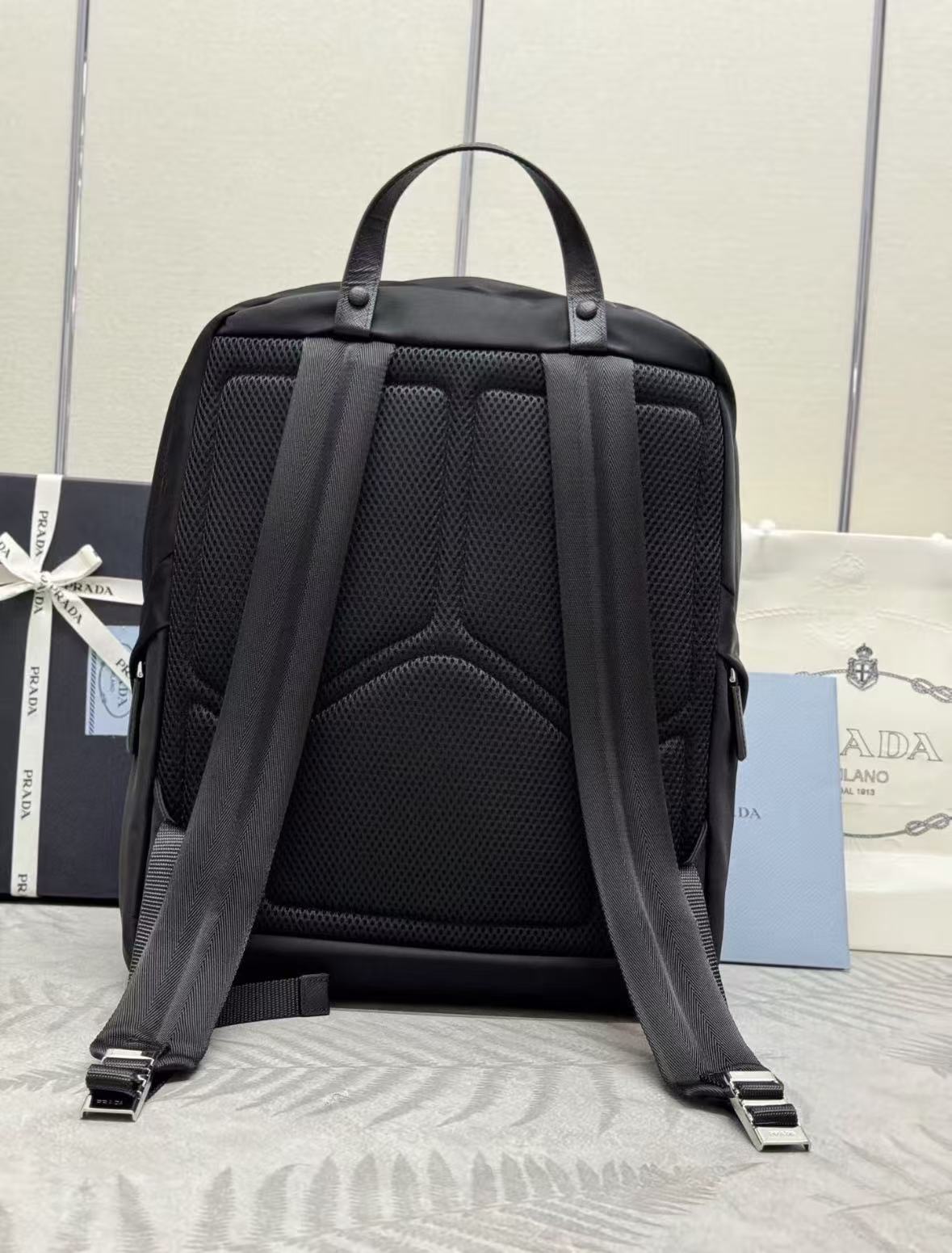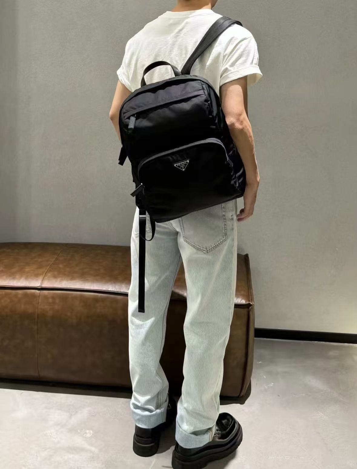 PRADA Re-Nylon enamel metal triangular logo zipper opening backpack, medium size for men, black
