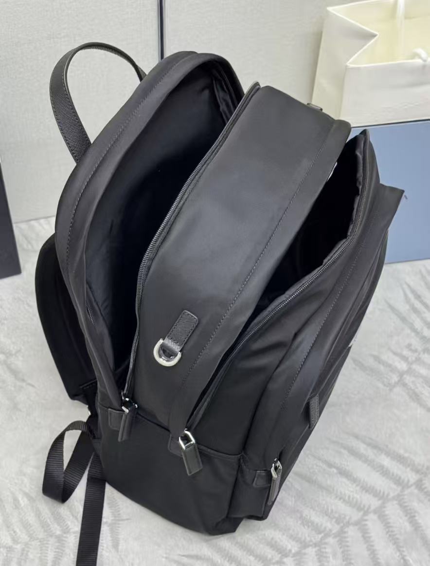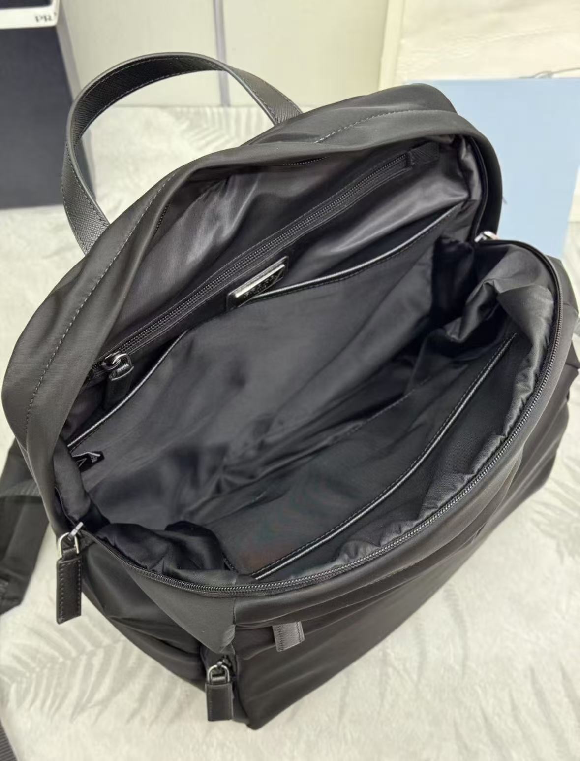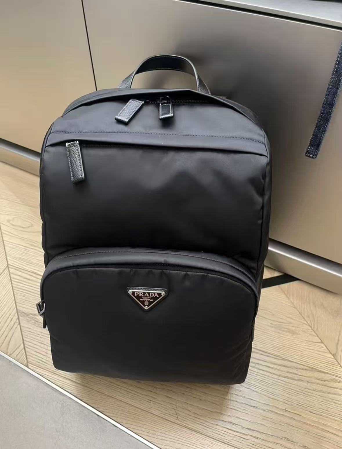 PRADA Re-Nylon enamel metal triangular logo zipper opening backpack, medium size for men, black