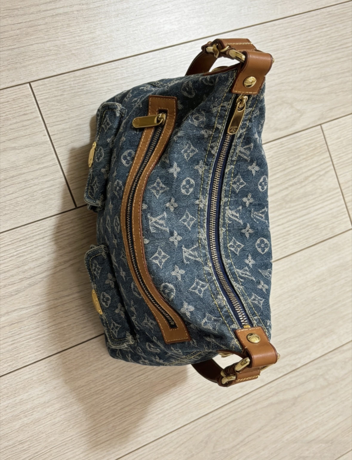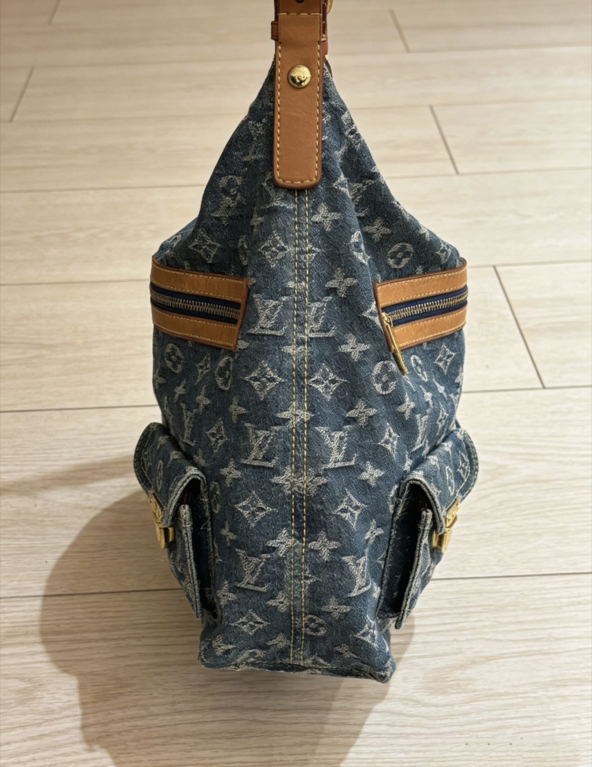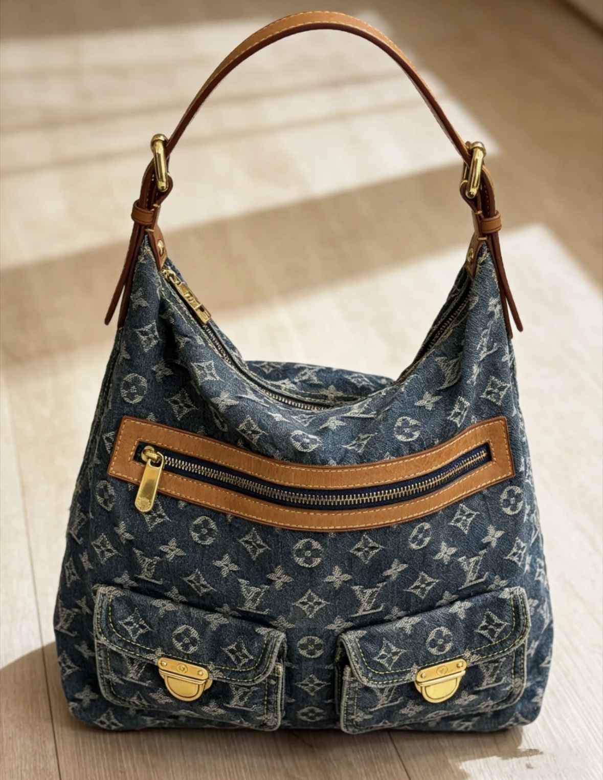 LOUIS VUITTON BAGGY denim denim color-blocked knot zipper exterior single-shoulder handbag, blue