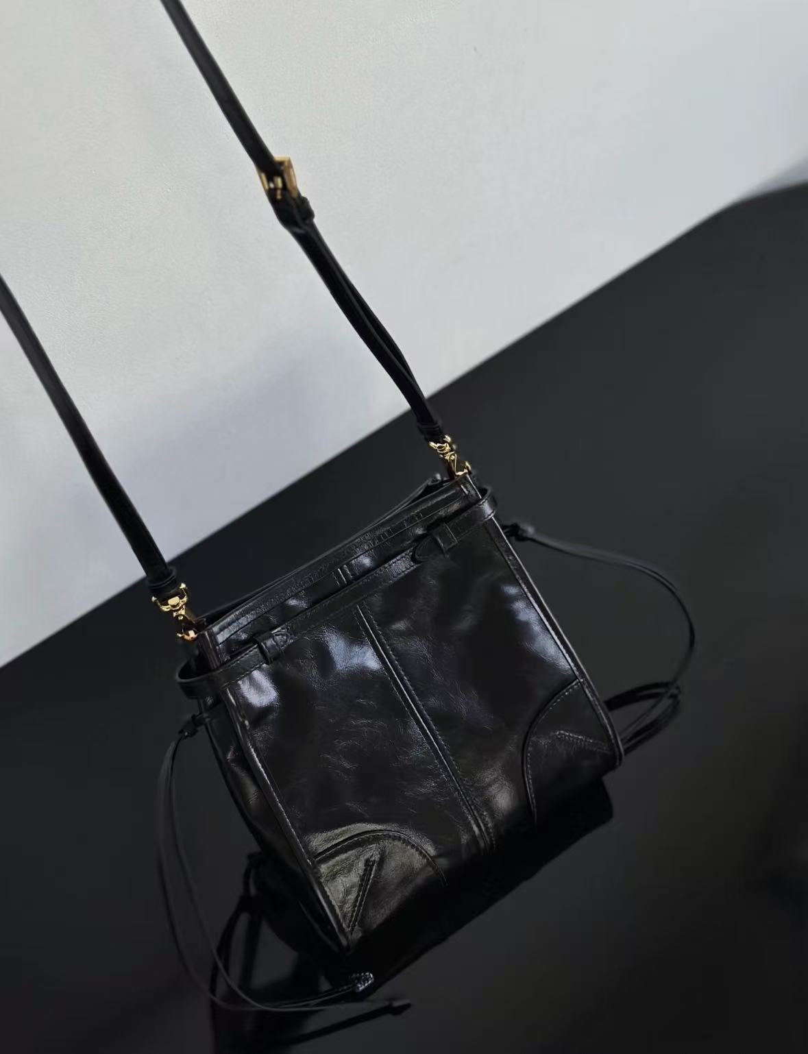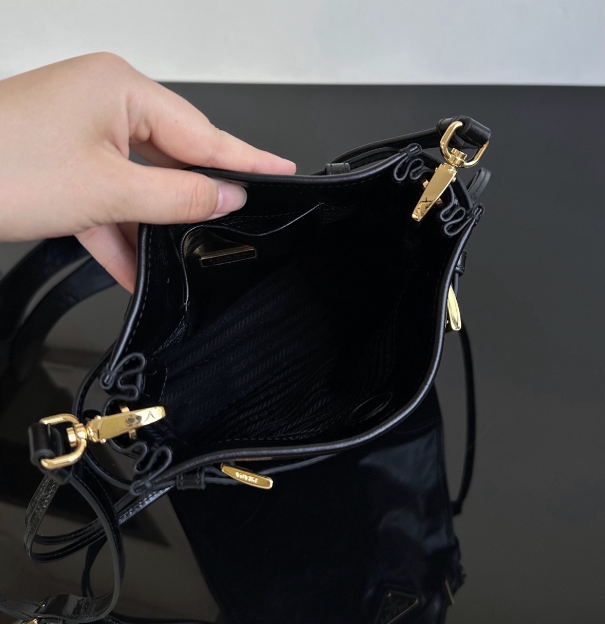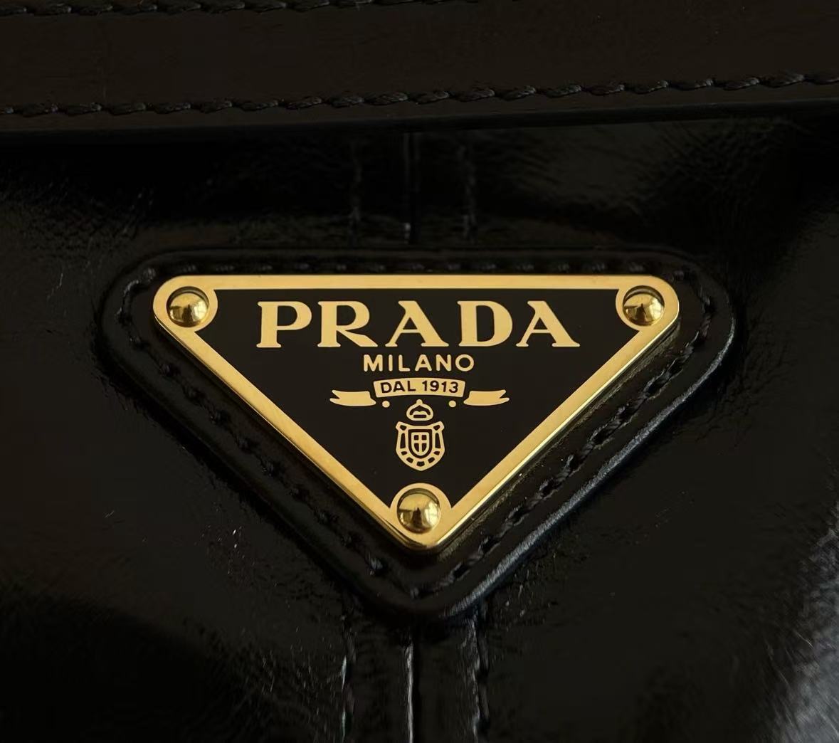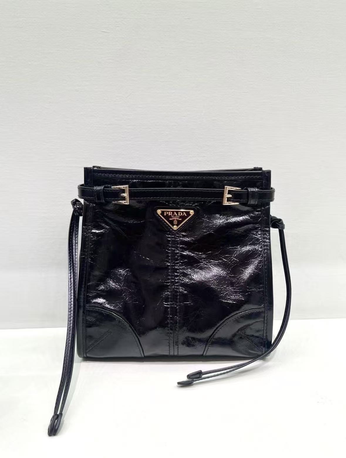 PRADA Bonnie metal hardware accessories enamel-coated triangular logo single-shoulder bag for women in black