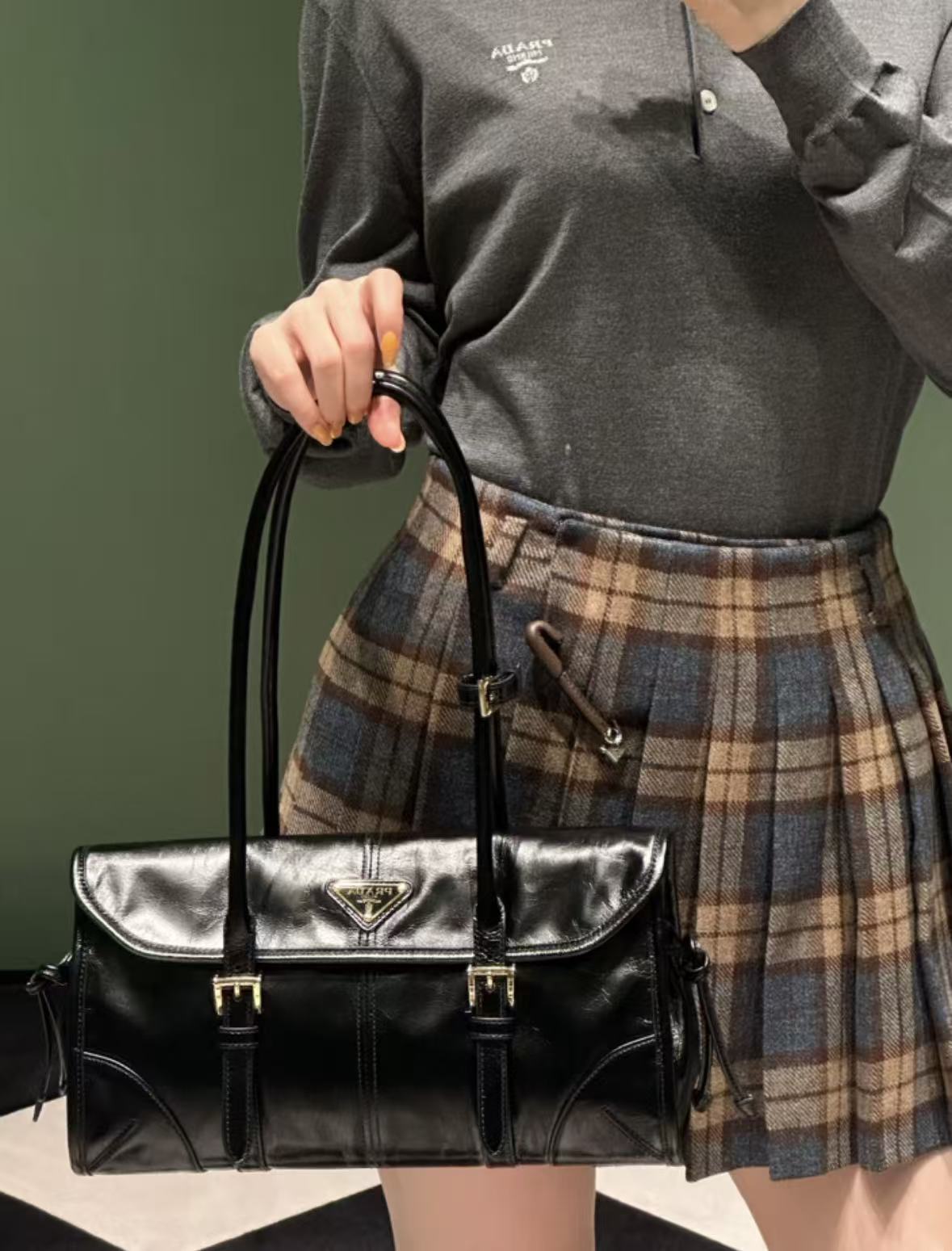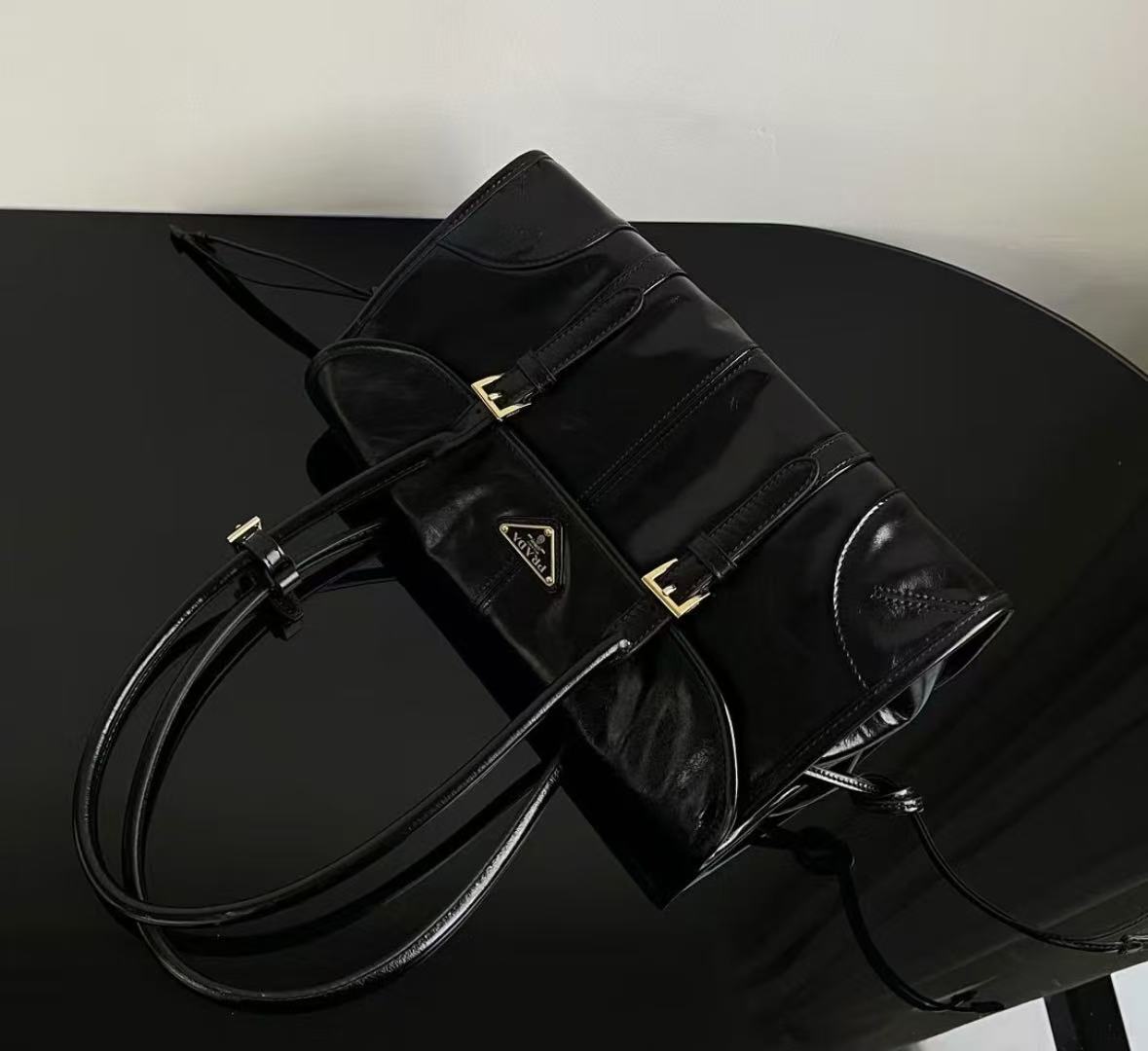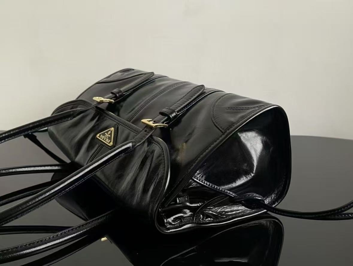 PRADA Explore enamel metal triangular logo zipper open shoulder bag for women, large size