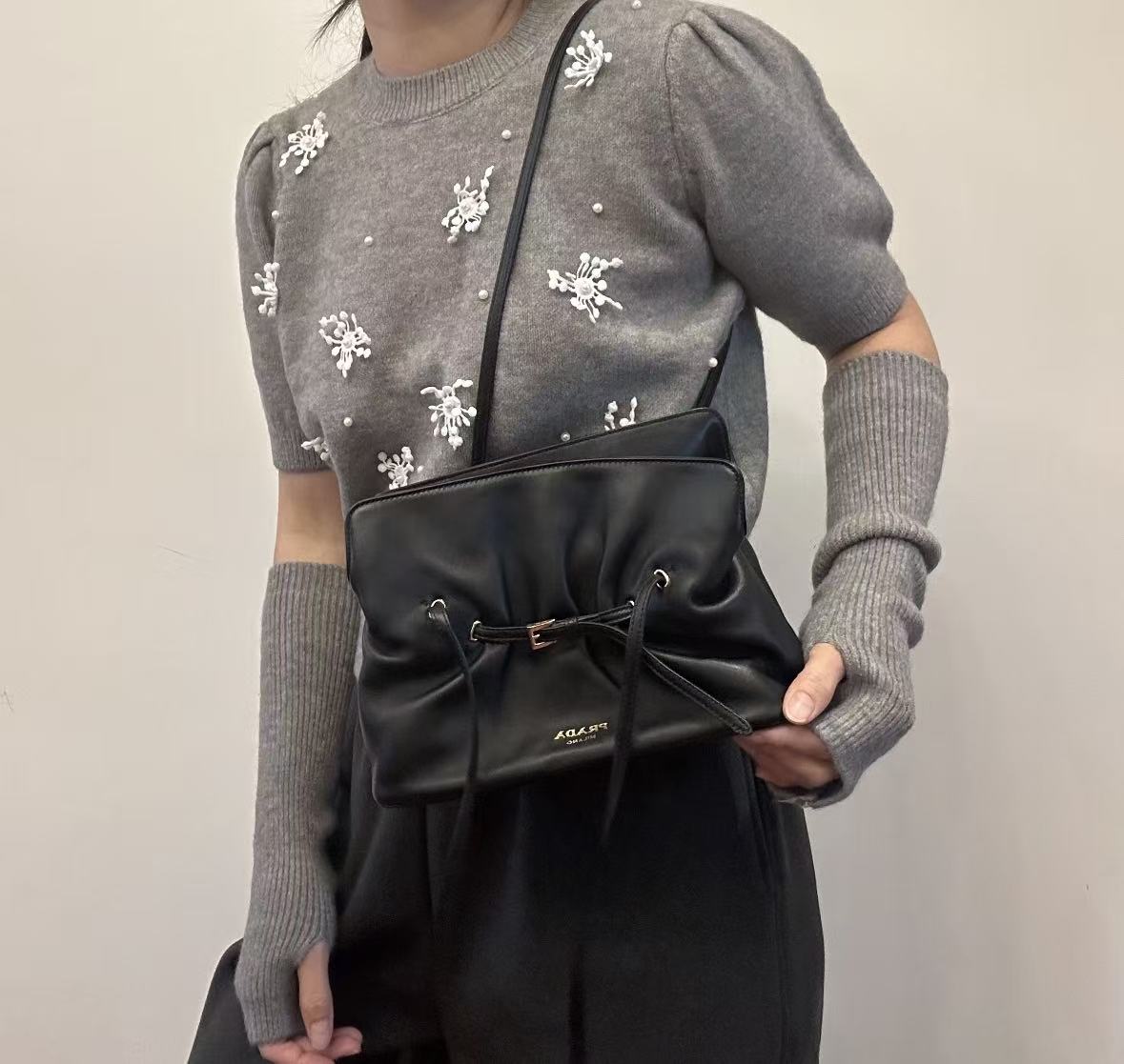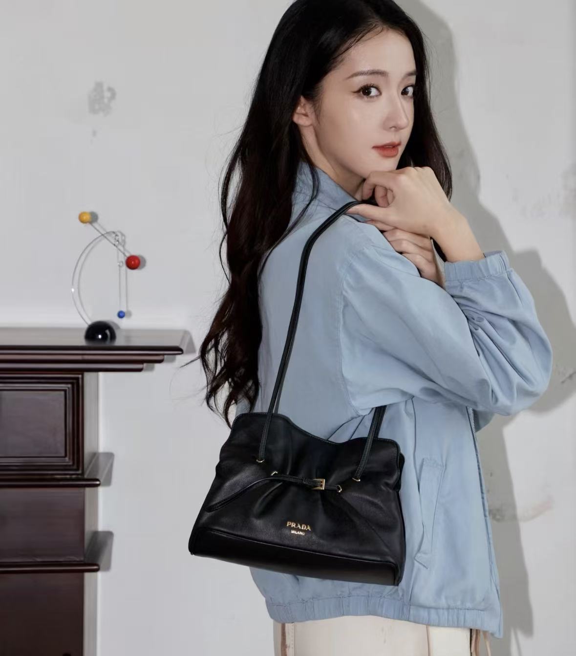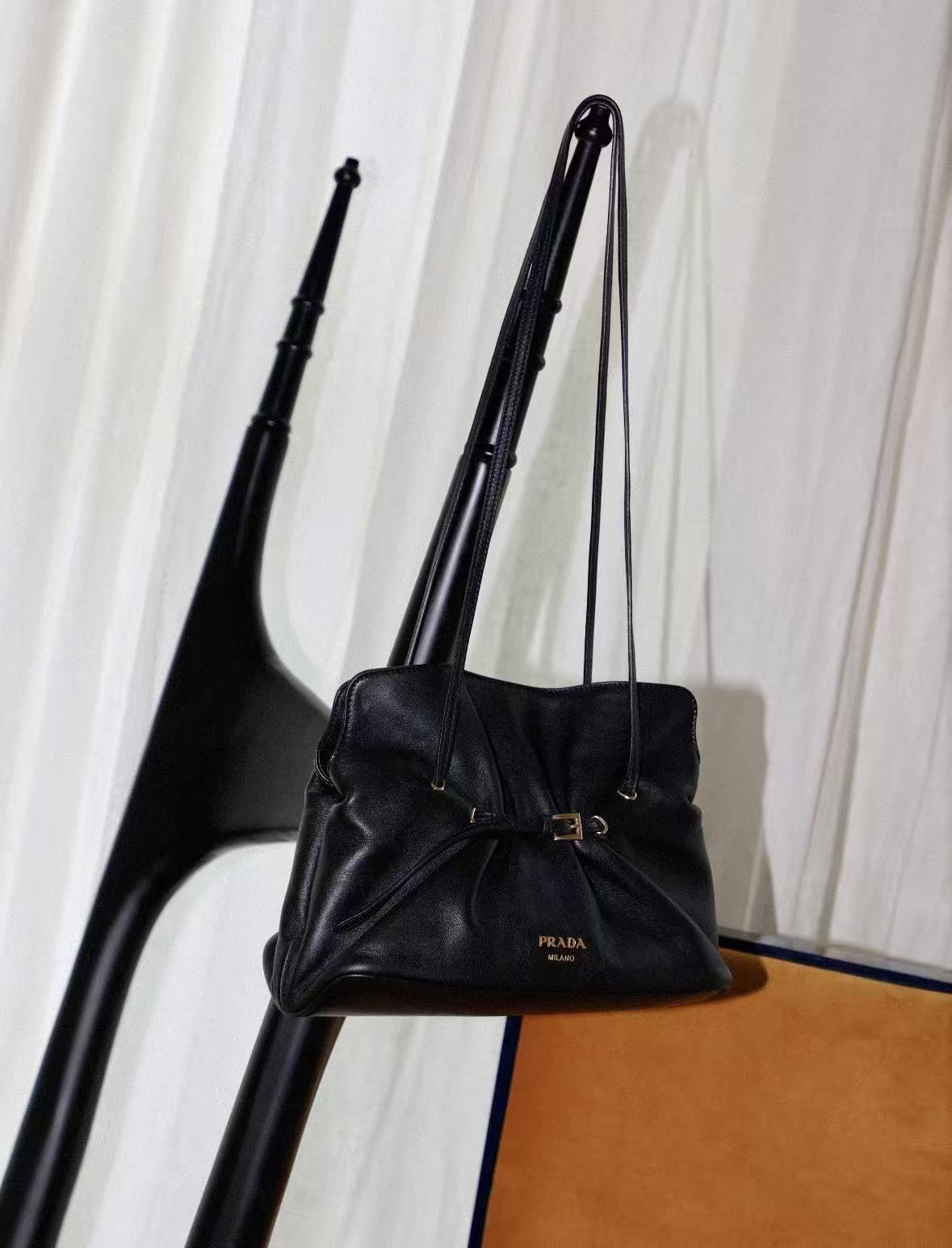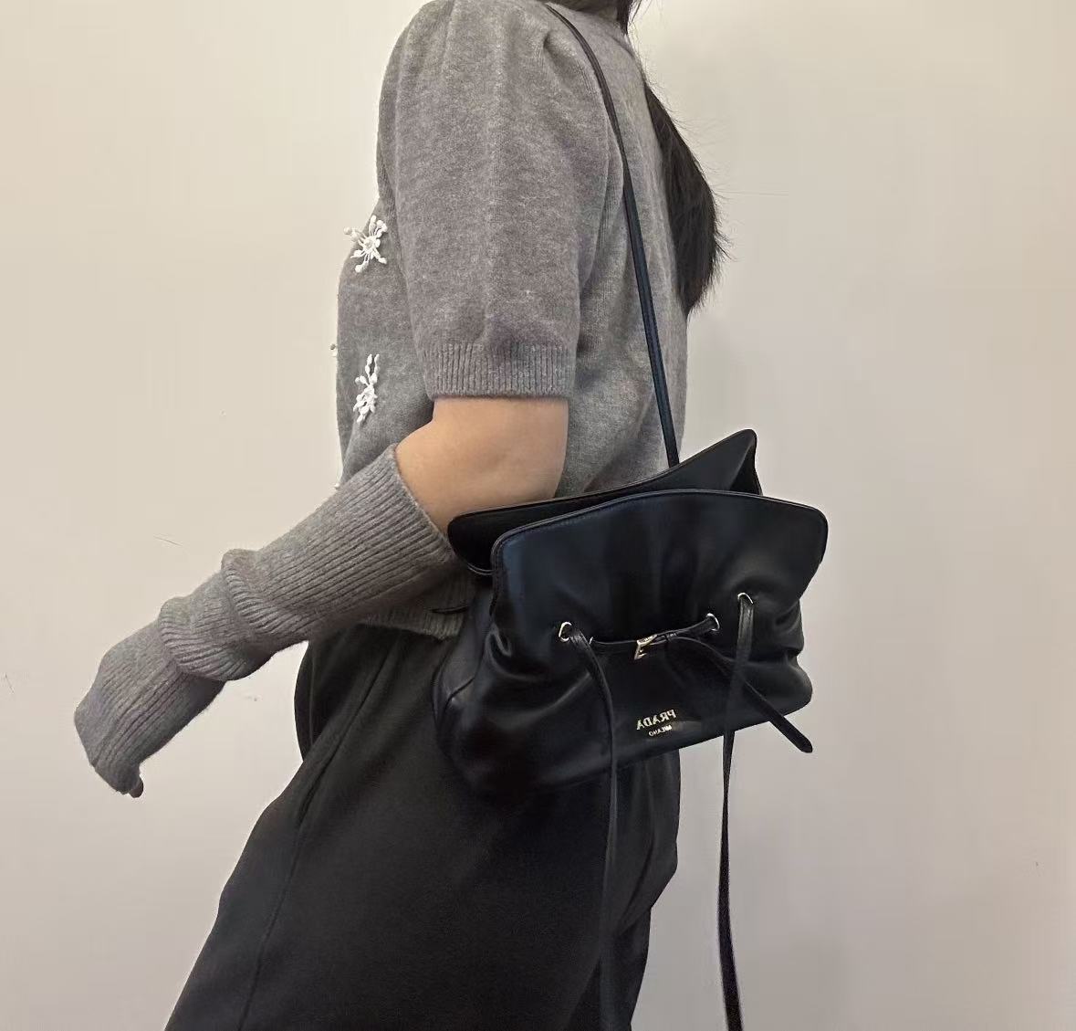 PRADA Dada single-shoulder bag with embossed letter logo on the front, small size for women, black