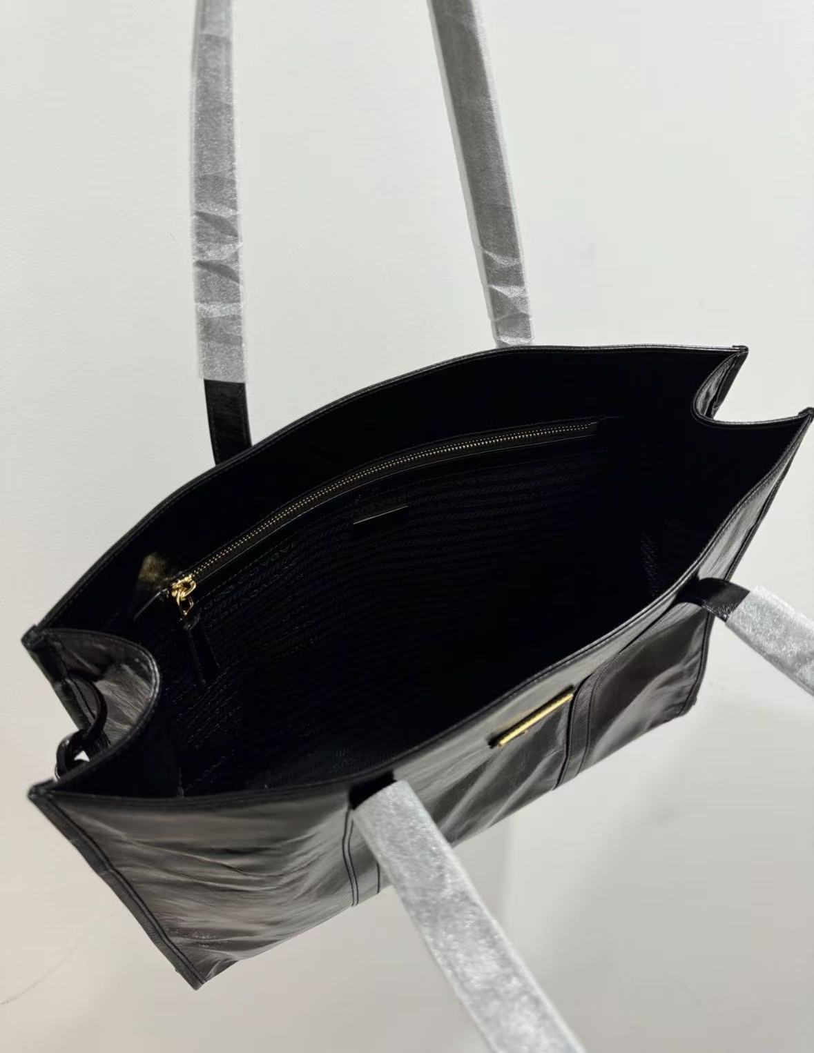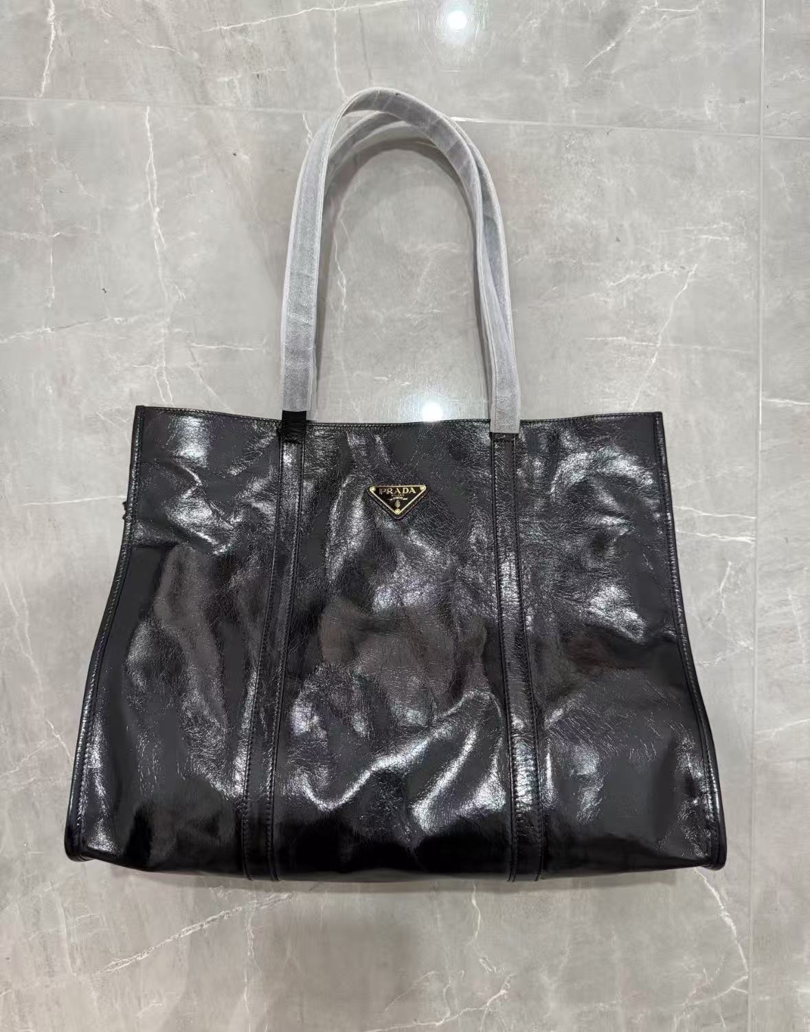 PRADA Enamel metal triangular logo Tote bag, Tote bag, shopping bag, handbag, large size for women, black
