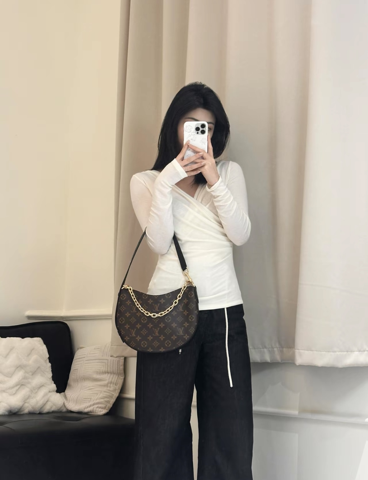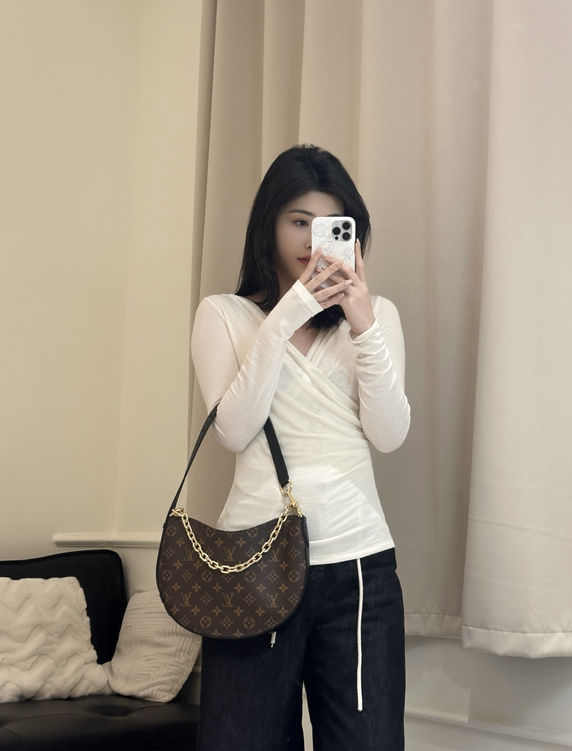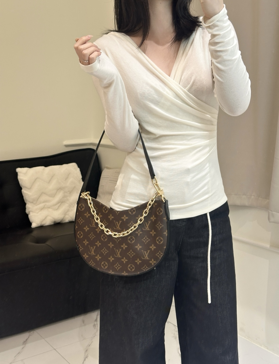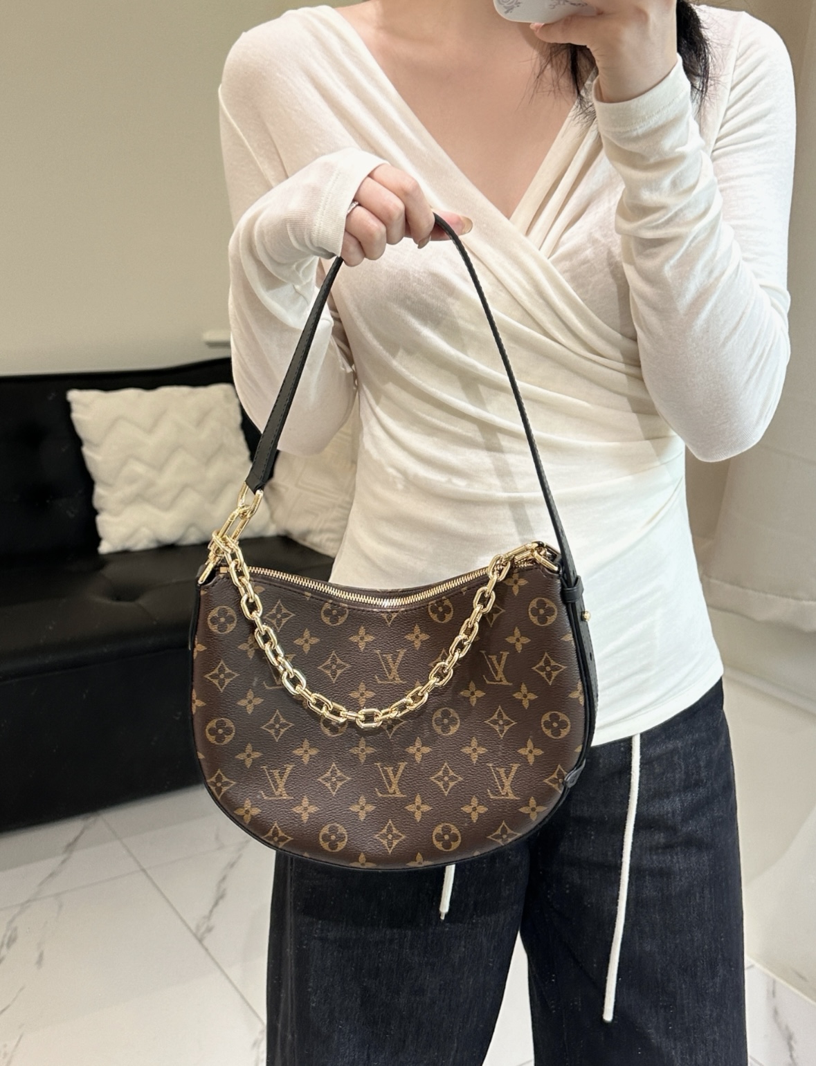 LOUIS VUITTON Cookie BB Fashion chain print underarm bag, shoulder bag, small size, black and brown