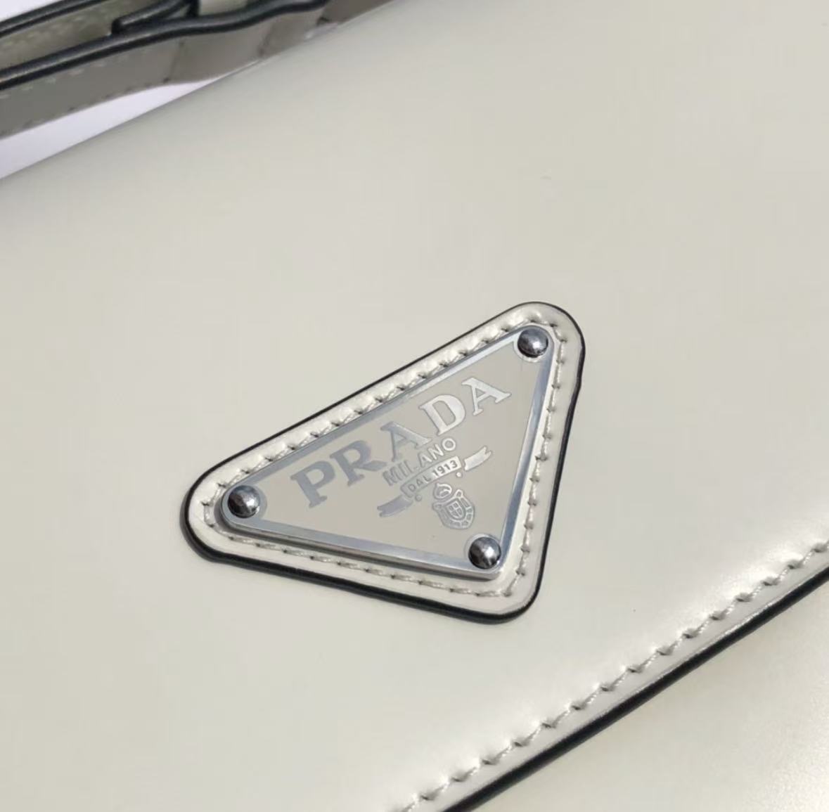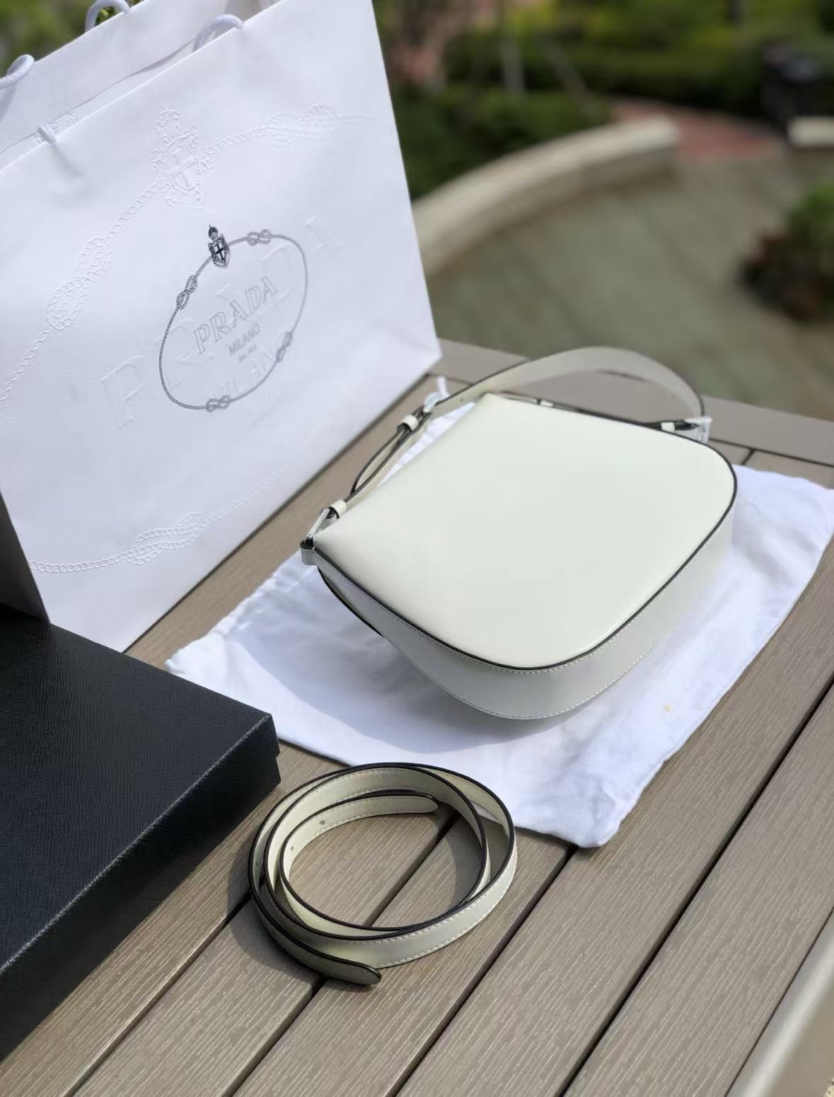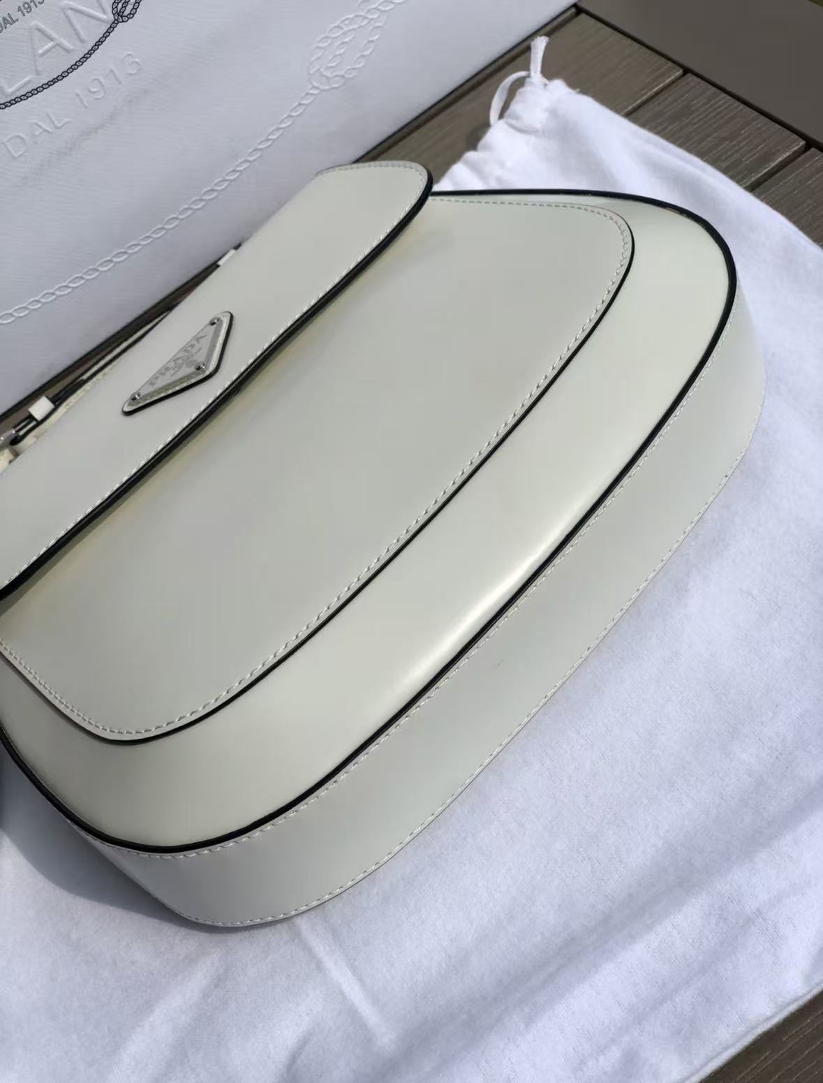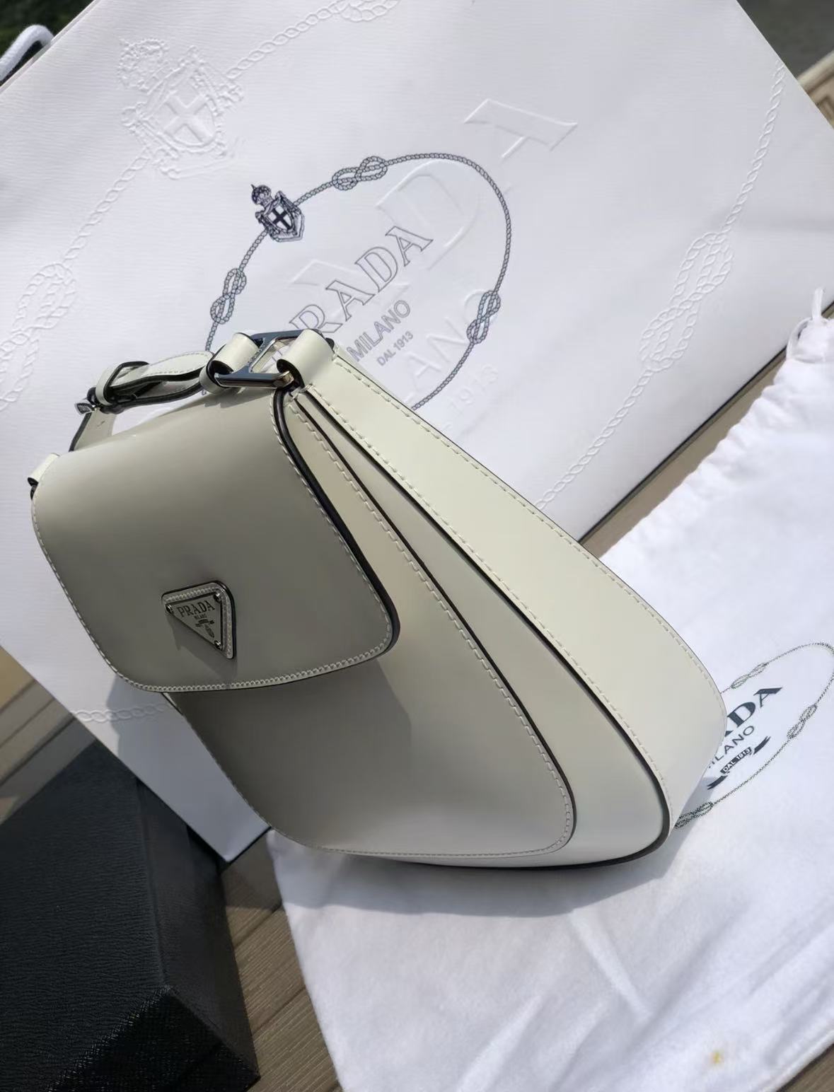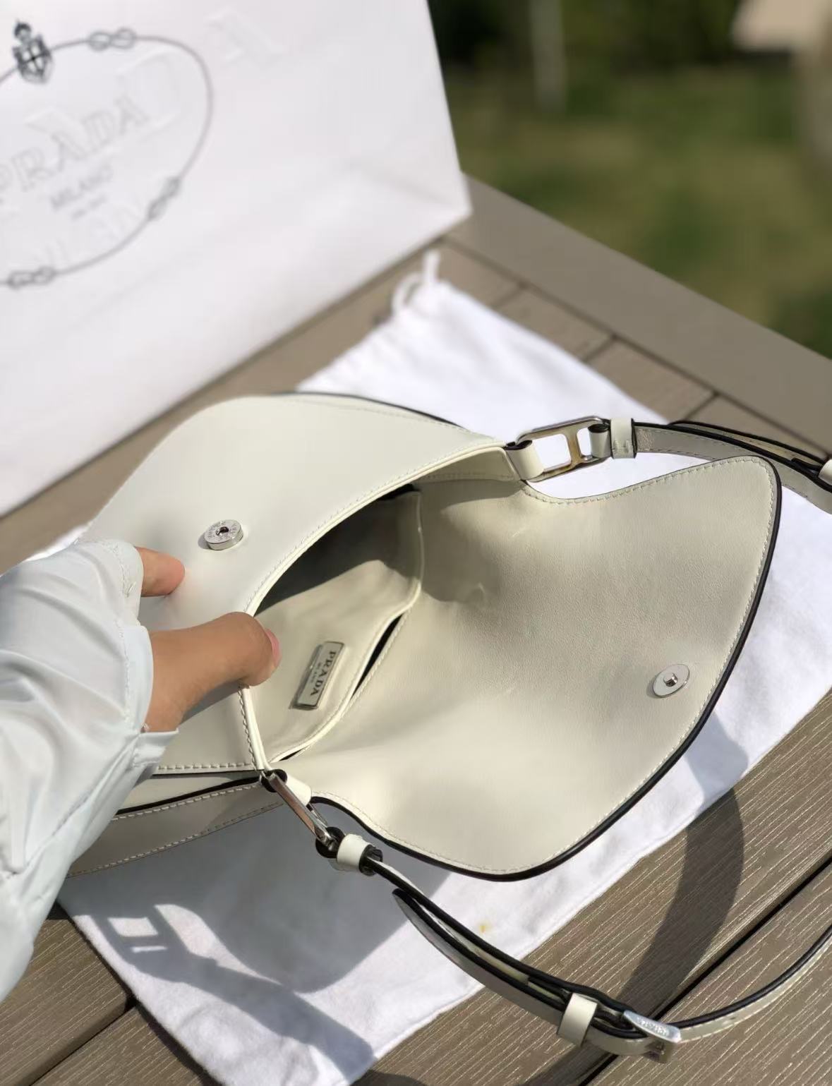 PRADA Cleo series glossy flip-top underarm bag, single-shoulder bag for women in white