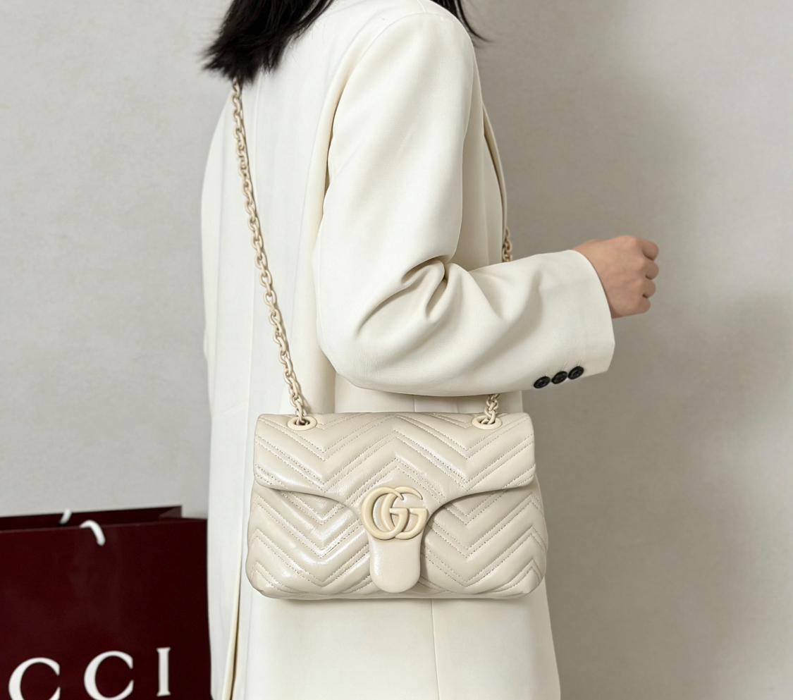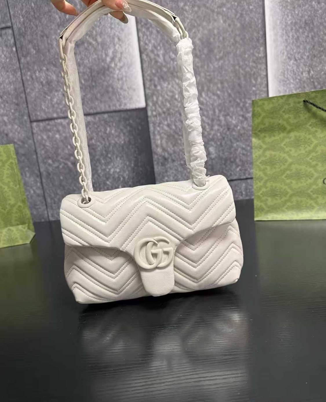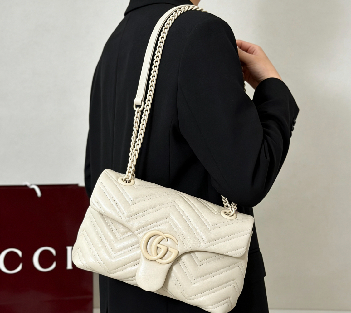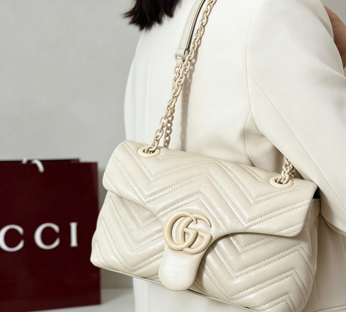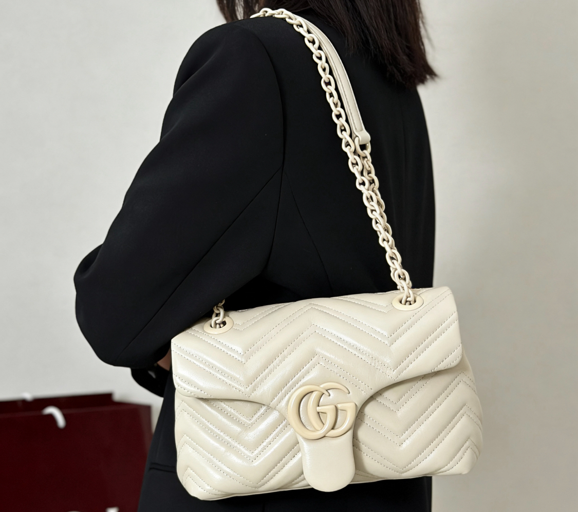 GUCCI GG Marmont enamel hardware chain single-shoulder bag, medium size for women, ivory color