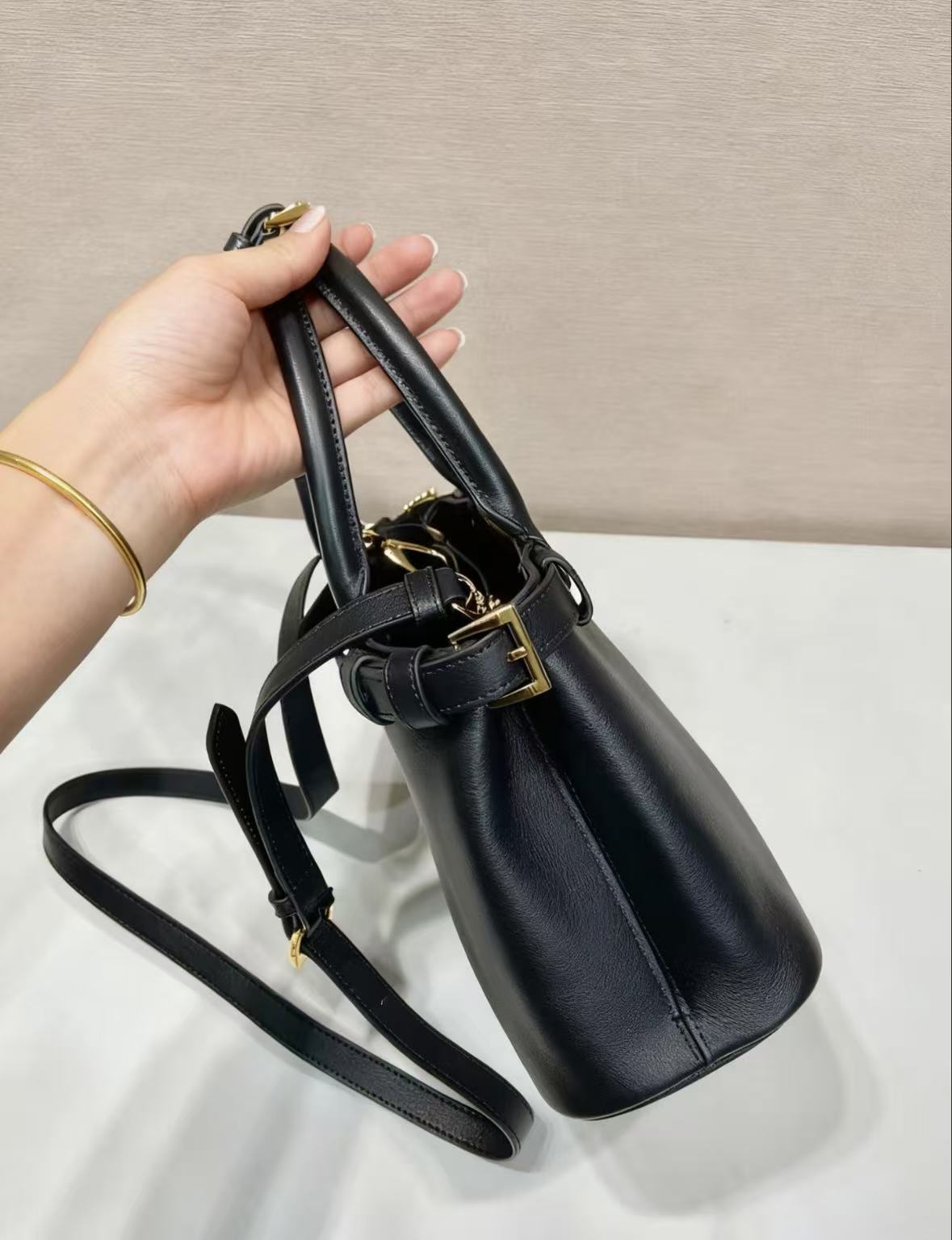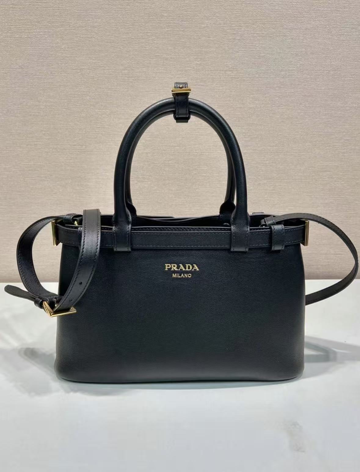 PRADA Buckle printed letter logo detachable and adjustable shoulder strap crossbody handbag, small size for women, black