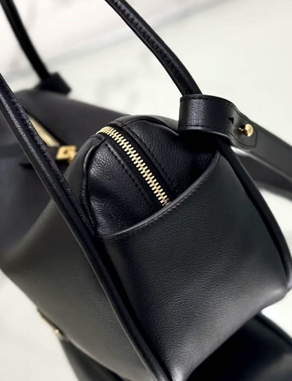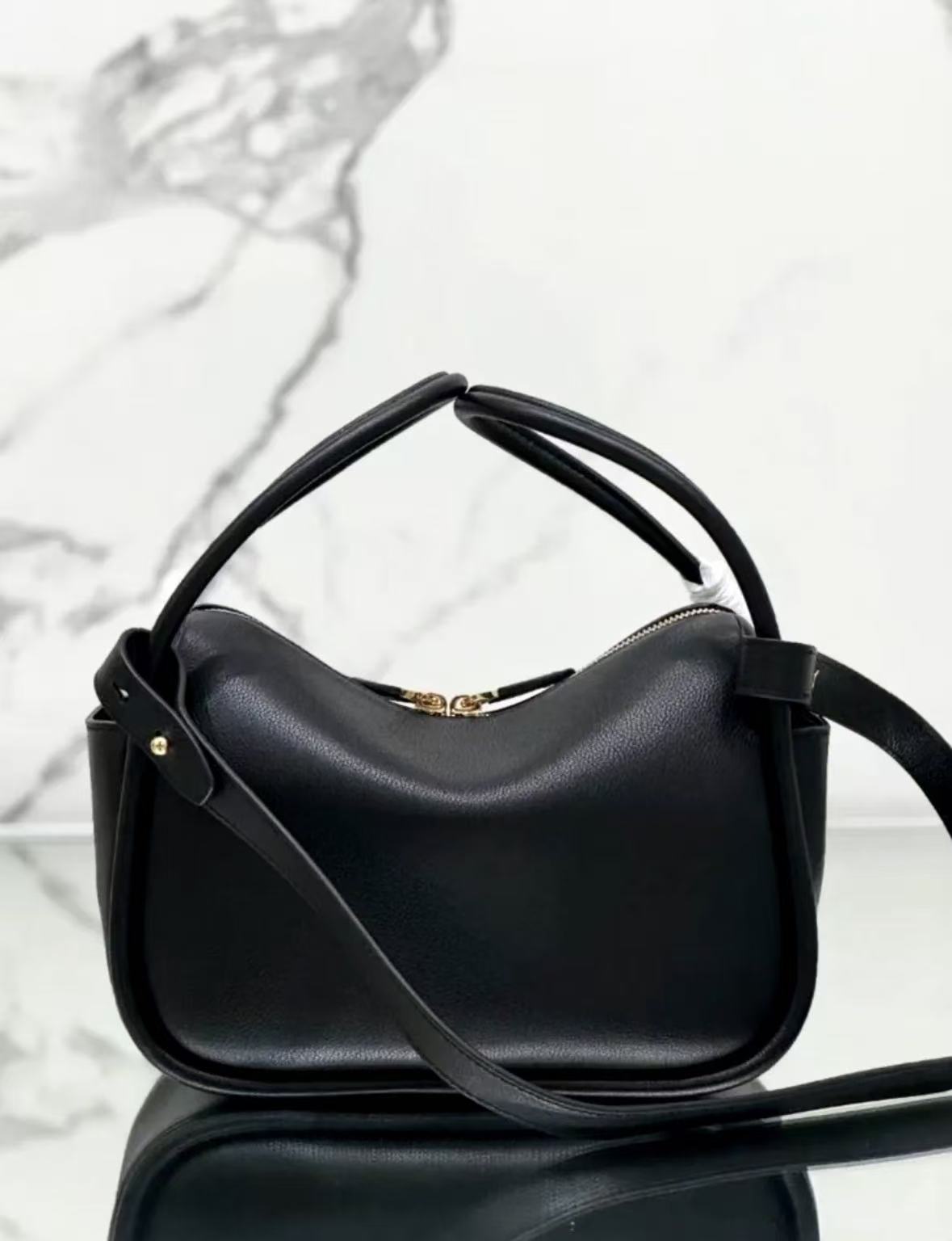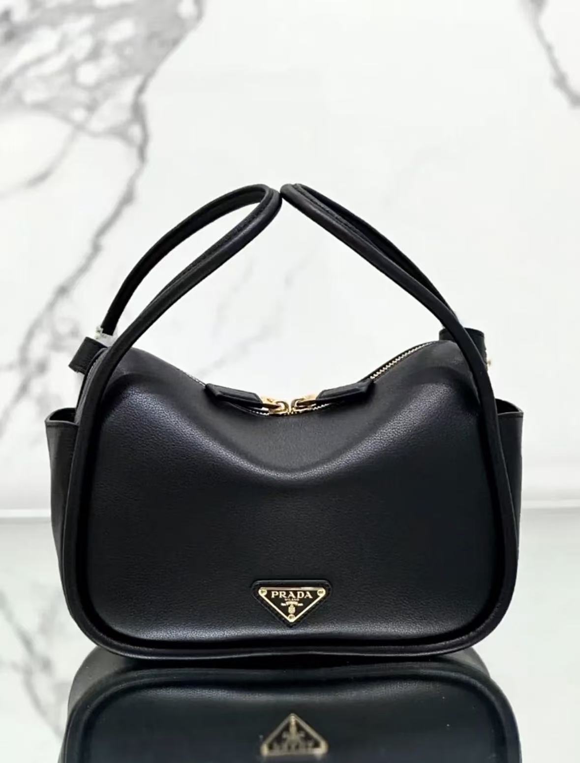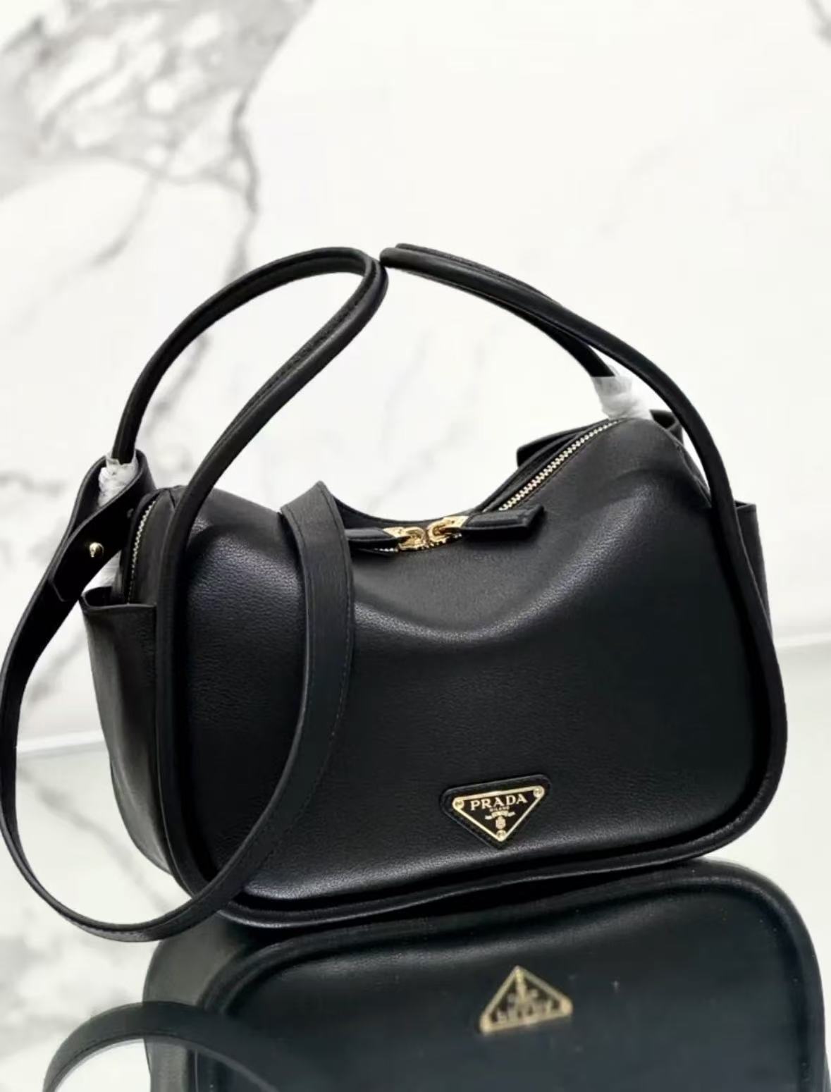 PRADA Enamel metal triangular logo zipper closed handbag for women in black