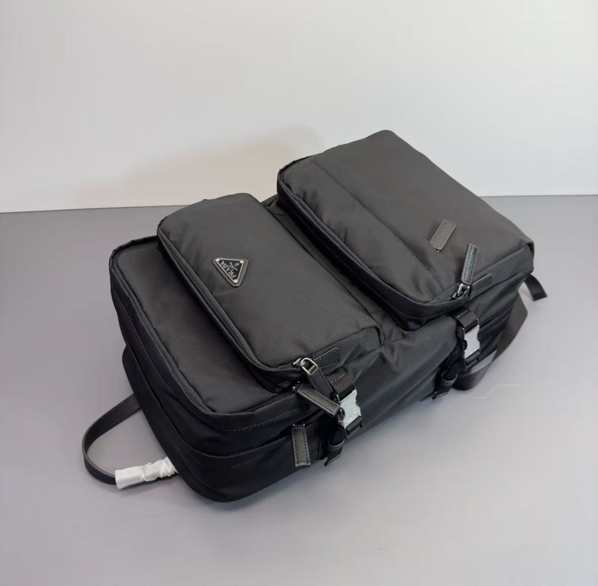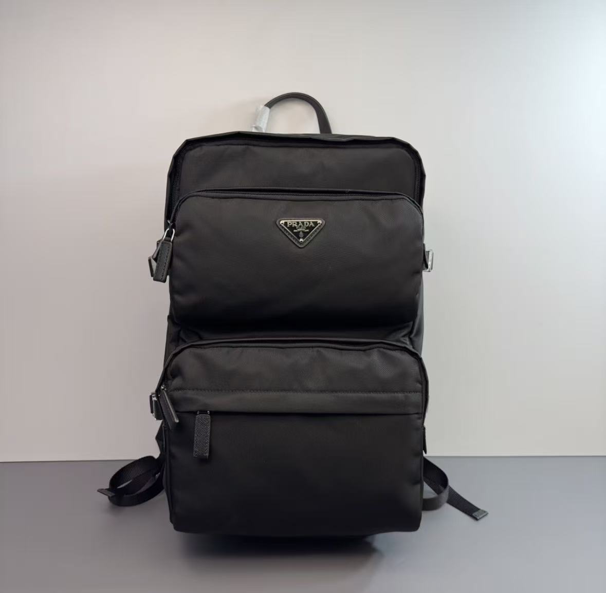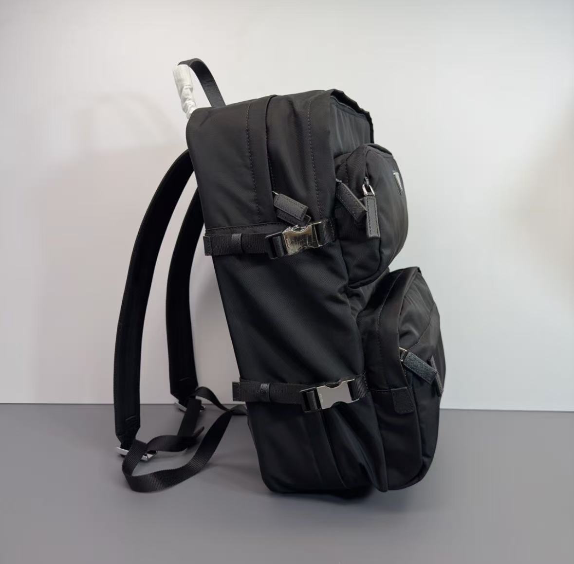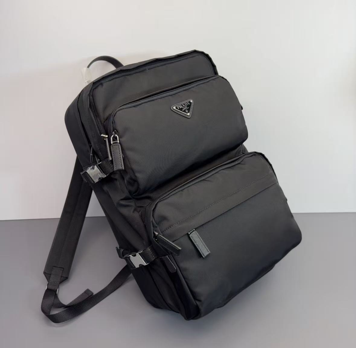 PRADA Re-NylonSaffiano enamel metal triangular logo zipper opening and closing schoolbag backpack backpack Black couple style for both men and women