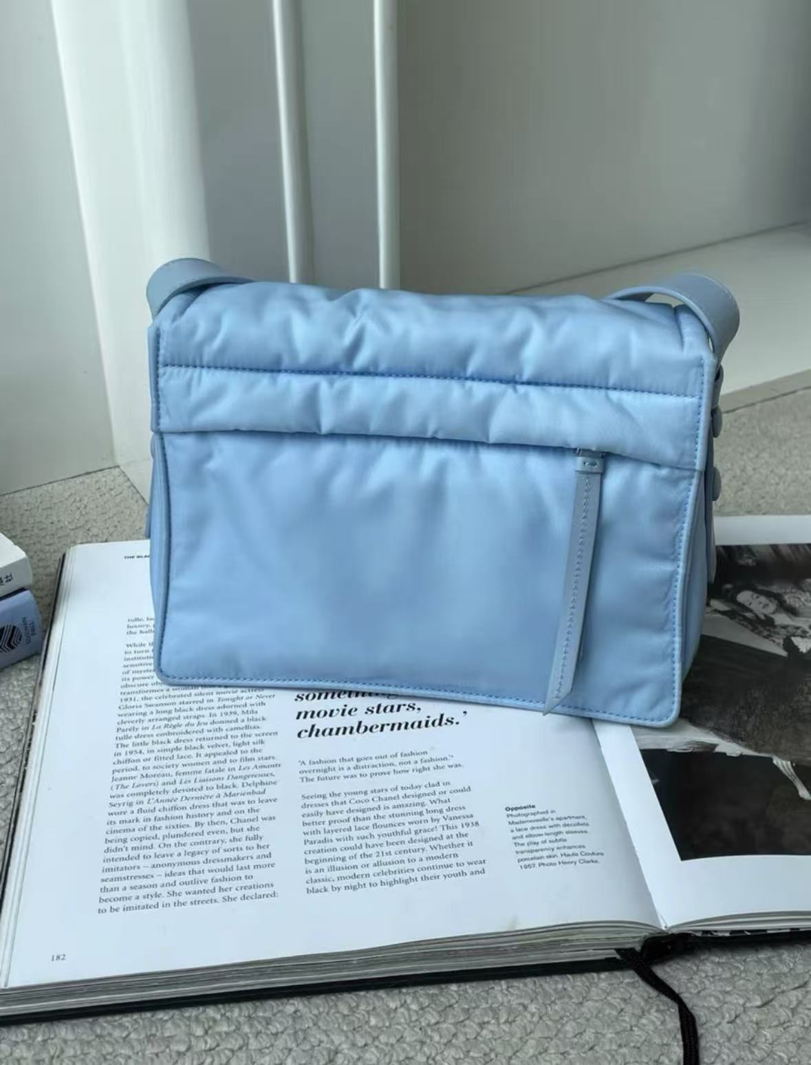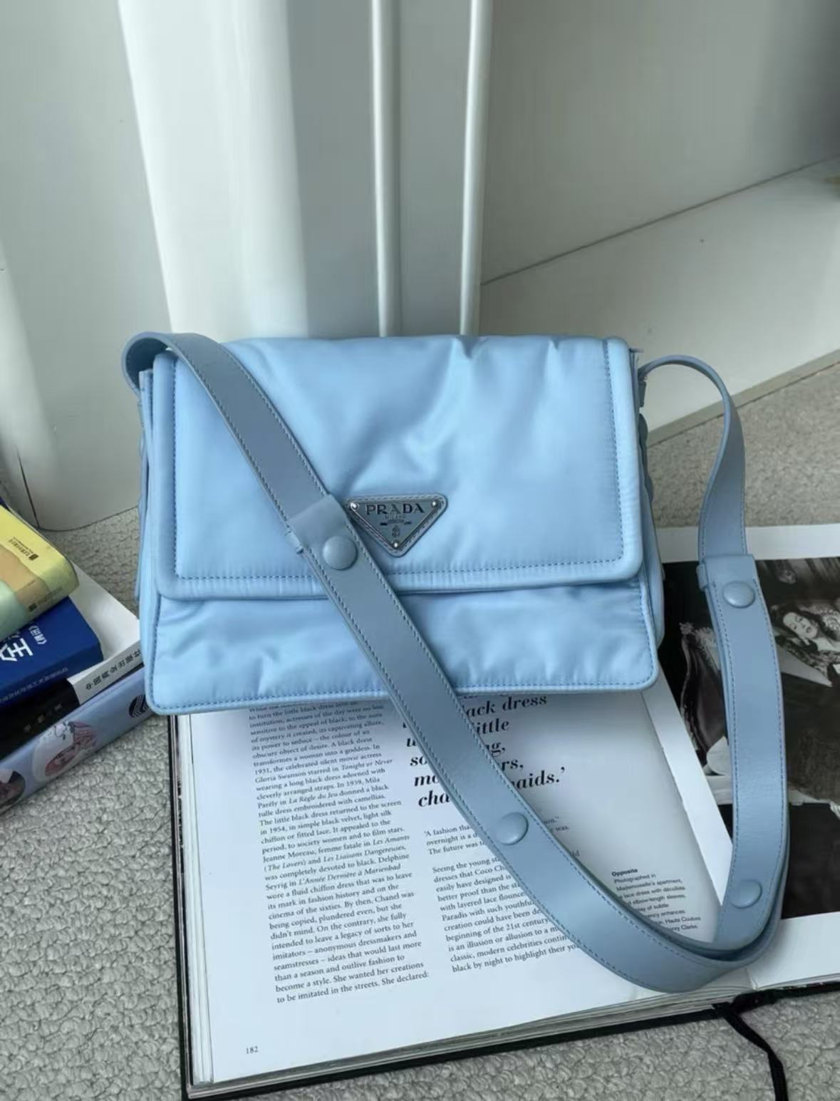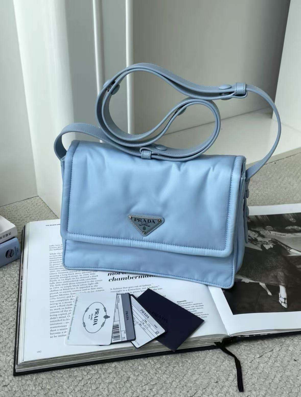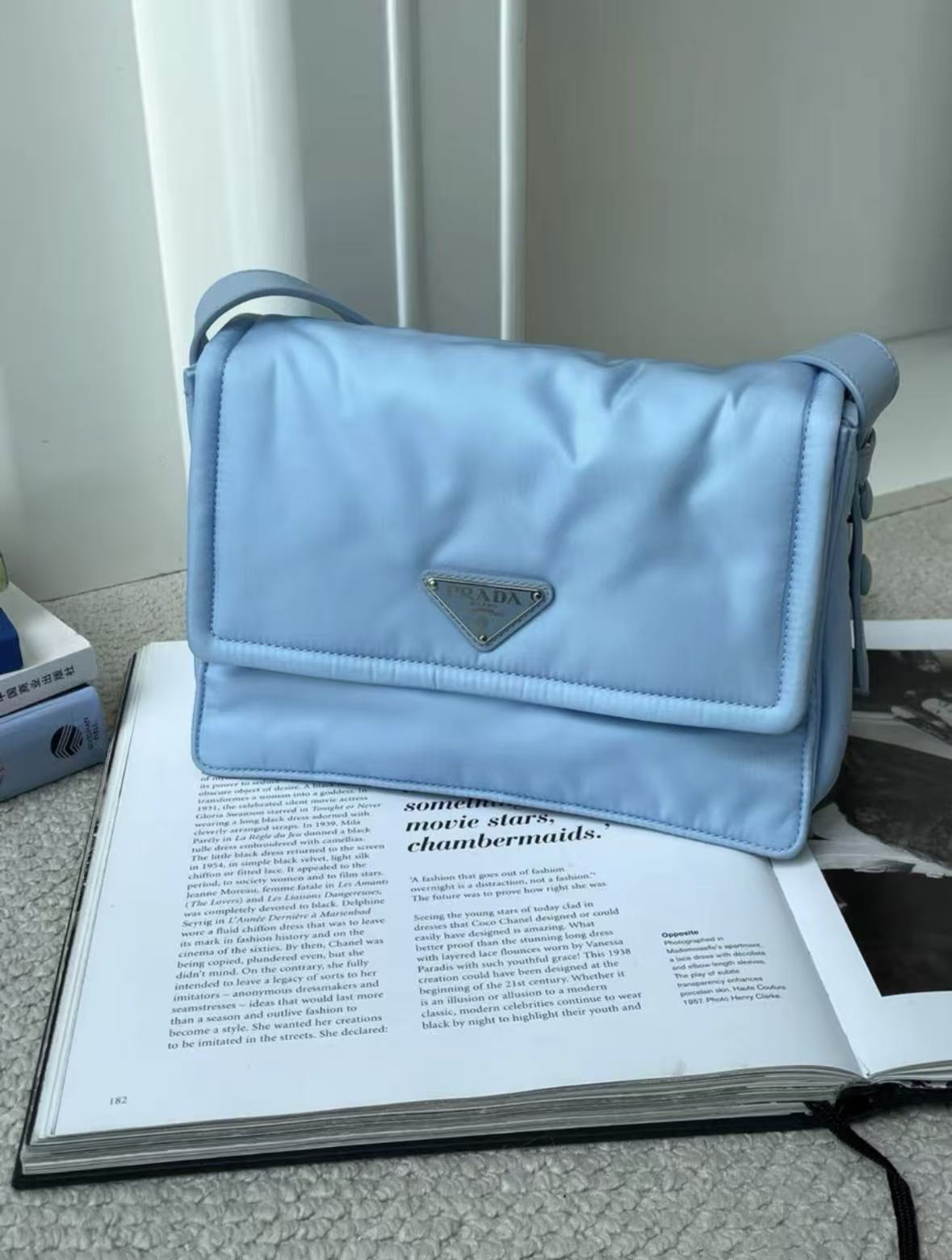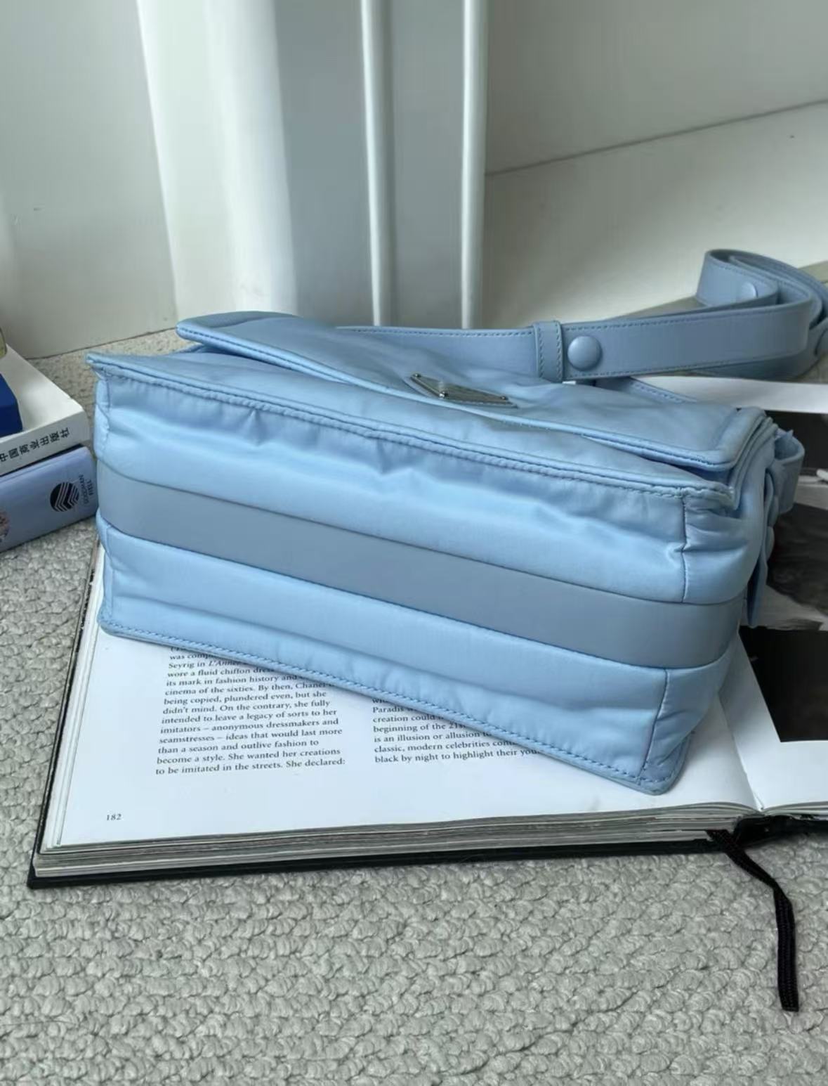 PRADA Re-Nylon brand letter logo messenger bag, single-shoulder bag, crossbody handbag, men\'s blue style
