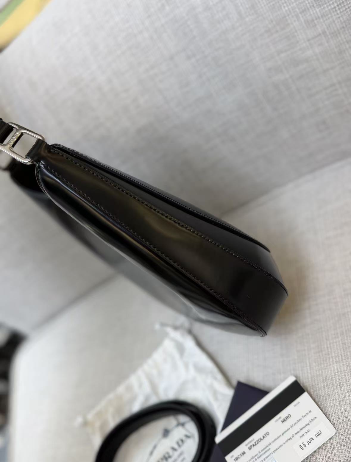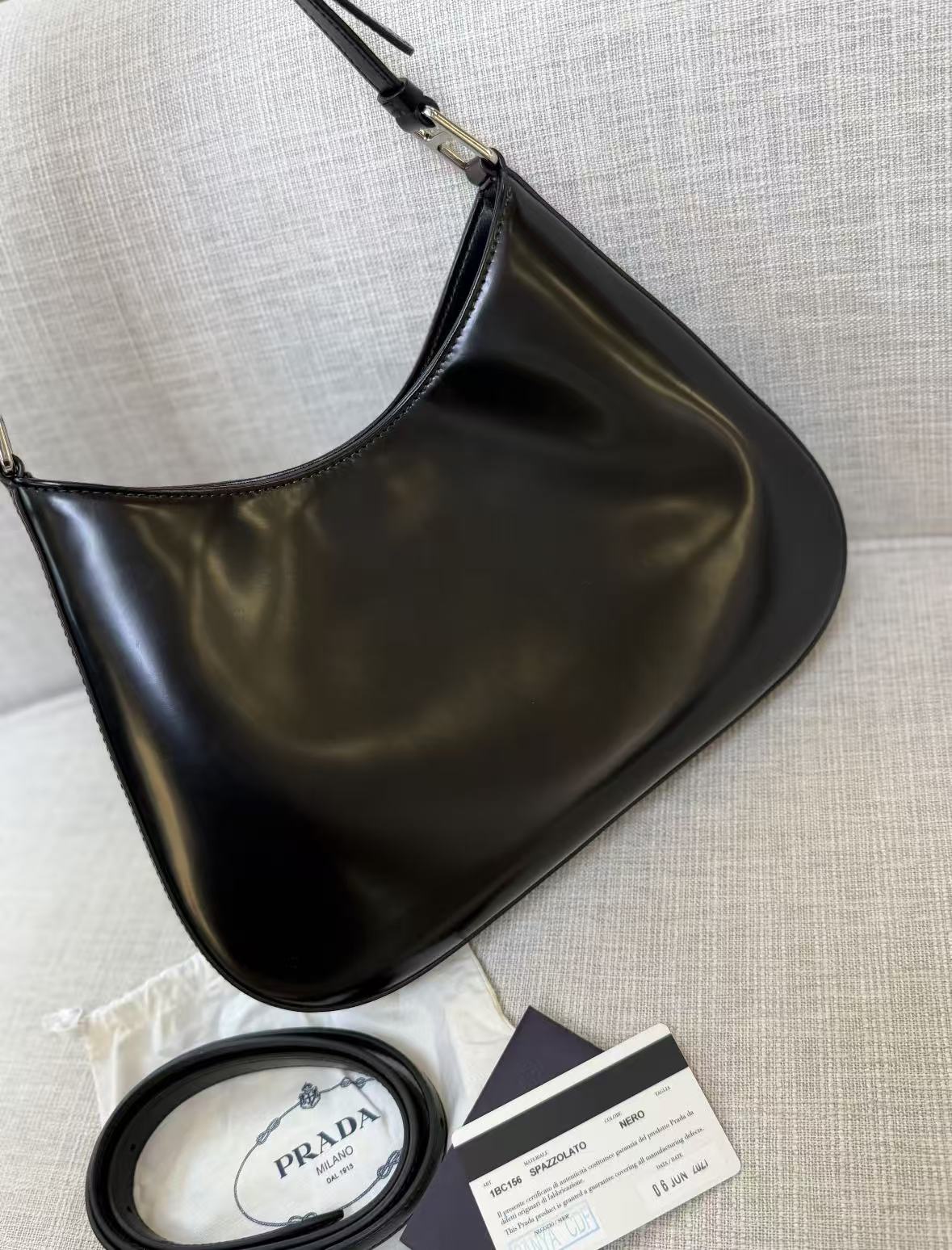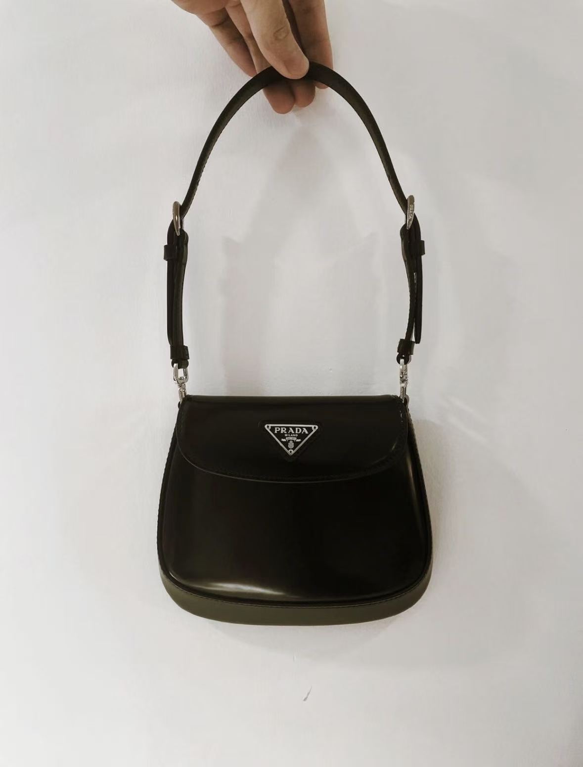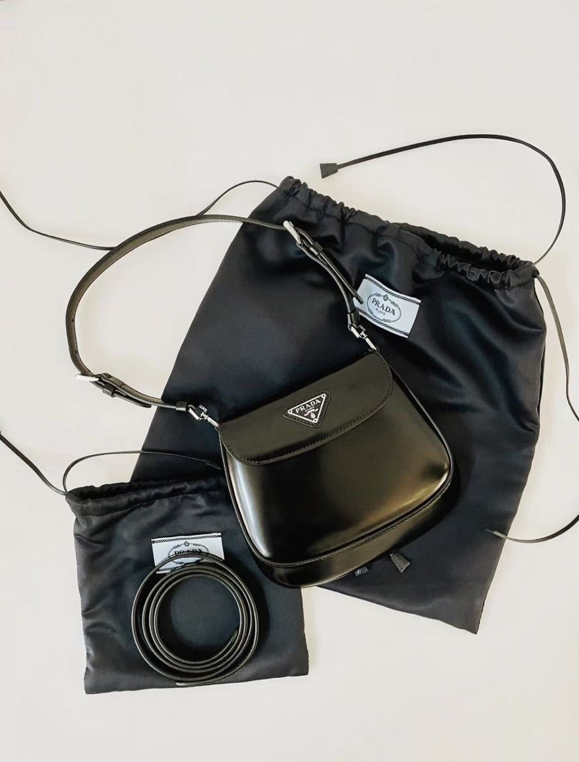 PRADA Cleo glossy magnetic clasp underarm bag, single-shoulder bag, mini women\'s black