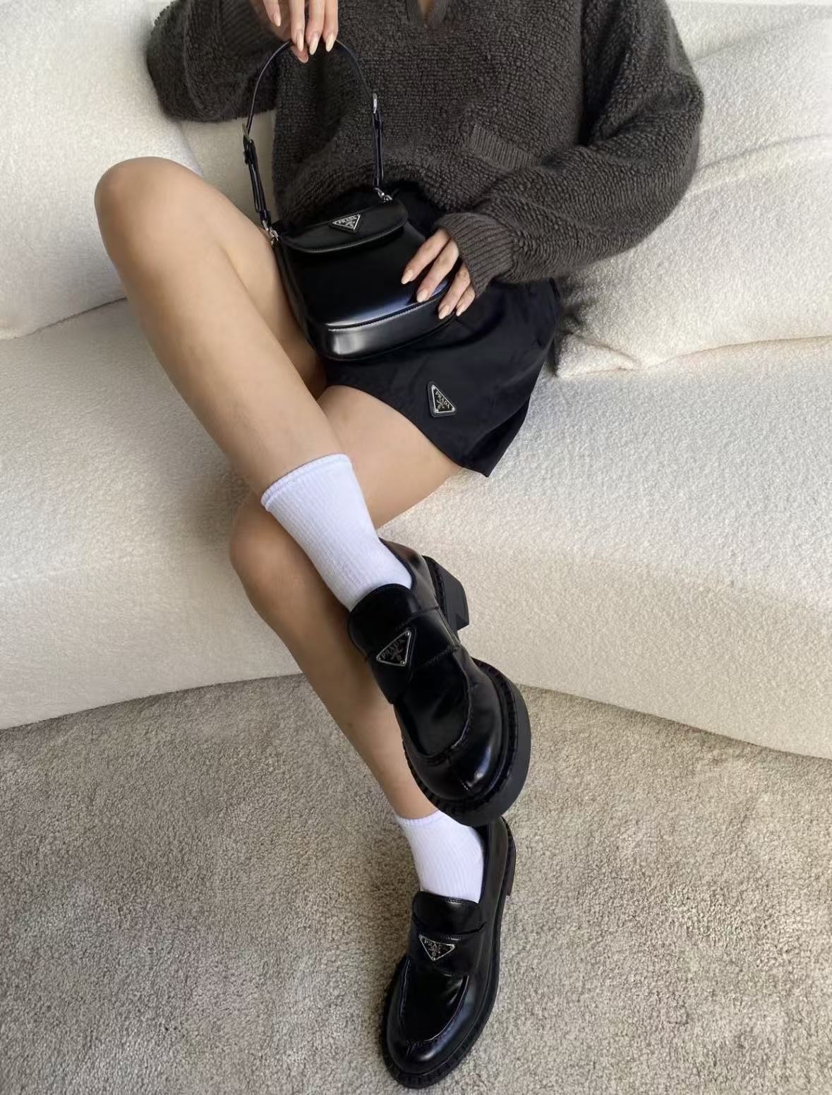 PRADA Explore enamel metal triangular logo zipper open shoulder bag for women, large size